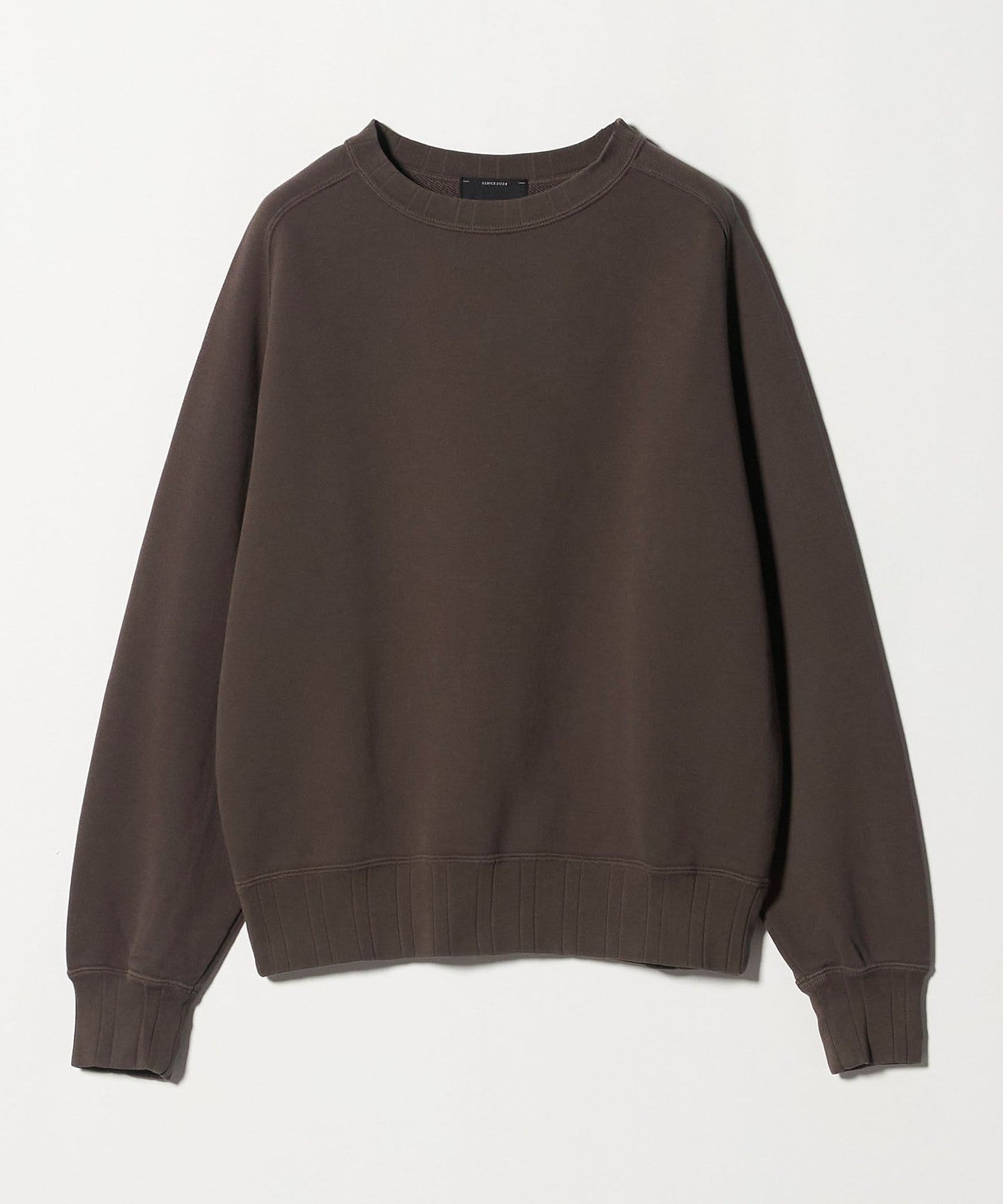 A crew neck sweatshirt featuring ribbed hem and cuffs.