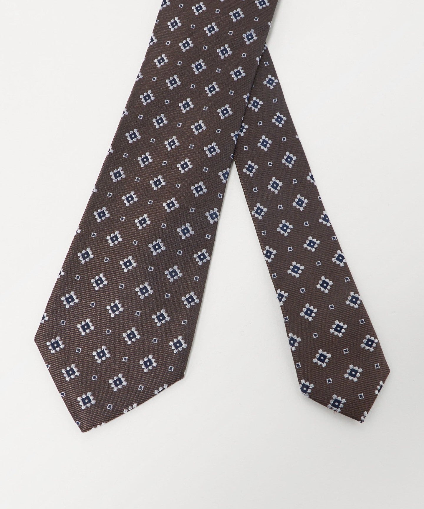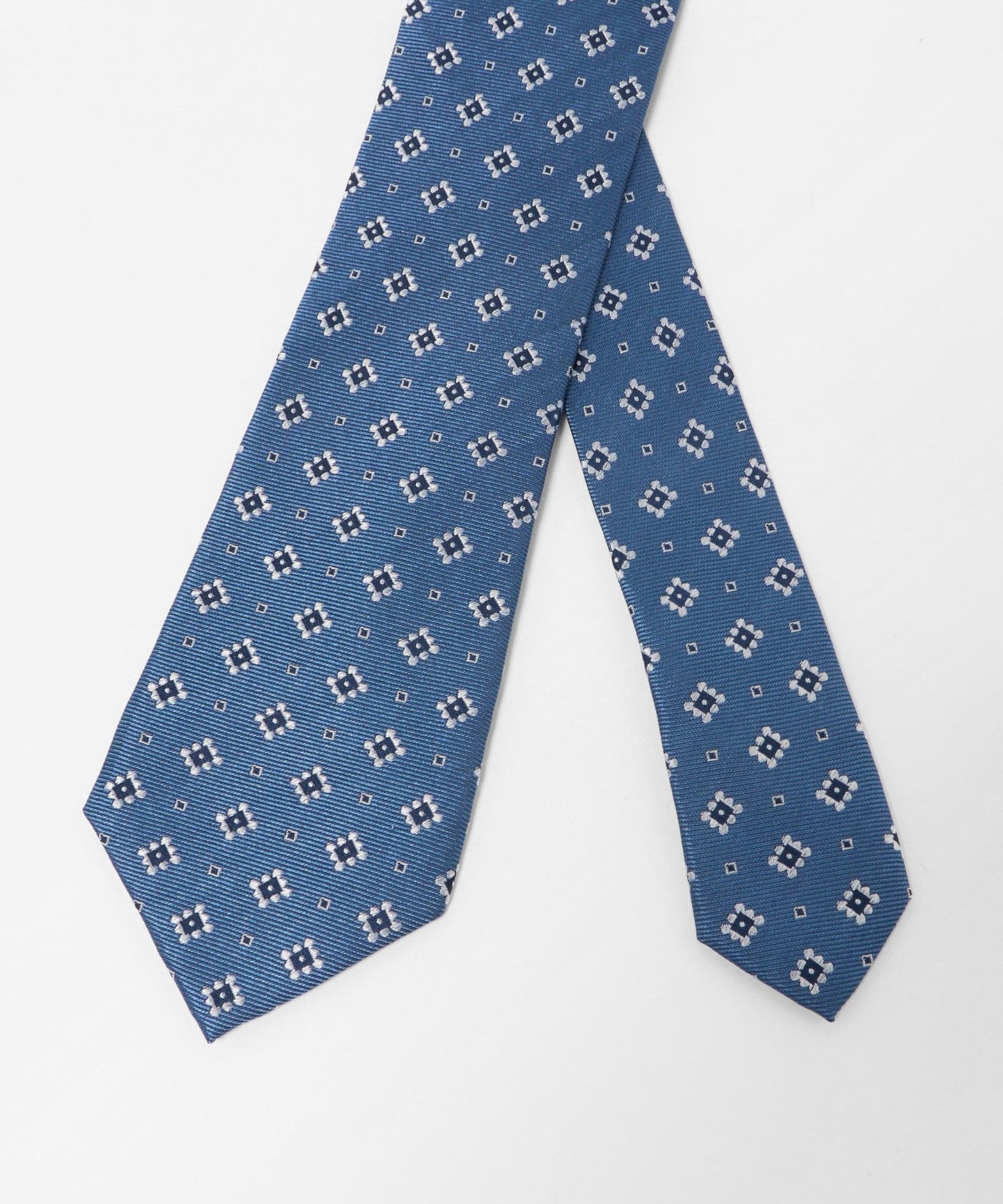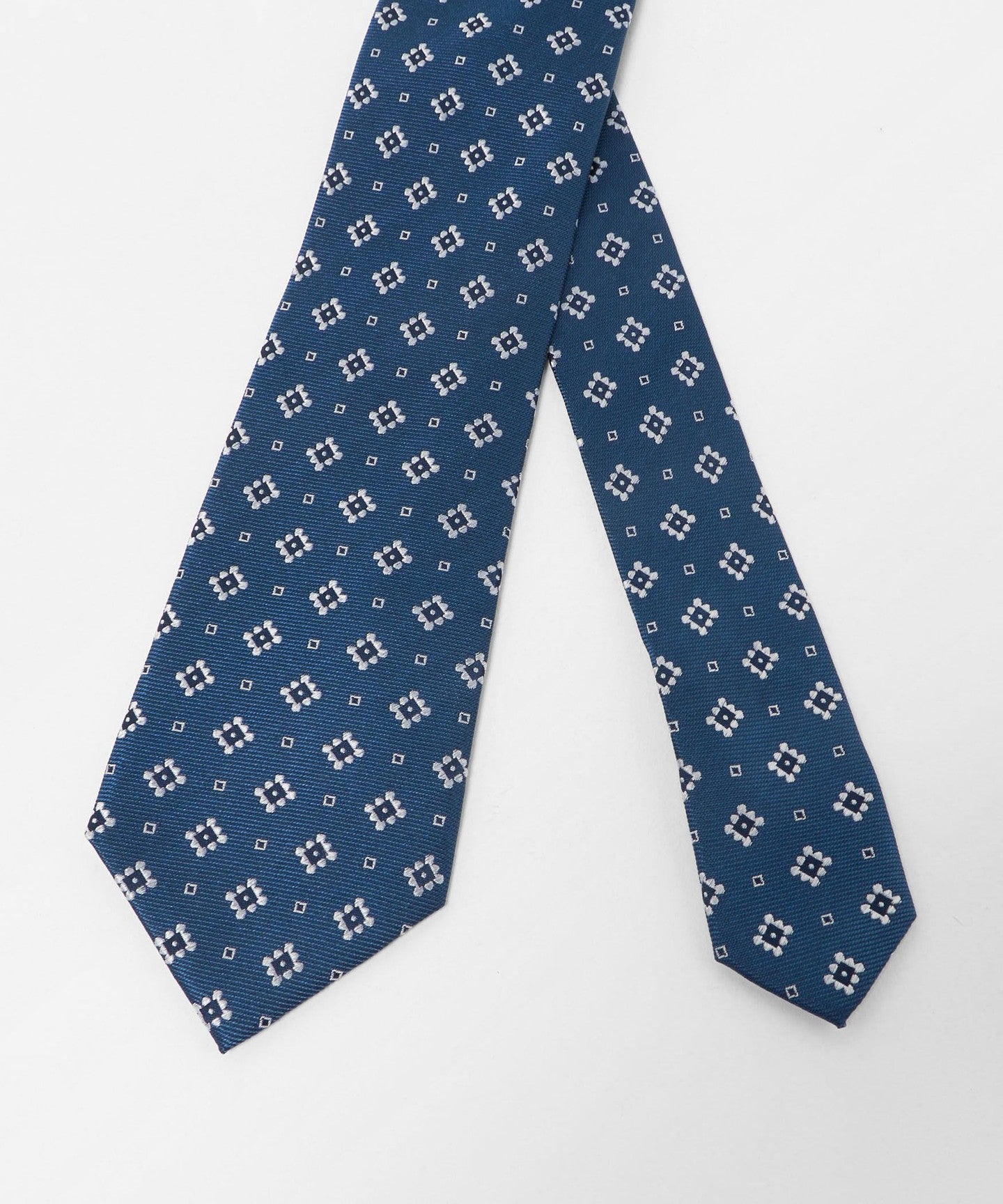 幅広いシーンで活躍する、幾何学的なデザインの小紋柄のネクタイ。