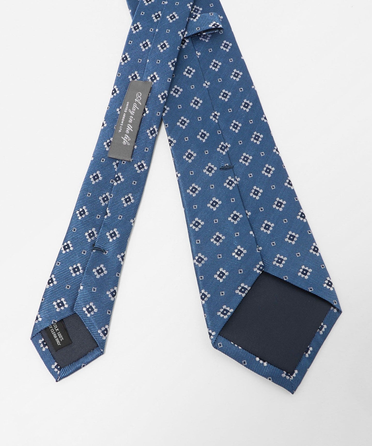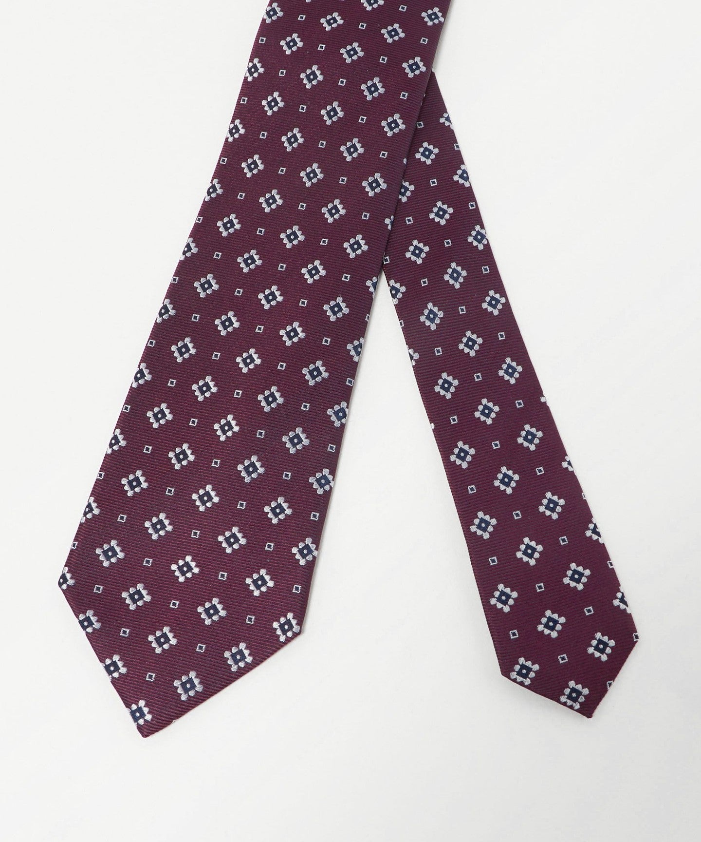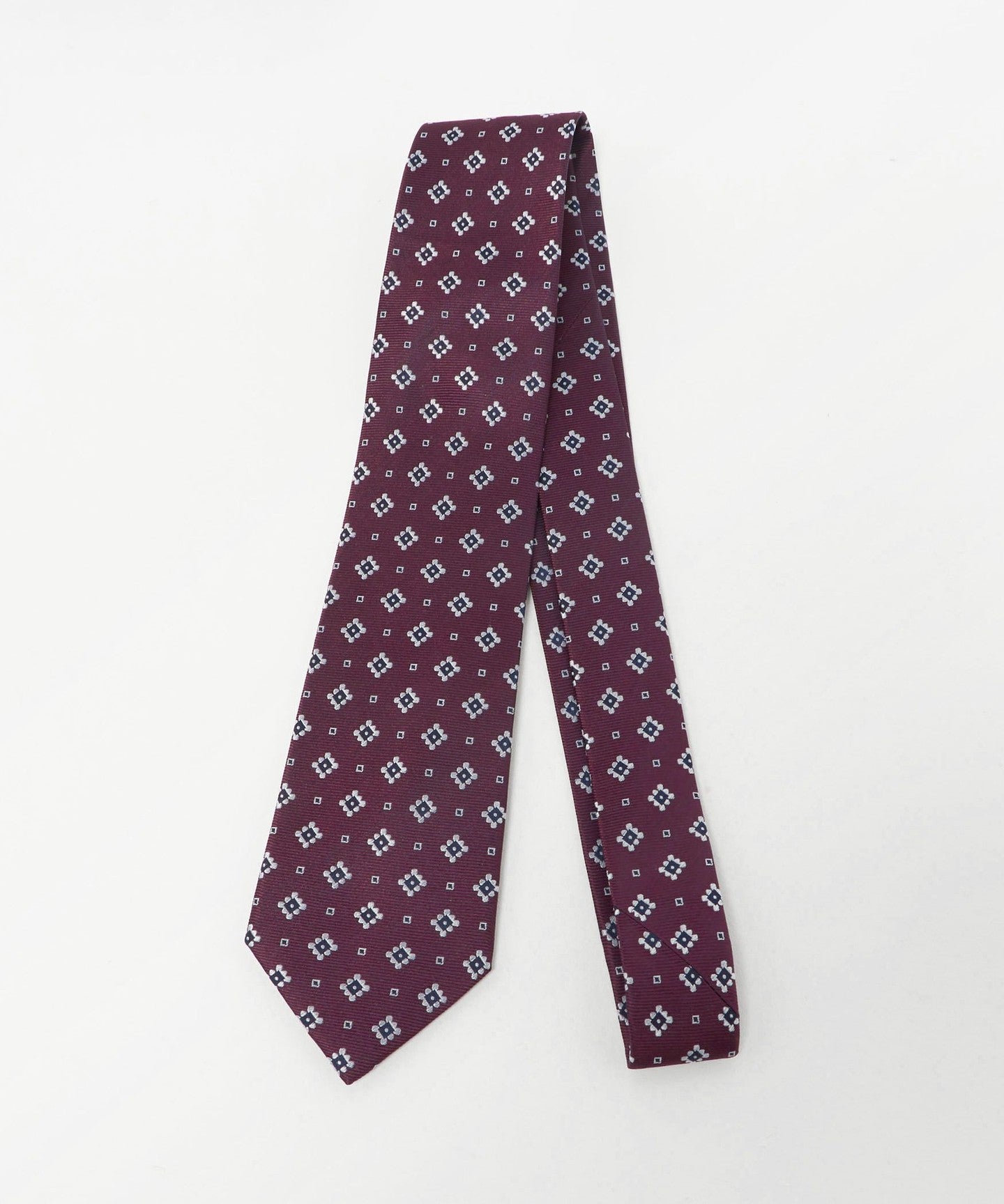幅広いシーンで活躍する、幾何学的なデザインの小紋柄のネクタイ。
