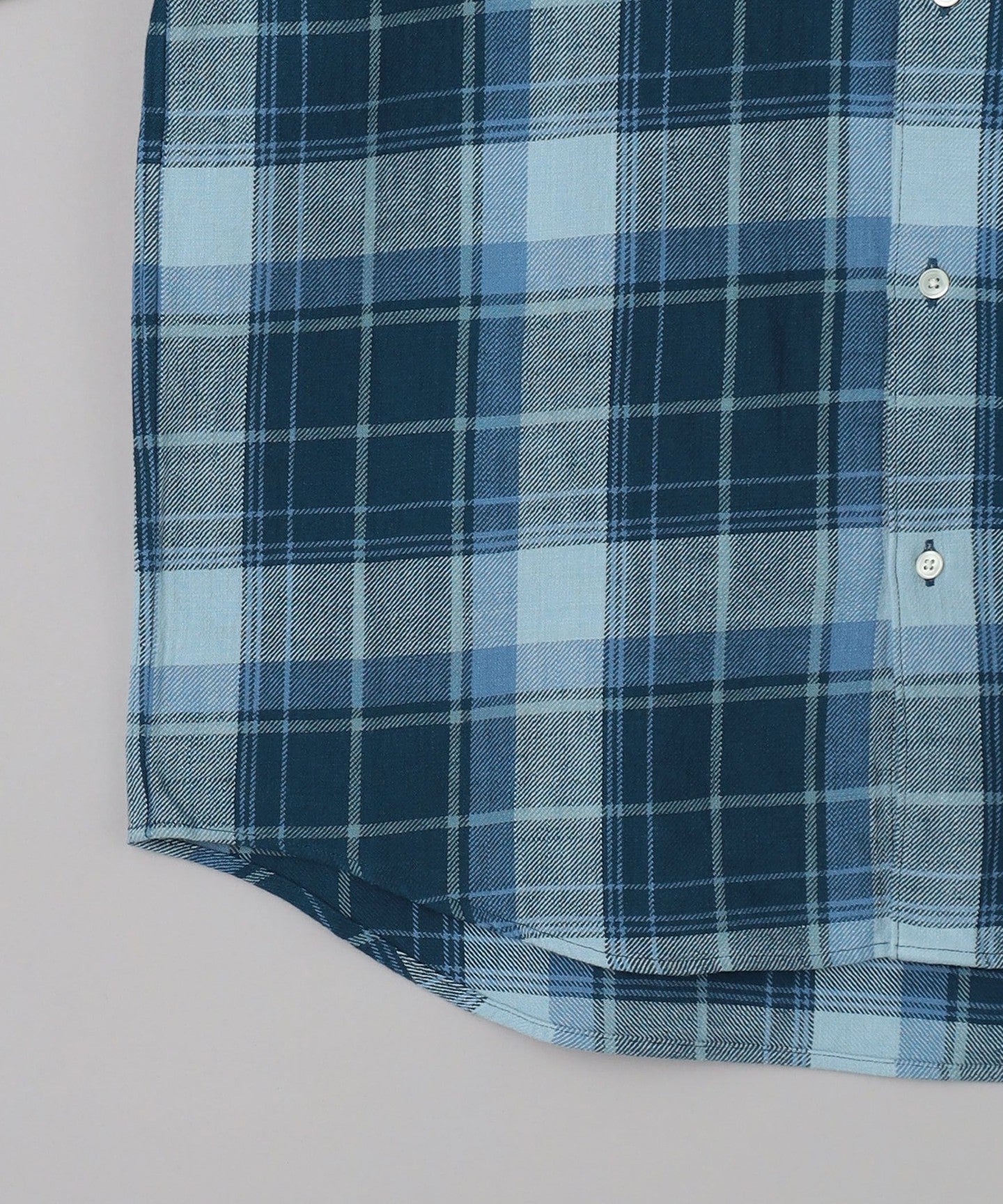 A striking shirt with a vibrant cobalt check pattern.
