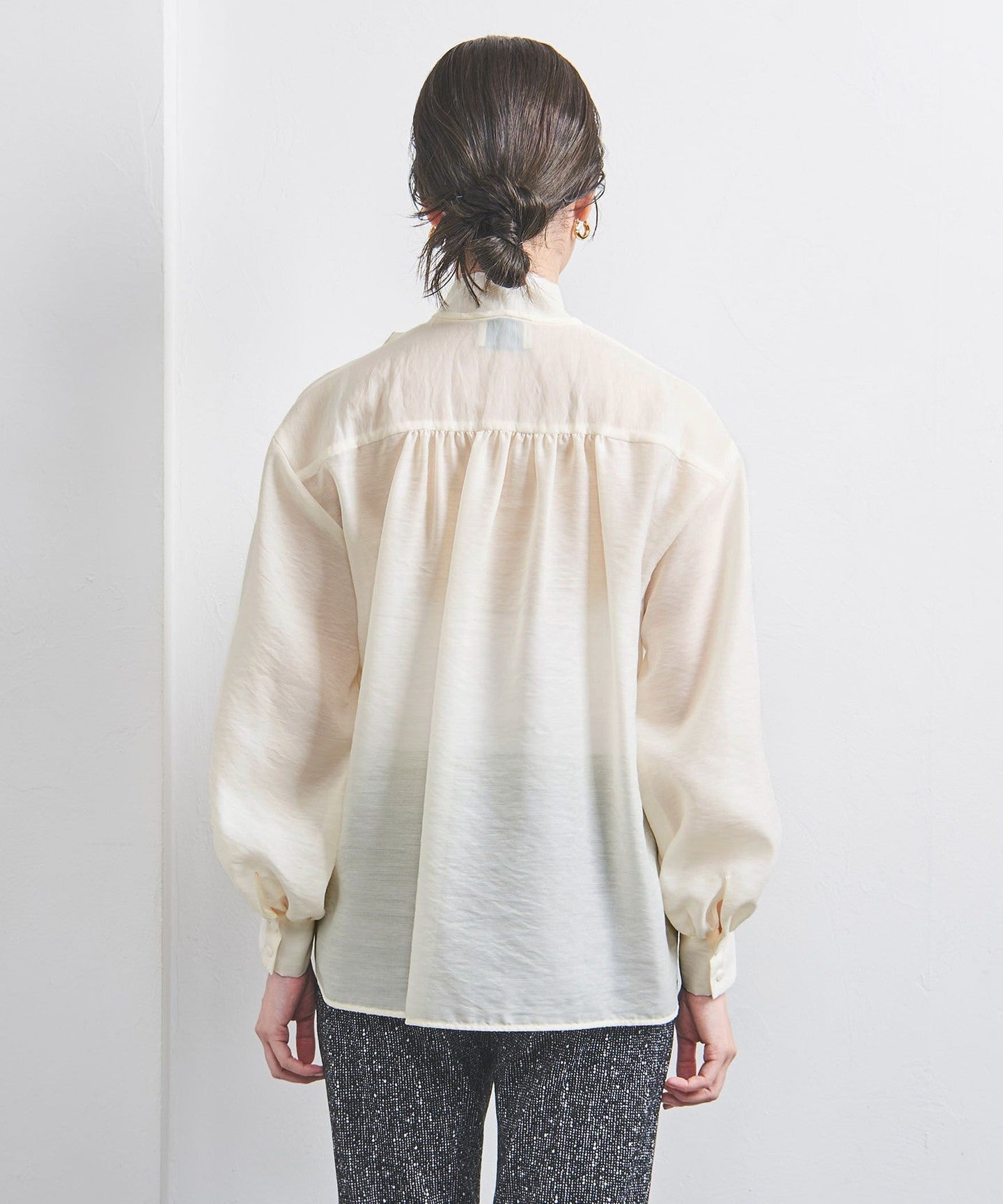 Spun weft yarnPolyester Made from satin organza, it has a casual feel, yet is also characterized by its supple and elegant transparency.