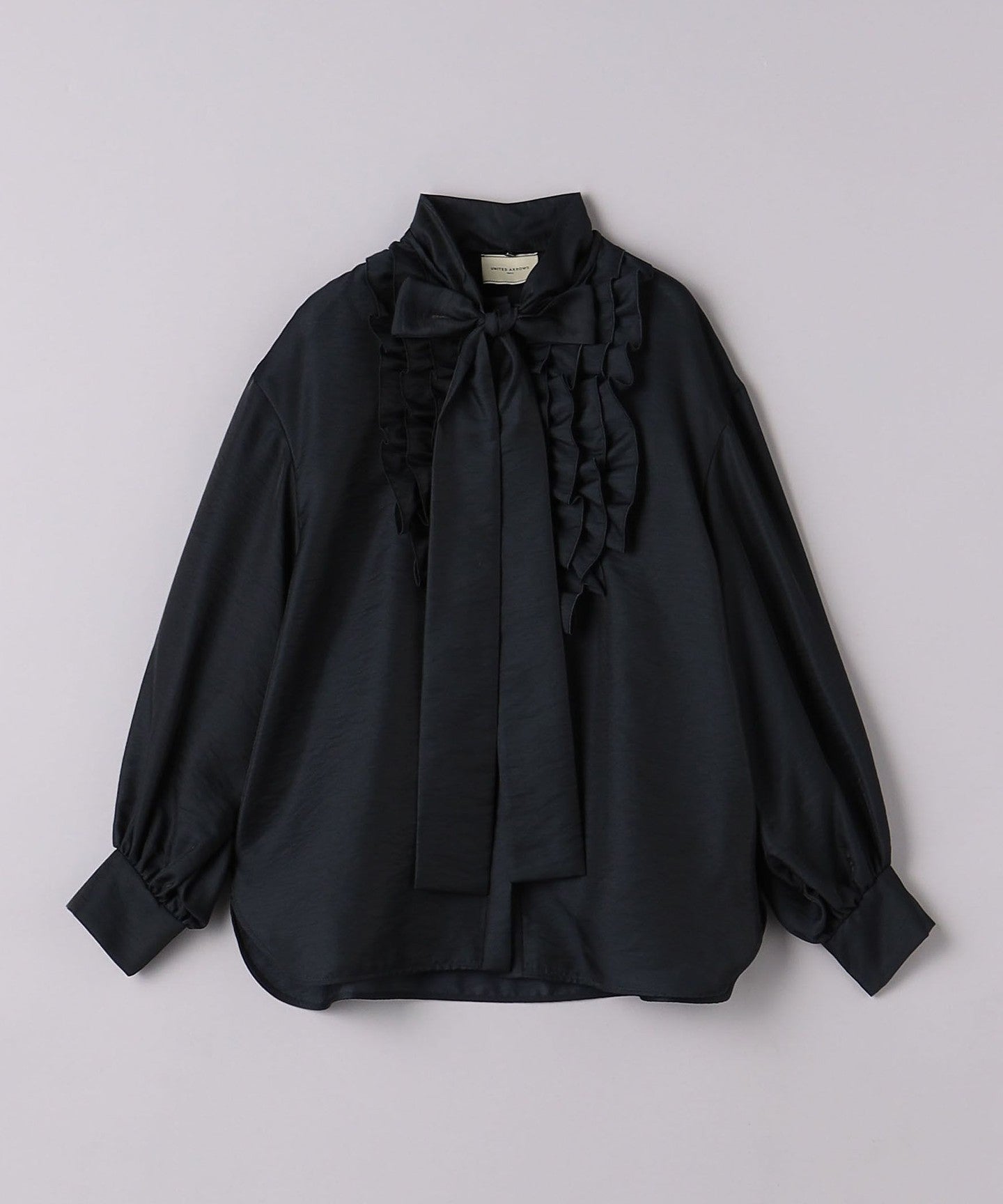 Detachable voluminous bowTIE When removed, it gives a clean, no-collar finish.