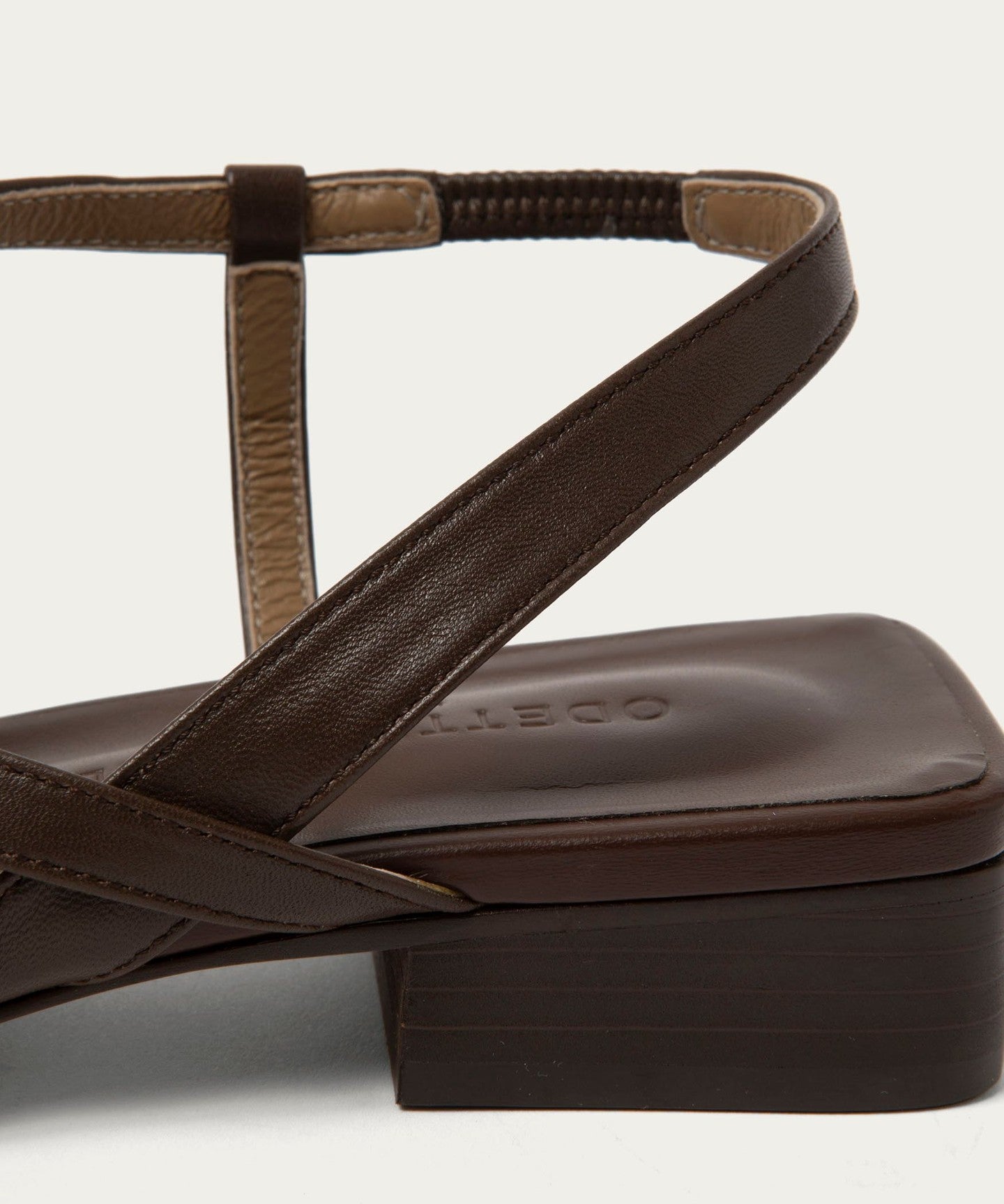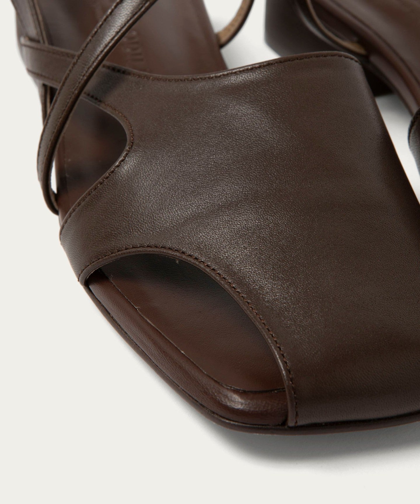 The thin back strap that crosses over the instep and the 2.5cm block heel make a statement.