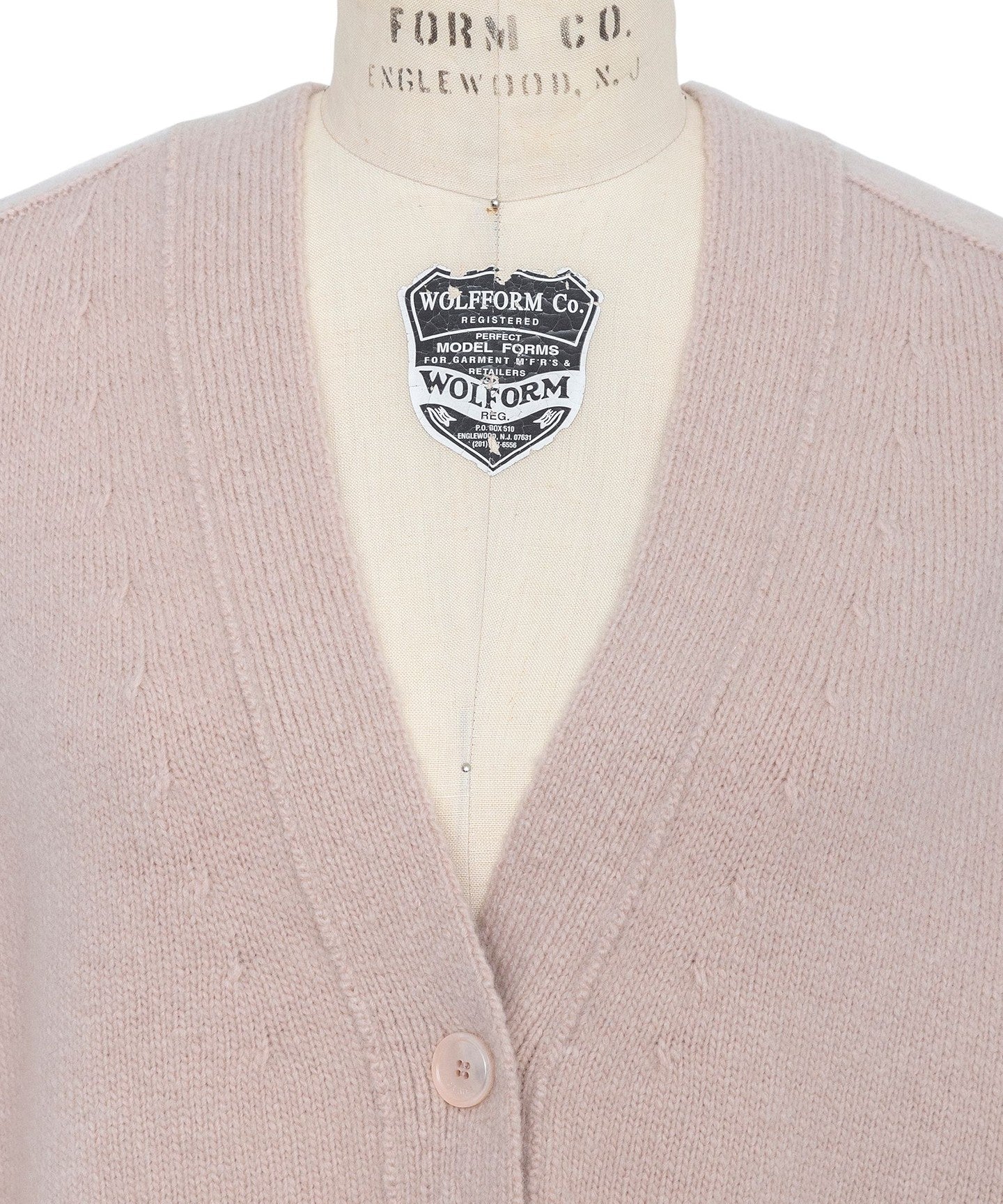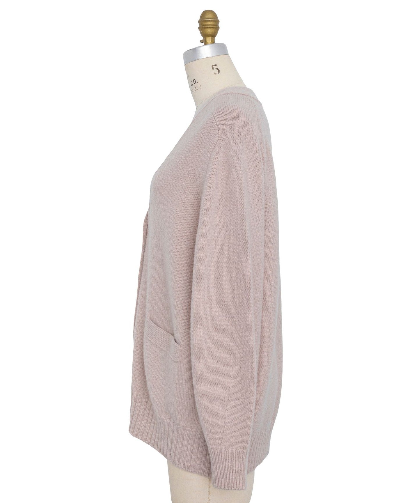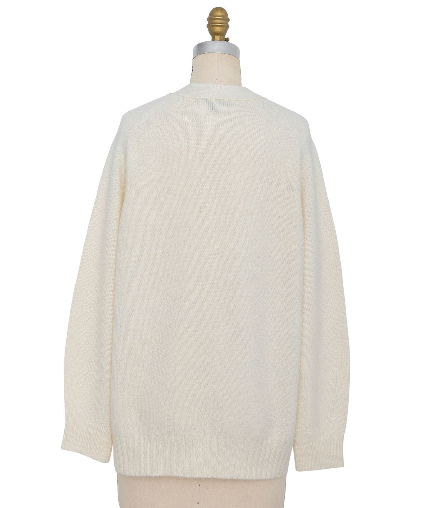 It features a soft texture created by boucle-processing cashmere-blend yarn.