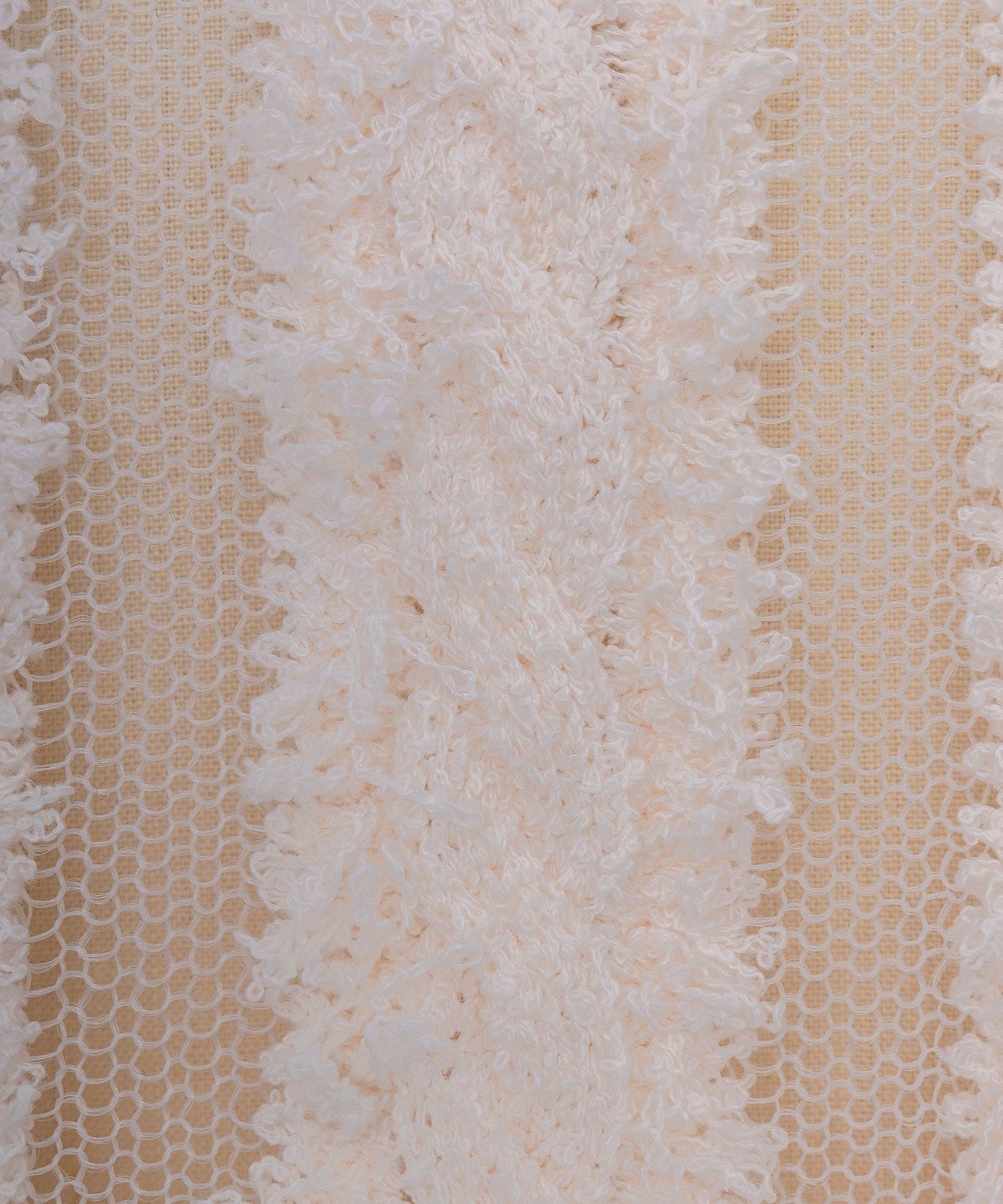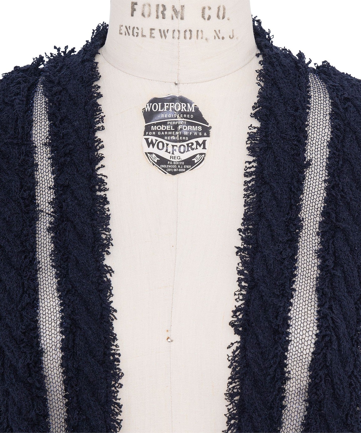 The fringe-like knit fabric has a tweed-like appearance, making it light and comfortable to wear yet luxurious.