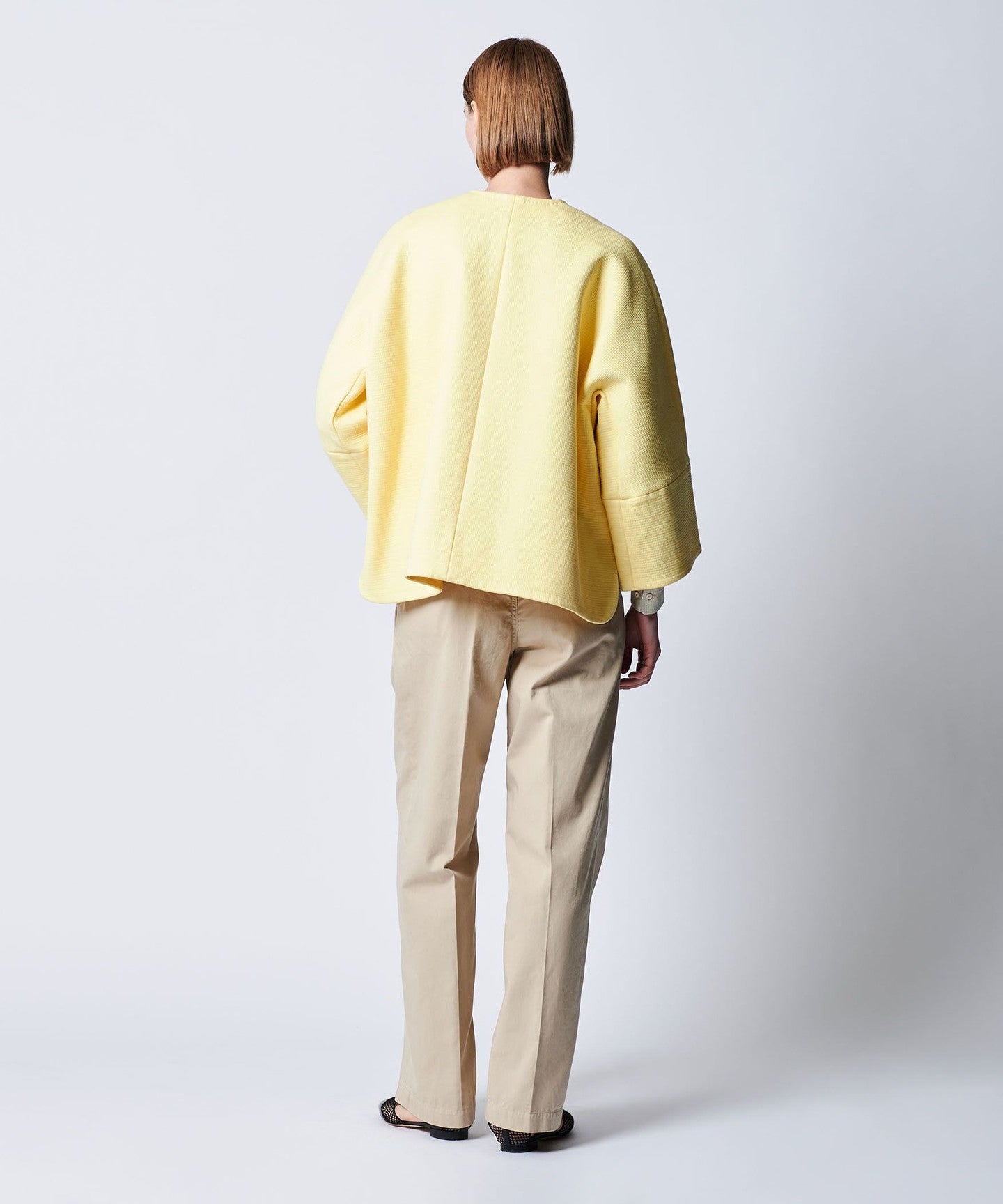 The pale yellow color, which makes use of the soft volume of the fabric, adds a casual feel.