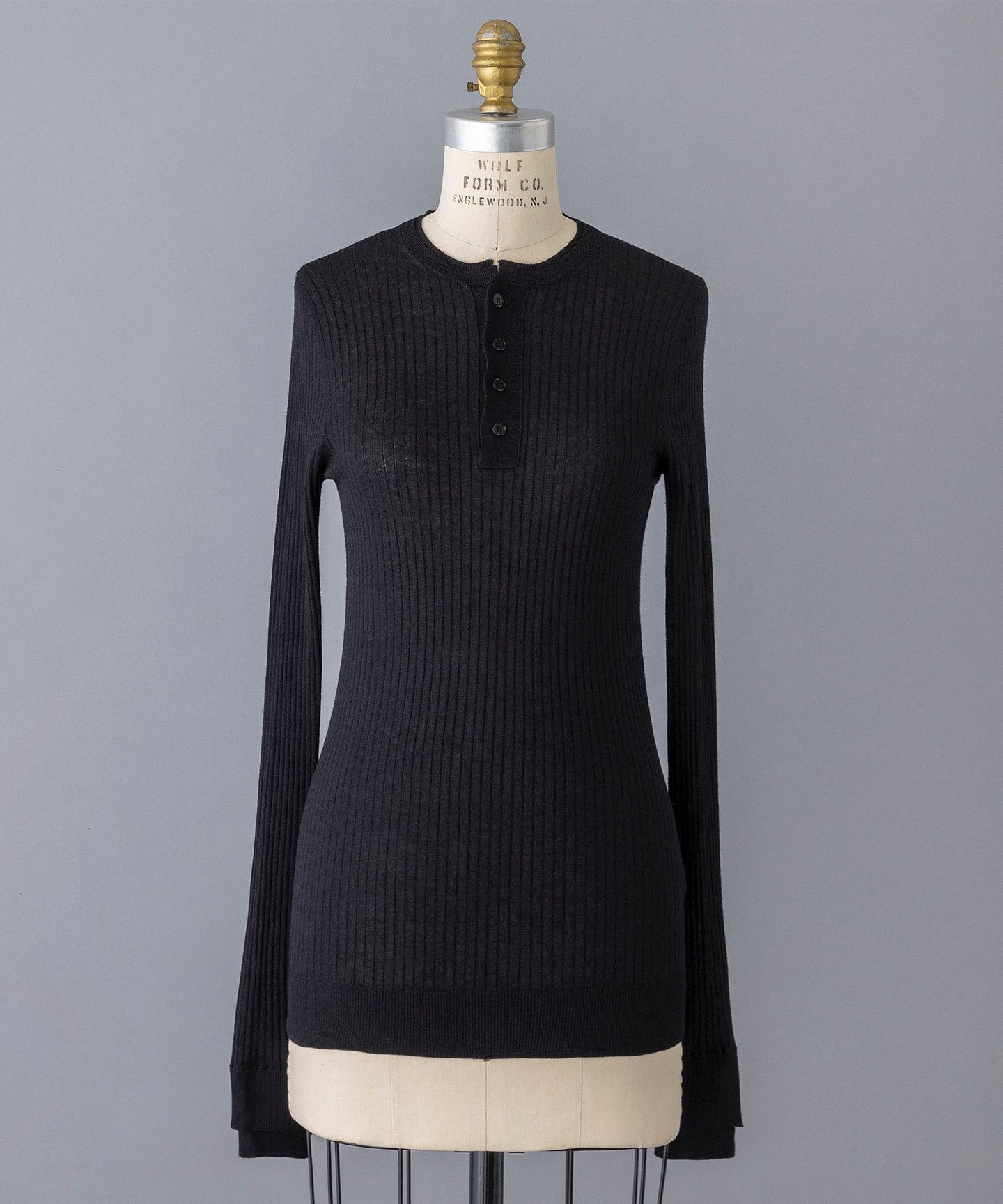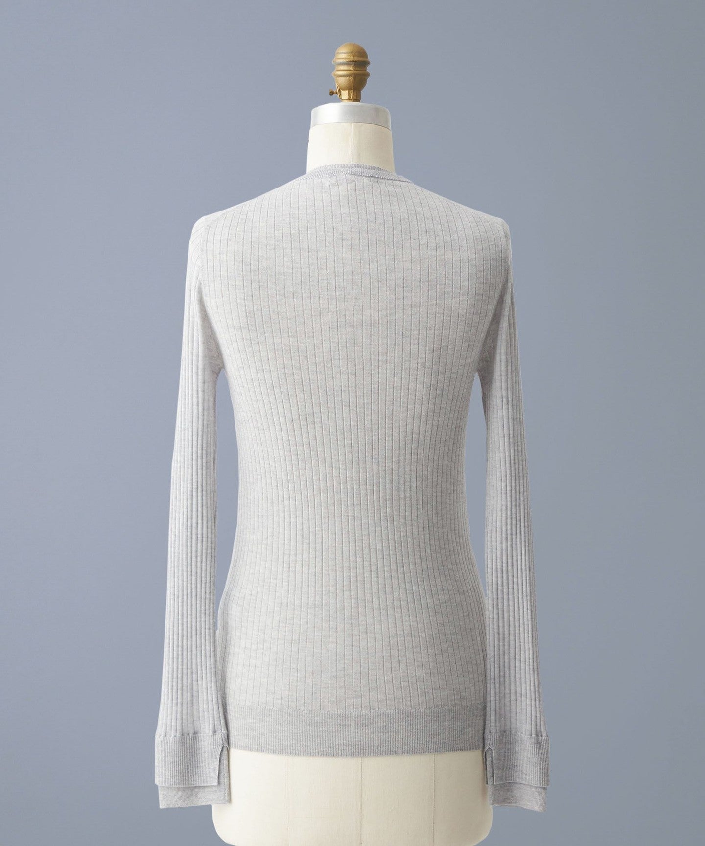 A ribbed knit made from cashmere silk material that feels comfortable against the skin.