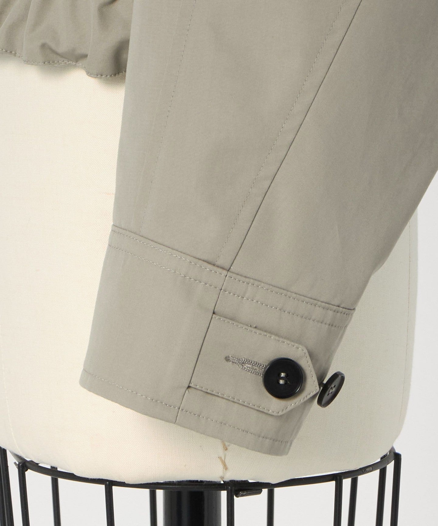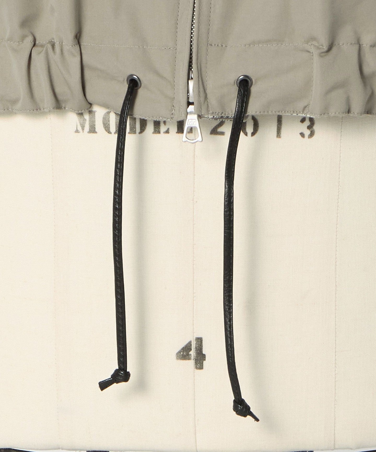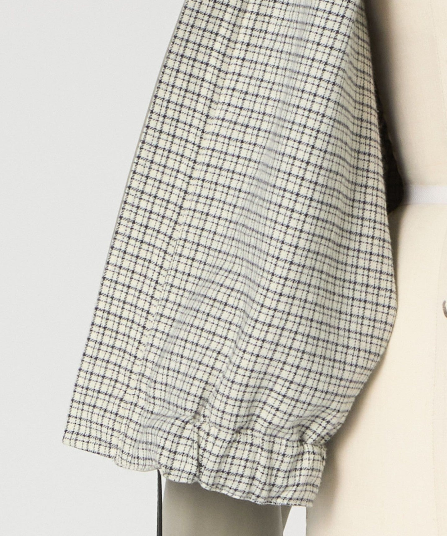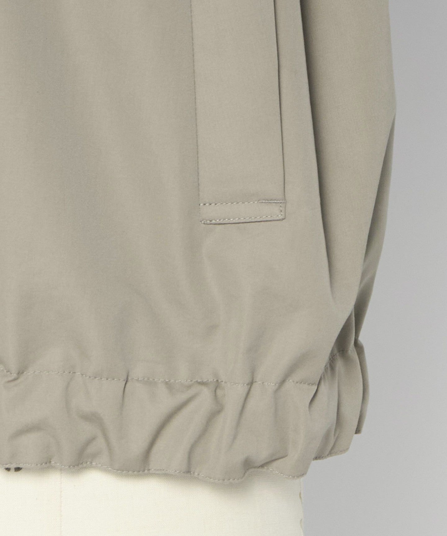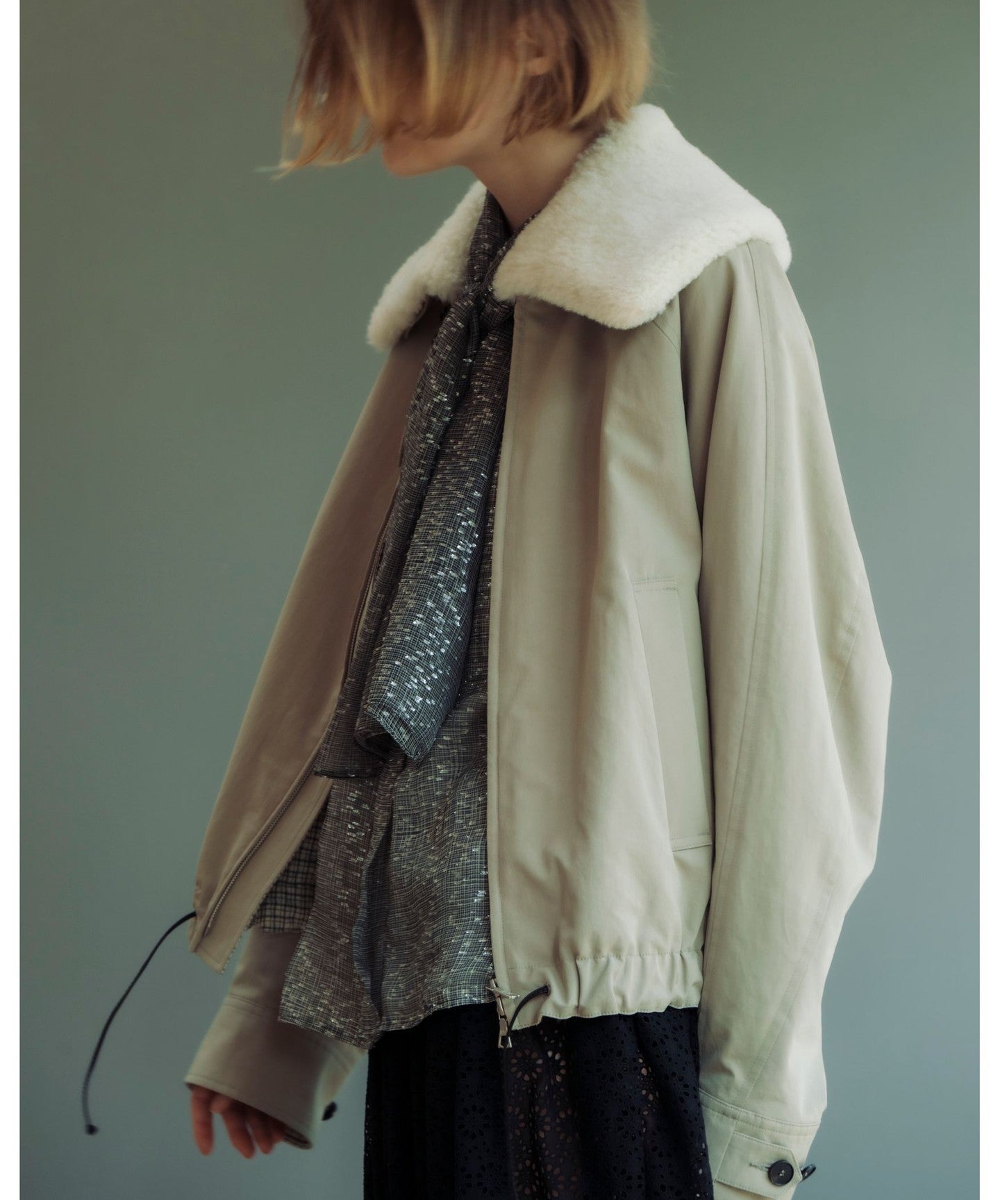 This zip-up blouson is made of natural-colored cotton silk, adding a touch of elegance.