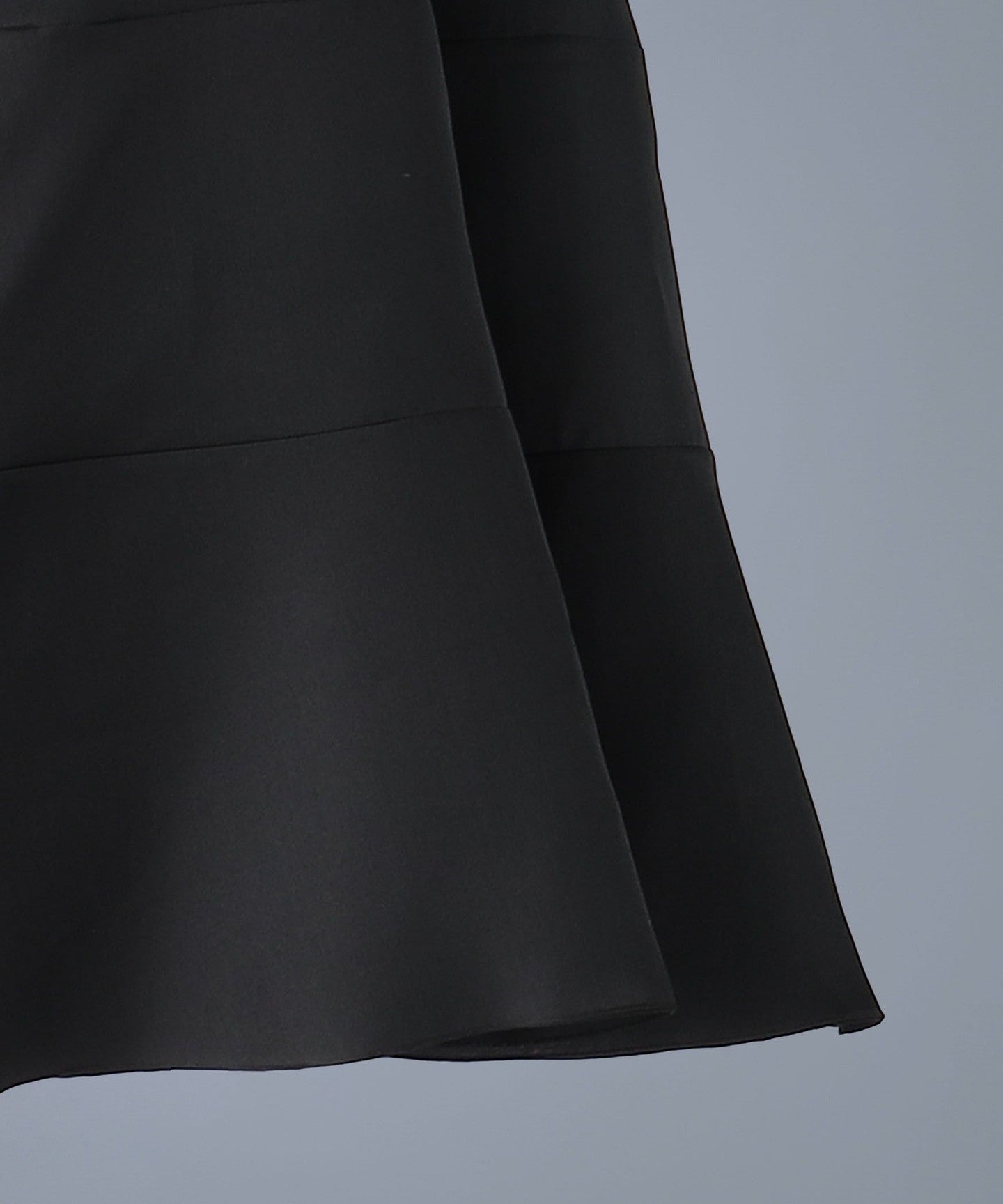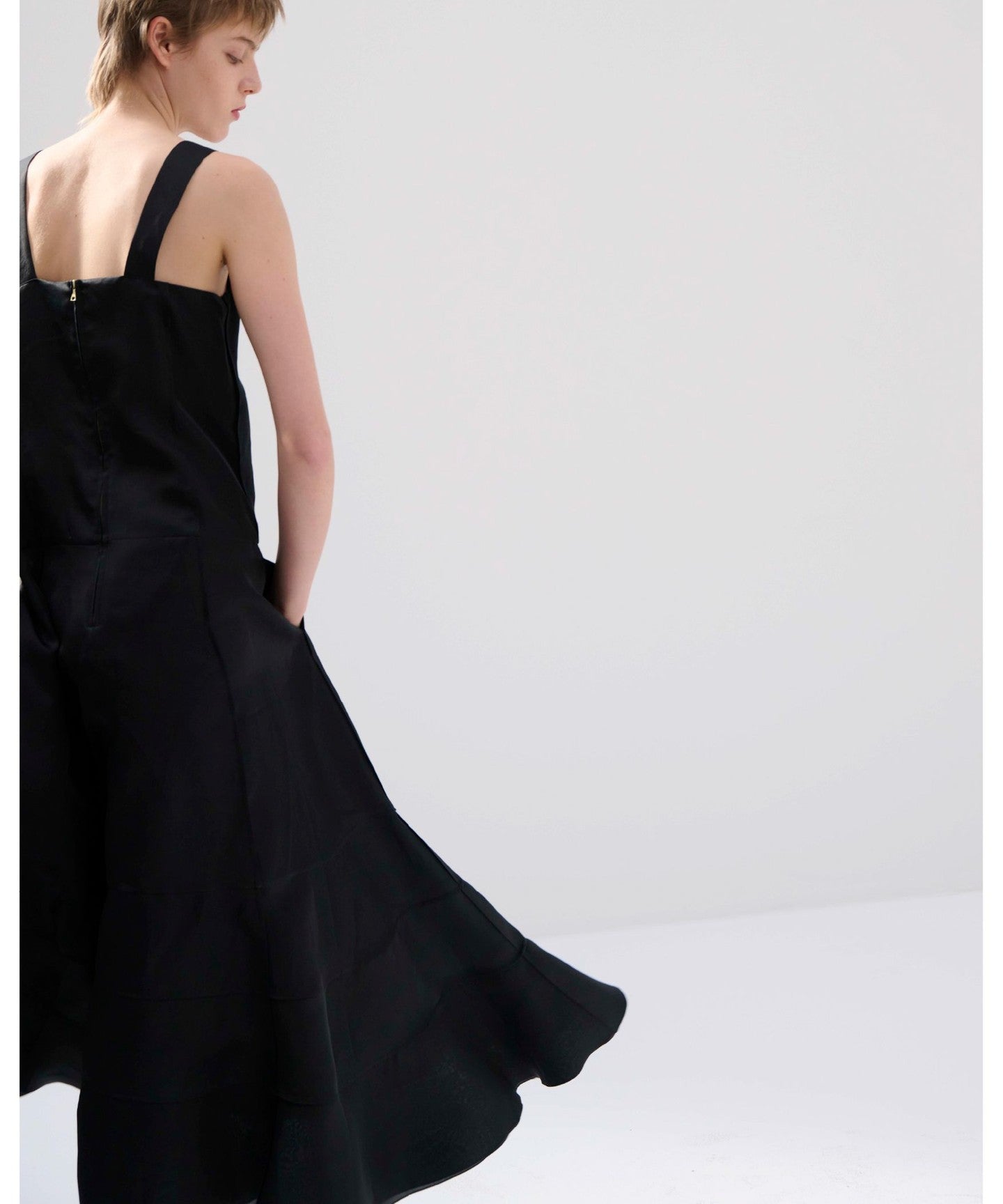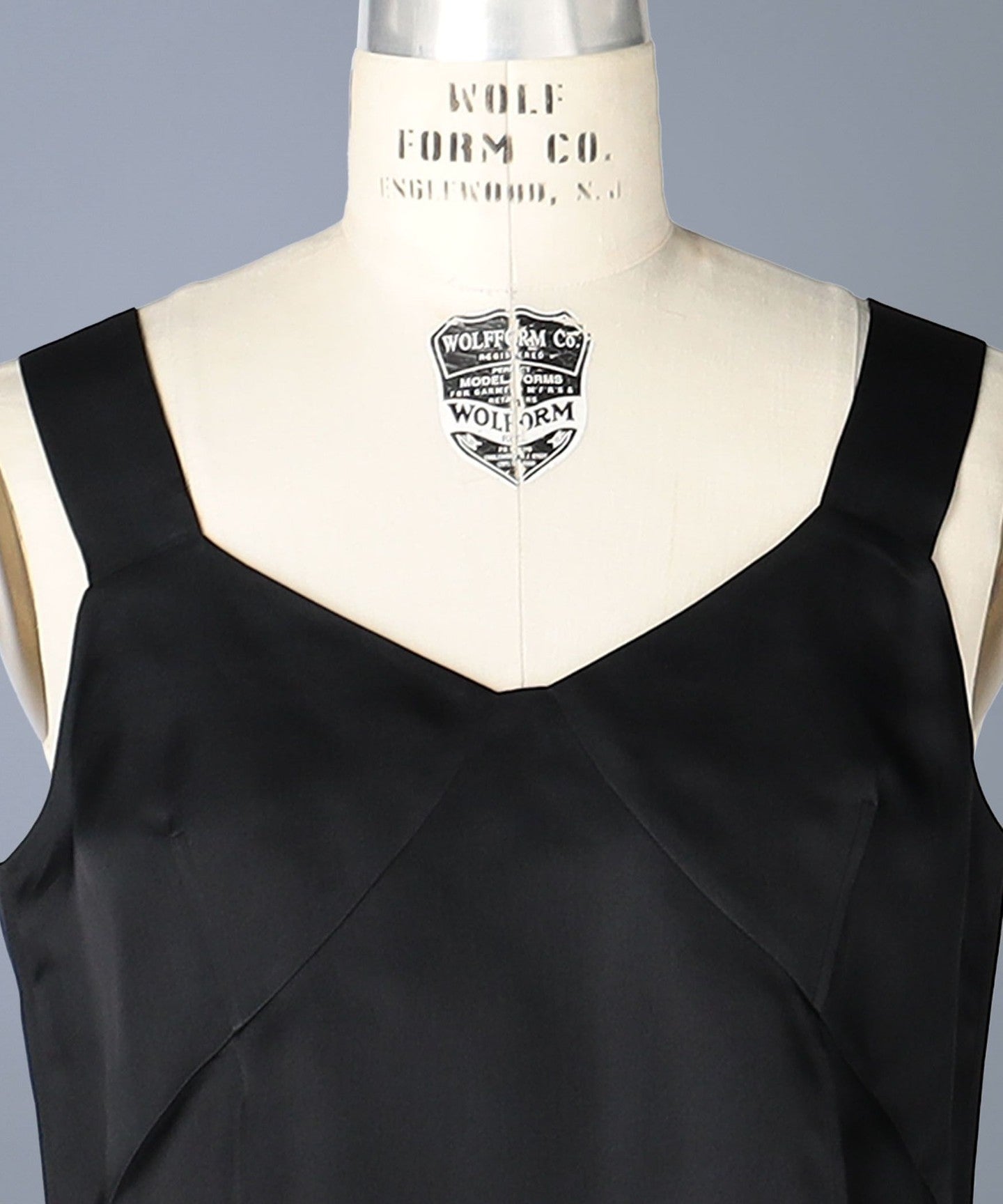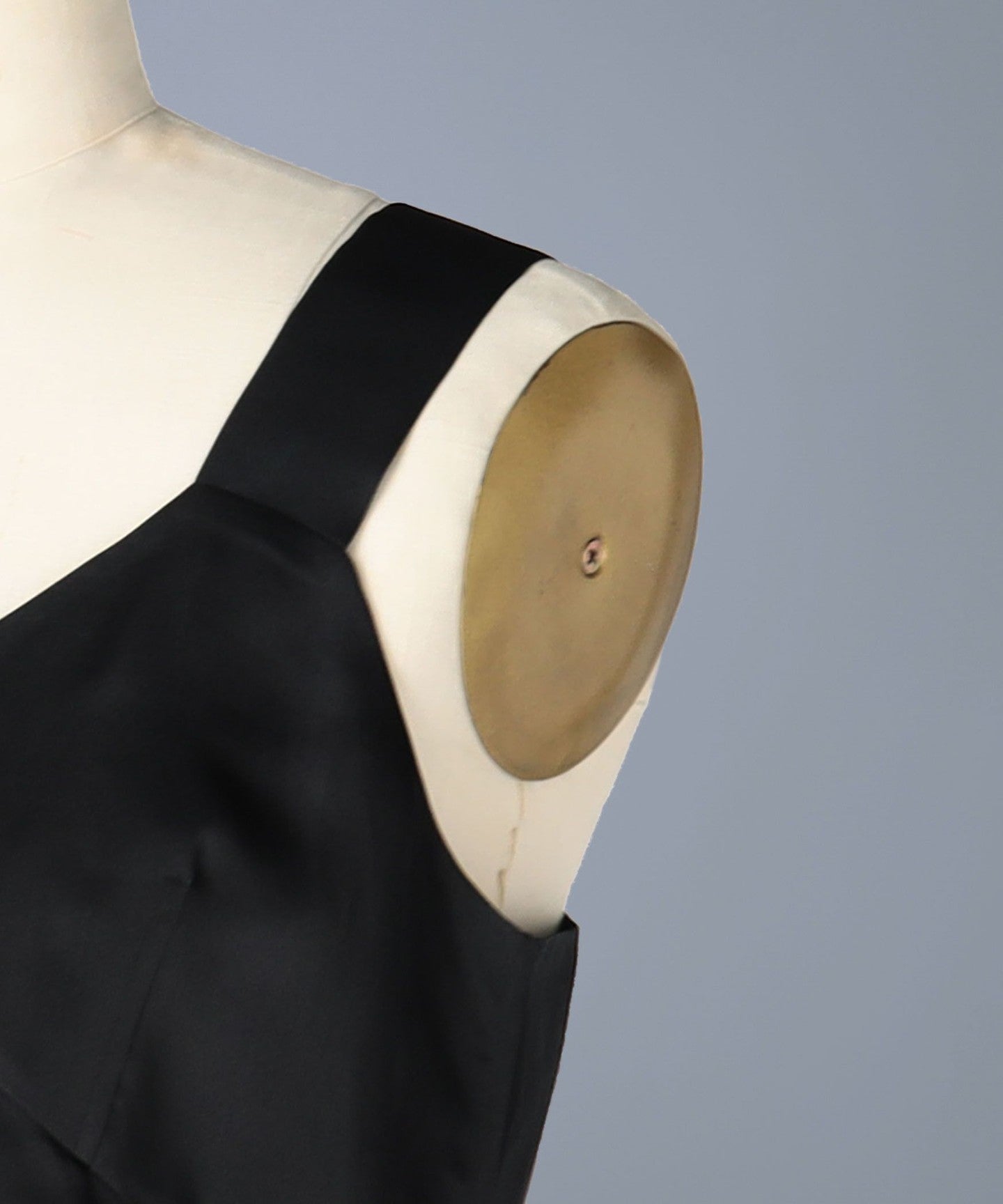 A strap-design dress with a glossy black color that adds a touch of presence.