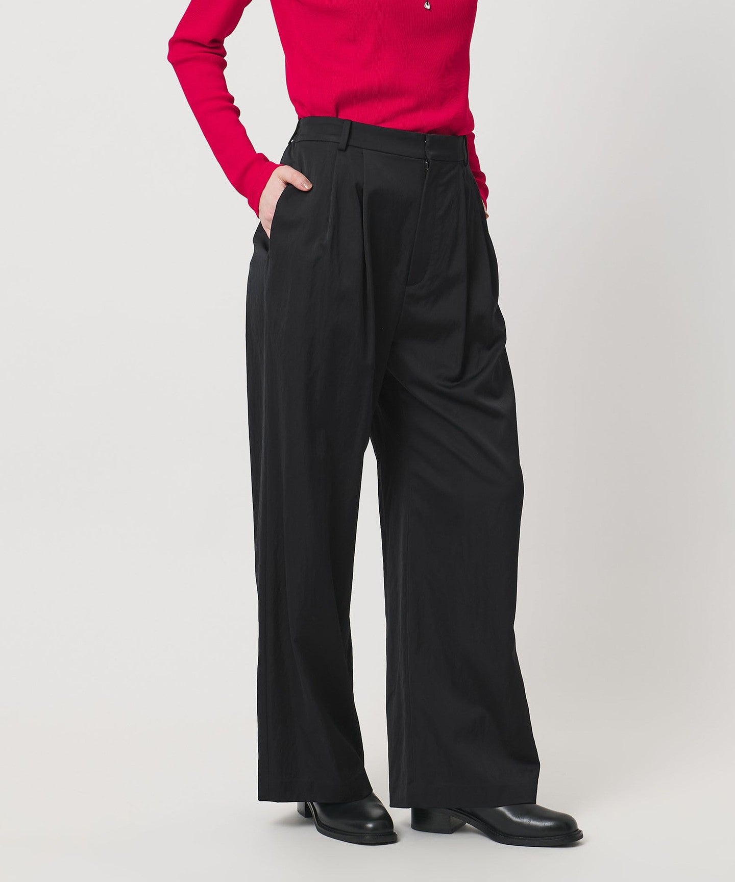 UNITED ARROWSSlim tapered side shirring 1 pleat slacks stretch wrinkle resistant