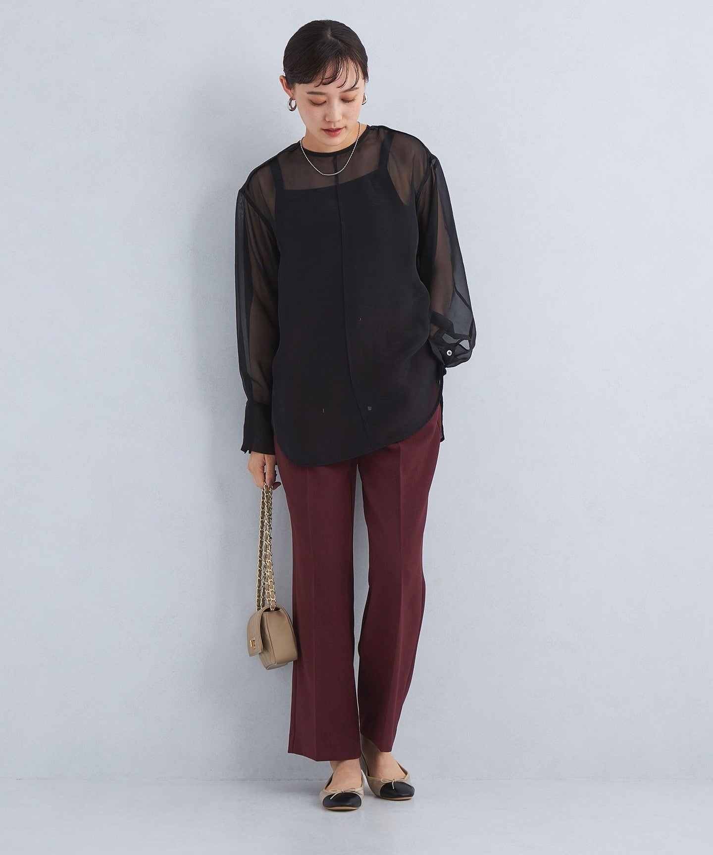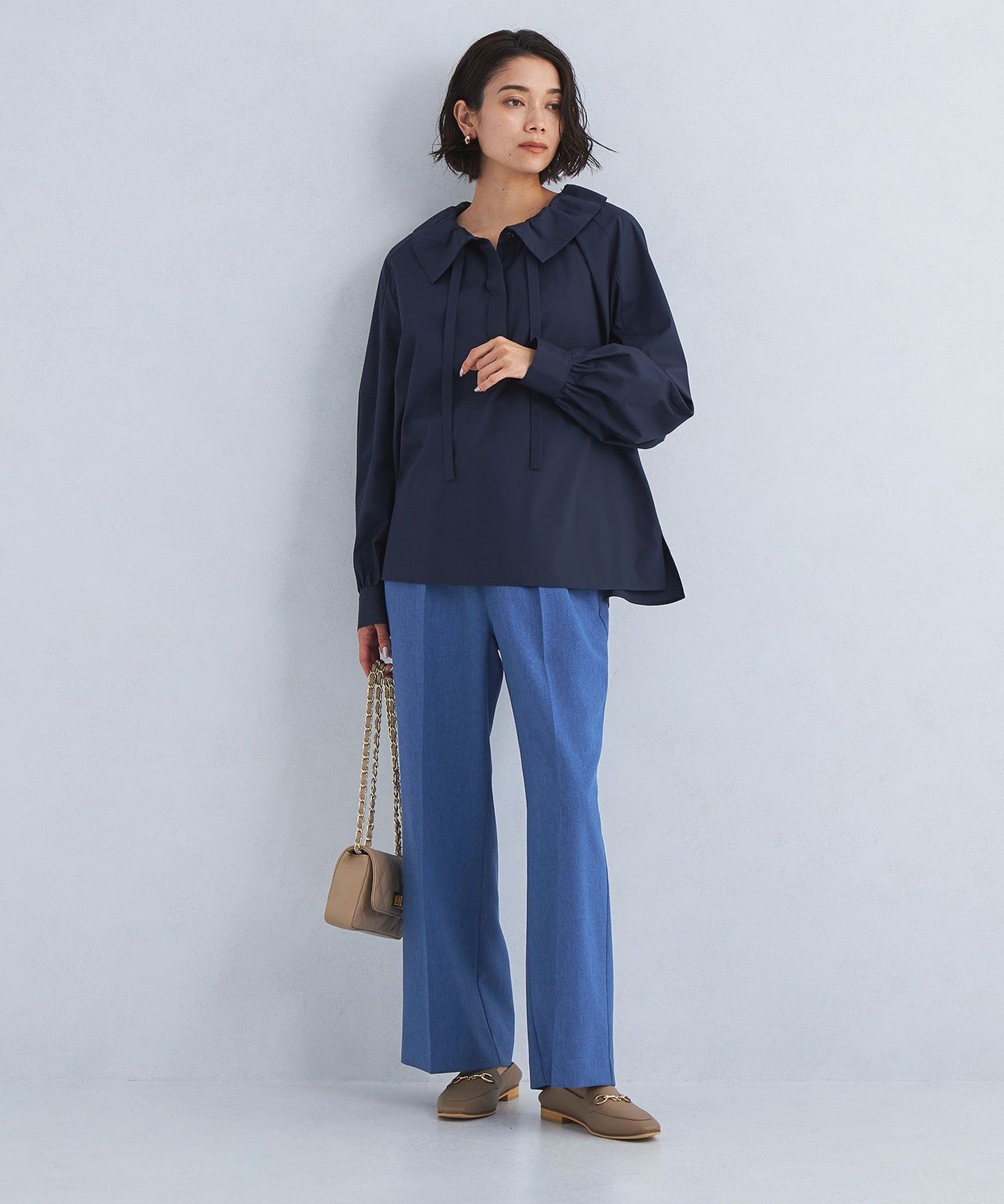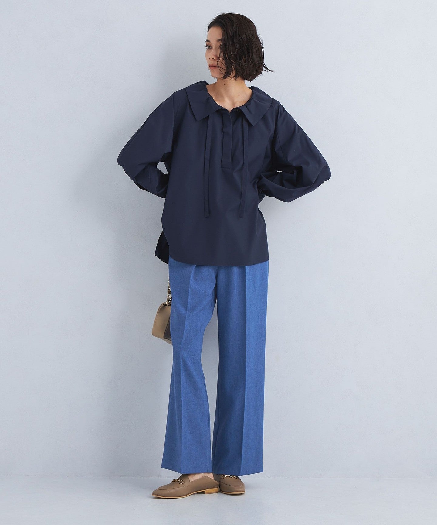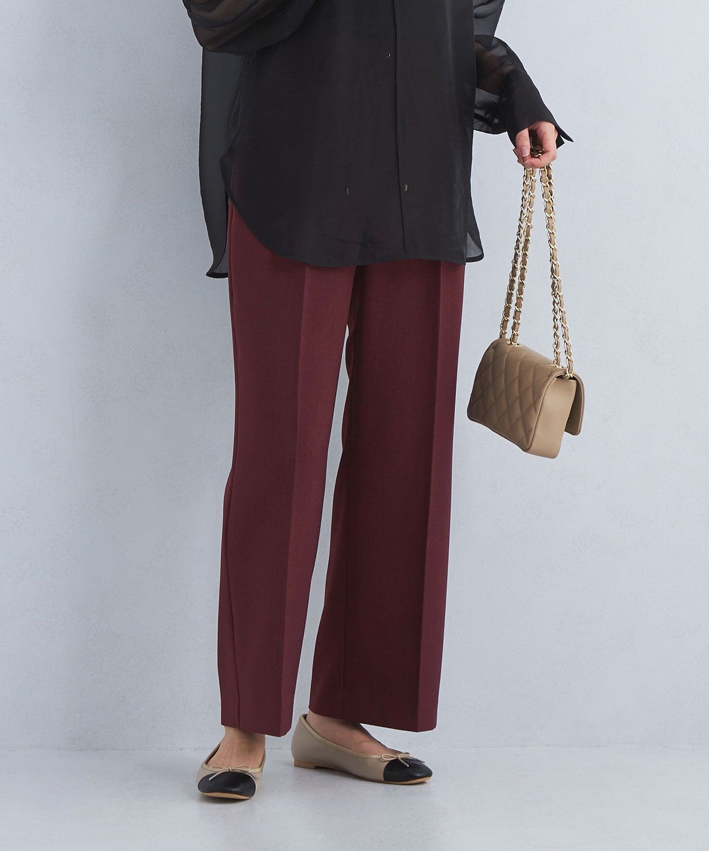 These semi-flared pants have an exquisite balance between being neither too slim nor too wide.