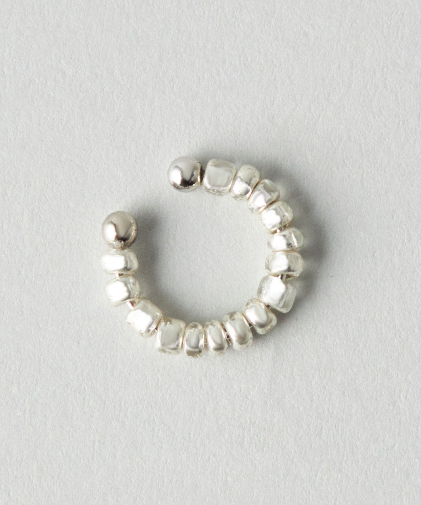 A simple single ear cuff made with metallic beads.