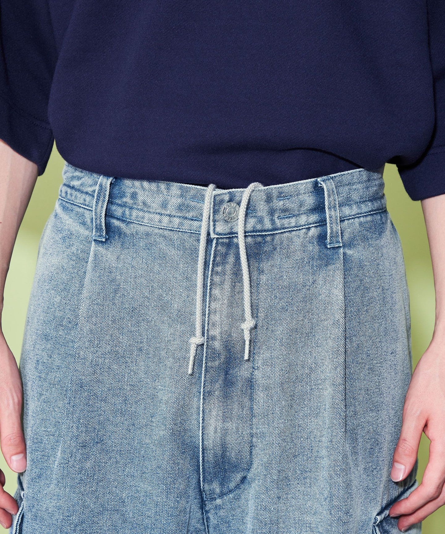 In addition to the easy design with a spindle so that it can be worn without a belt, spindles have also been added to the hem so that it can be worn with or without a belt.