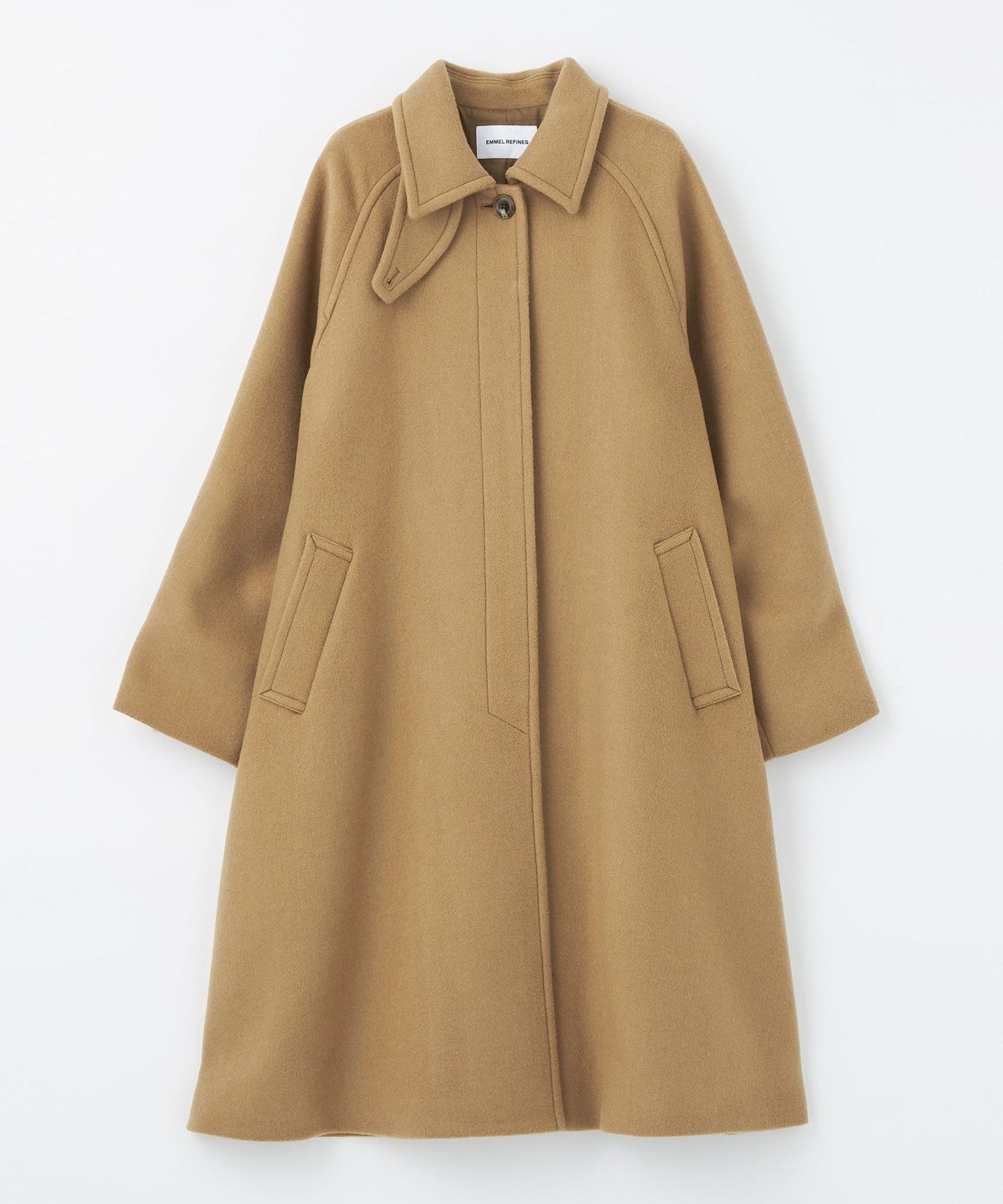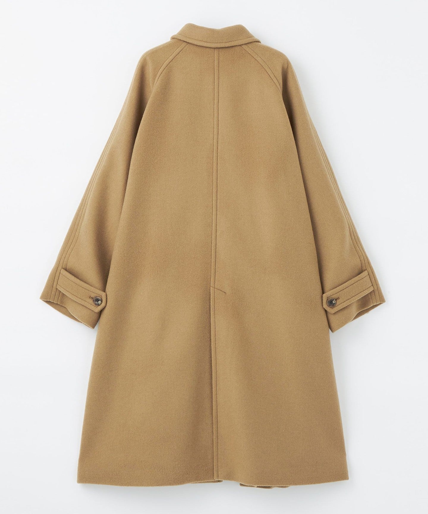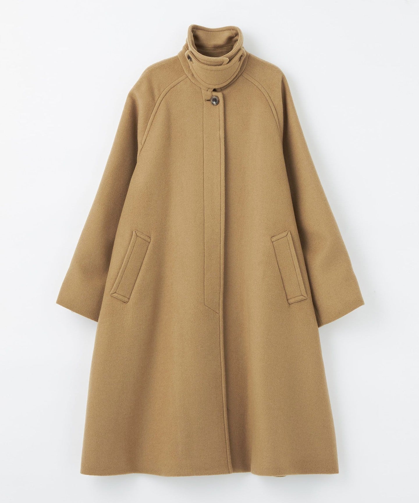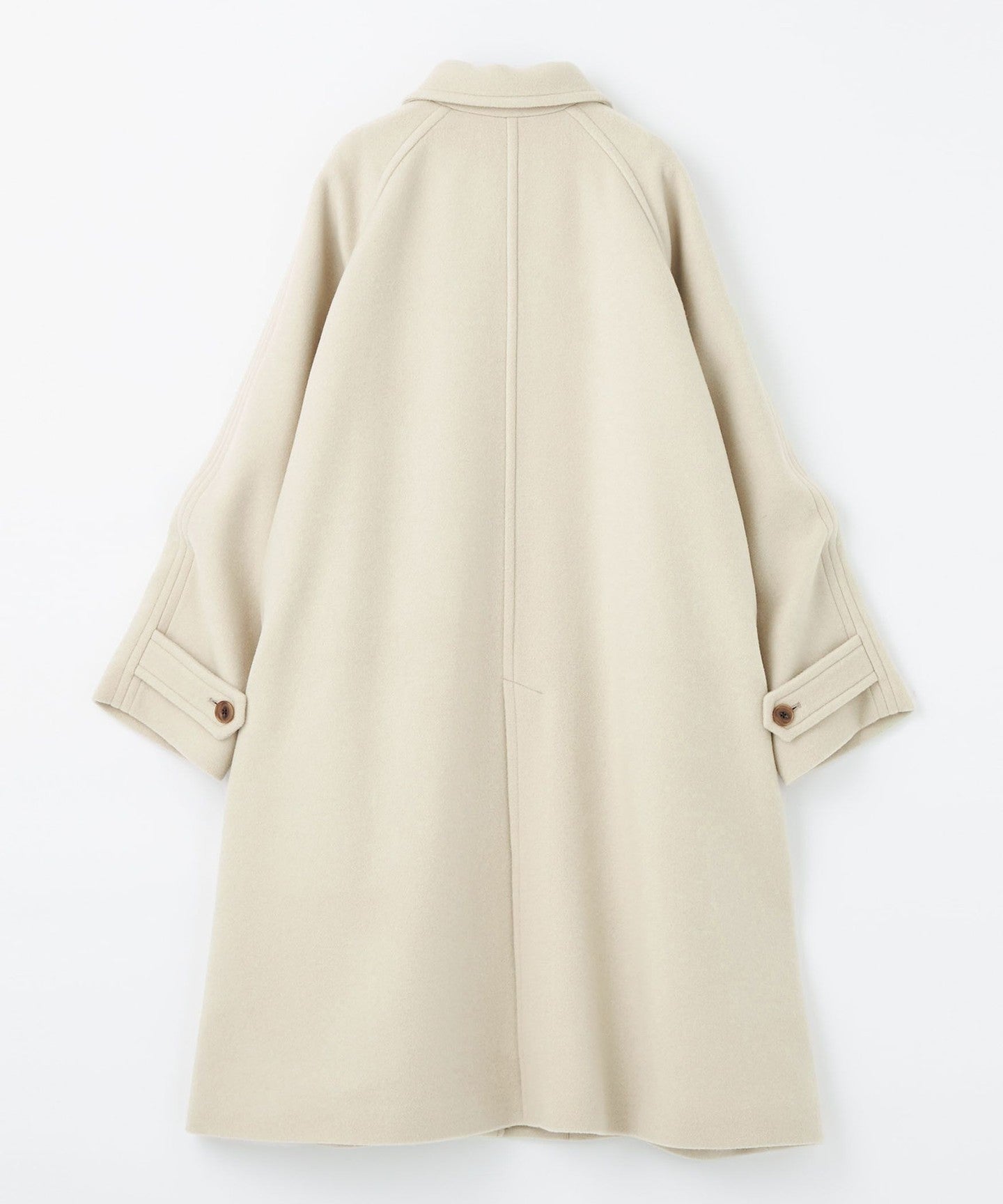This ladylike coat has a tent-line silhouette with a swaying hem like a cape.