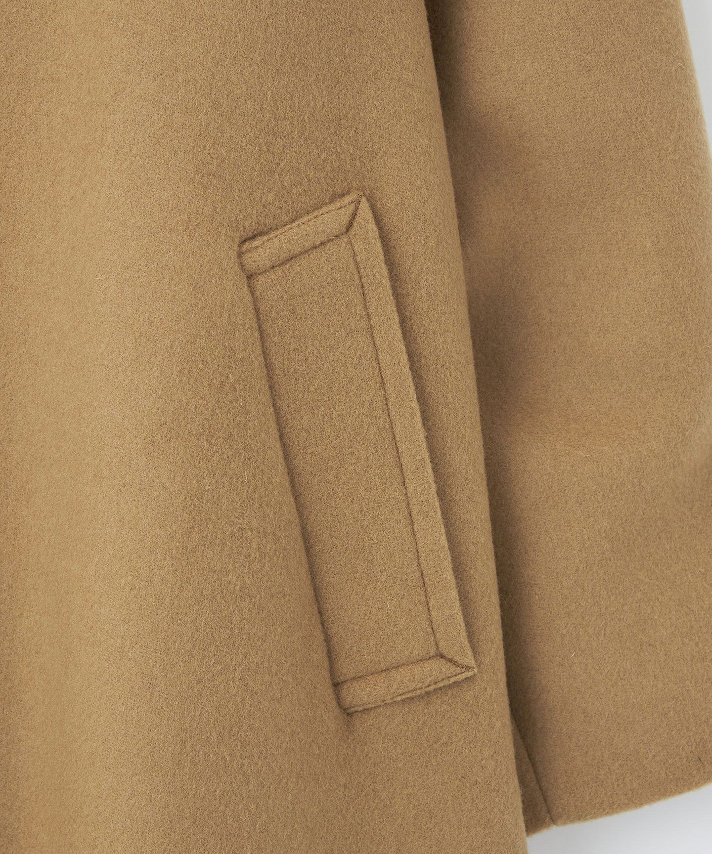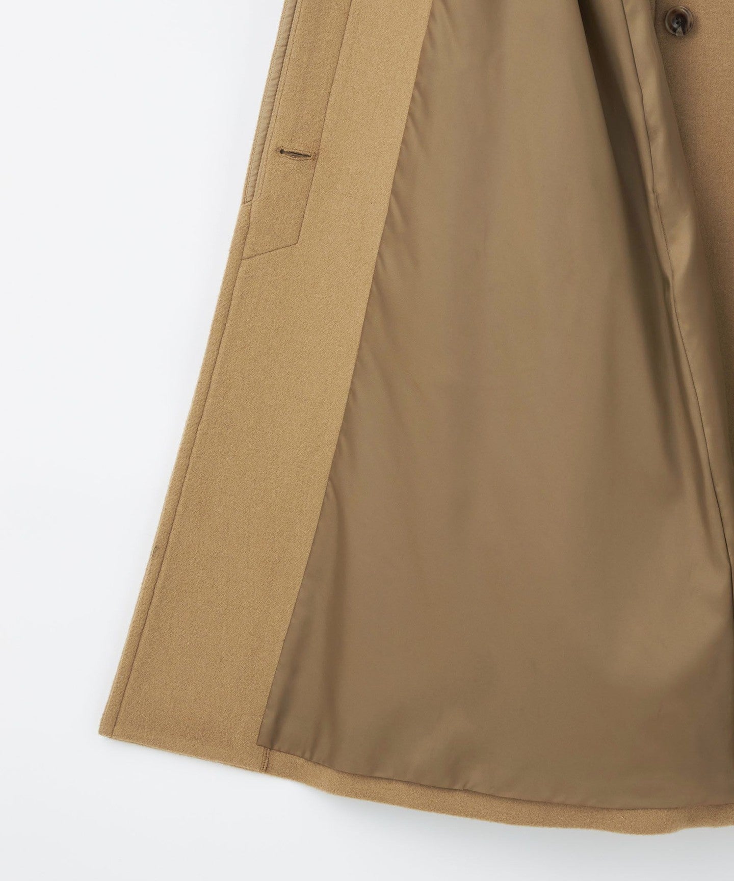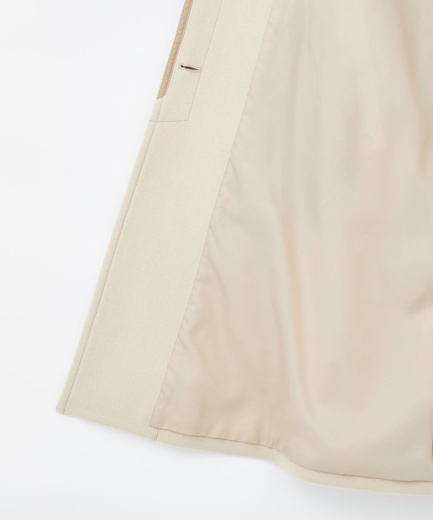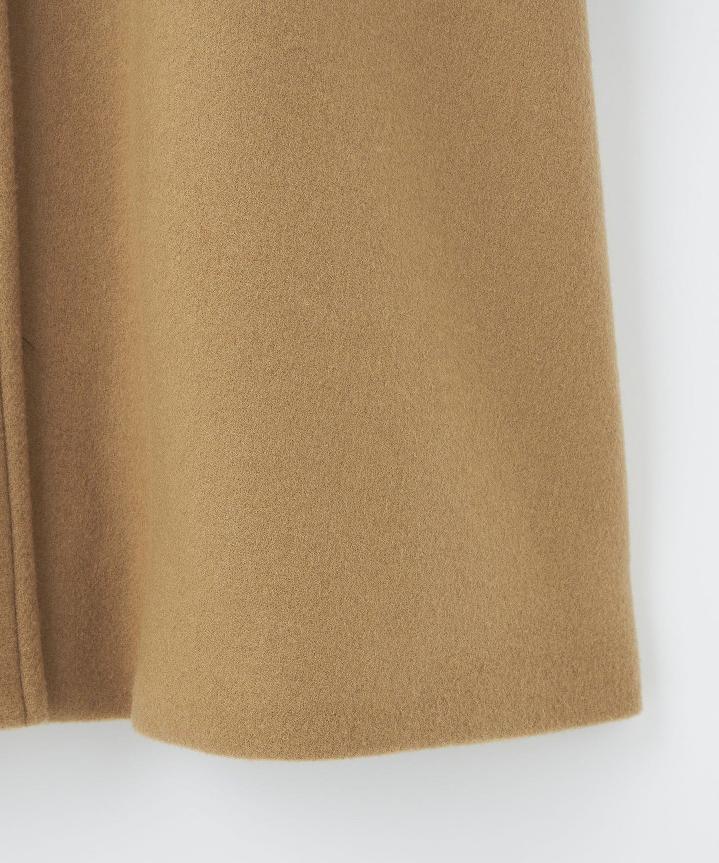 This ladylike coat has a tent-line silhouette with a swaying hem like a cape.