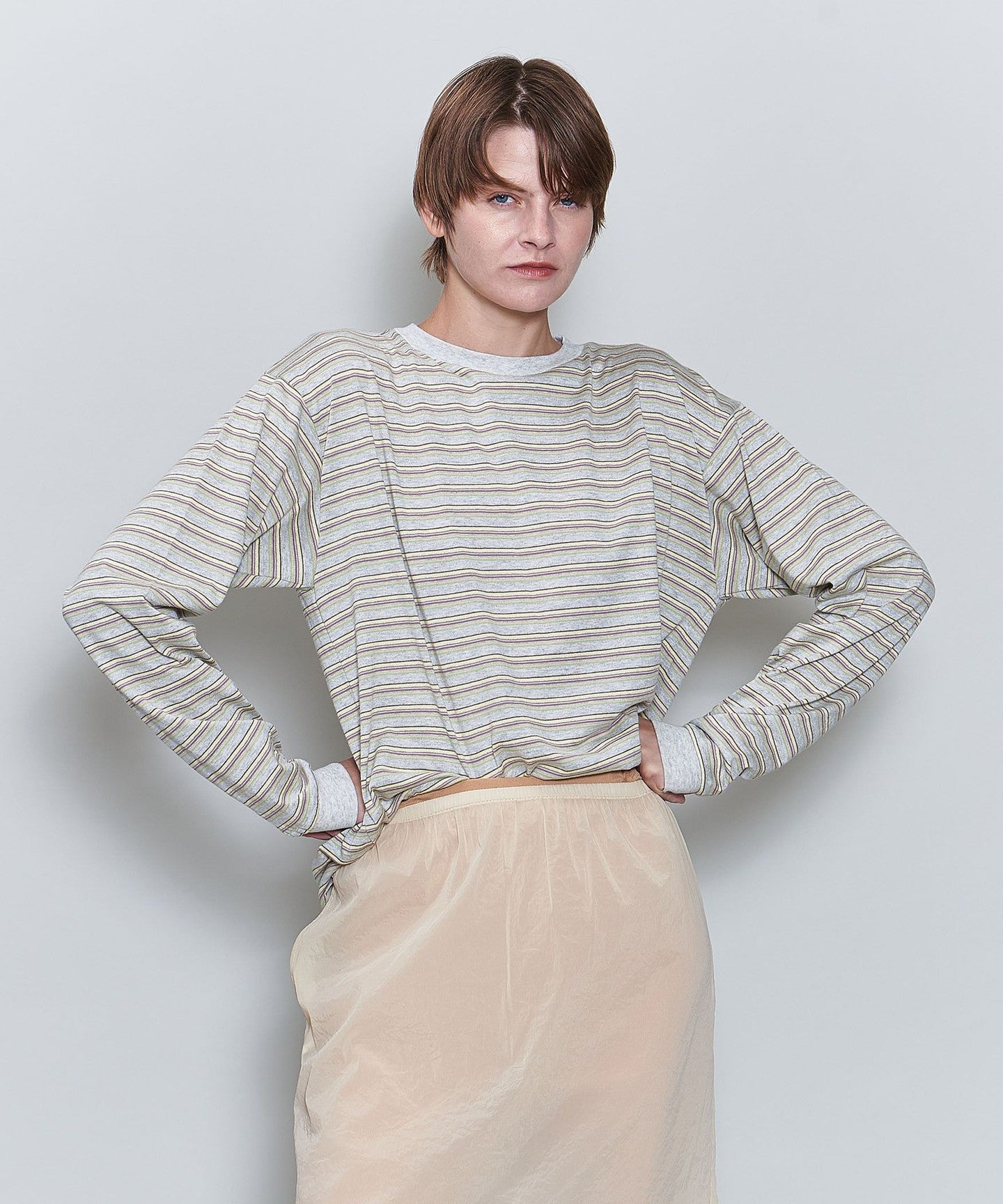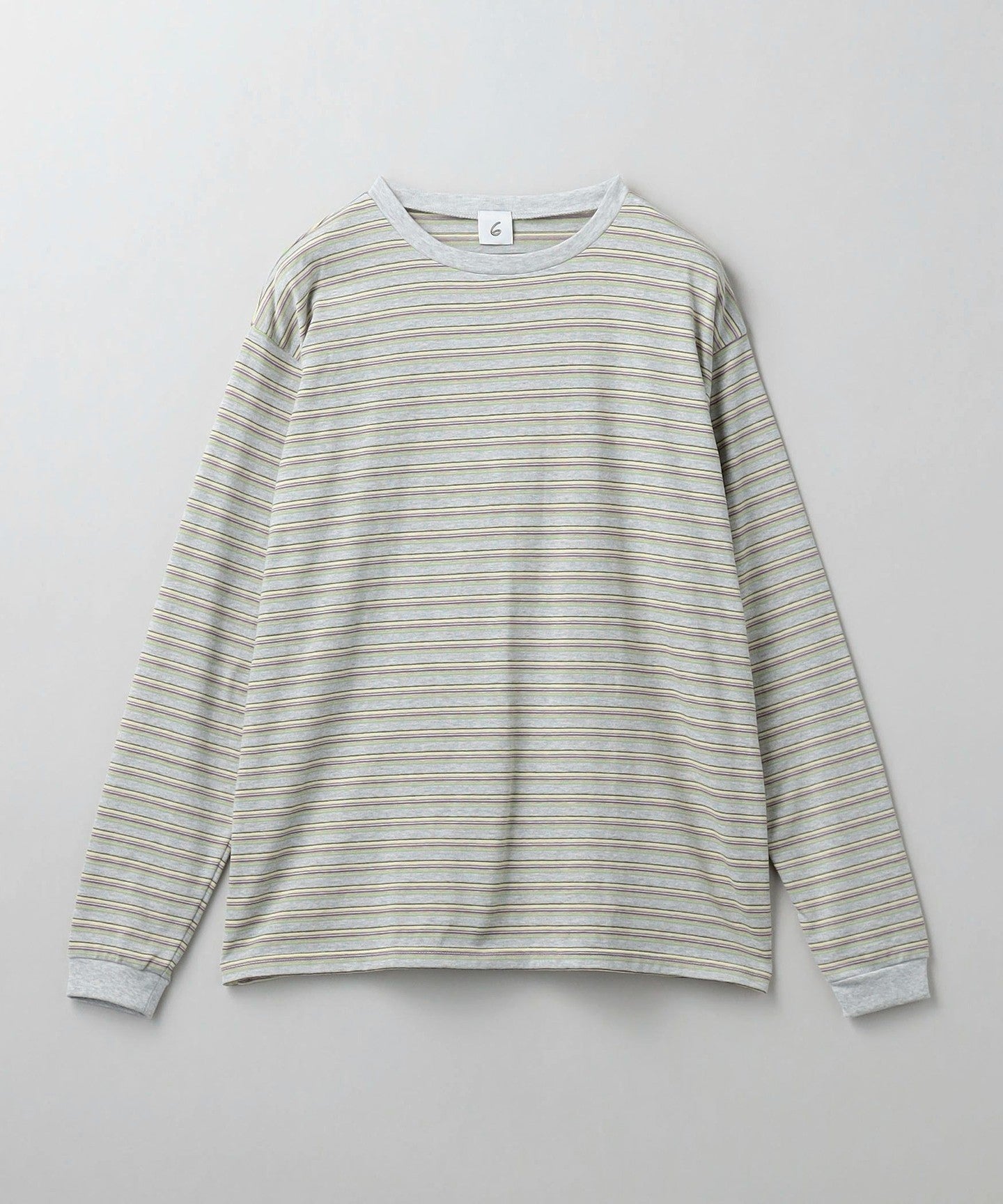 <6(ROKU)>Cotton striped long sleeve T-shirt 24AW