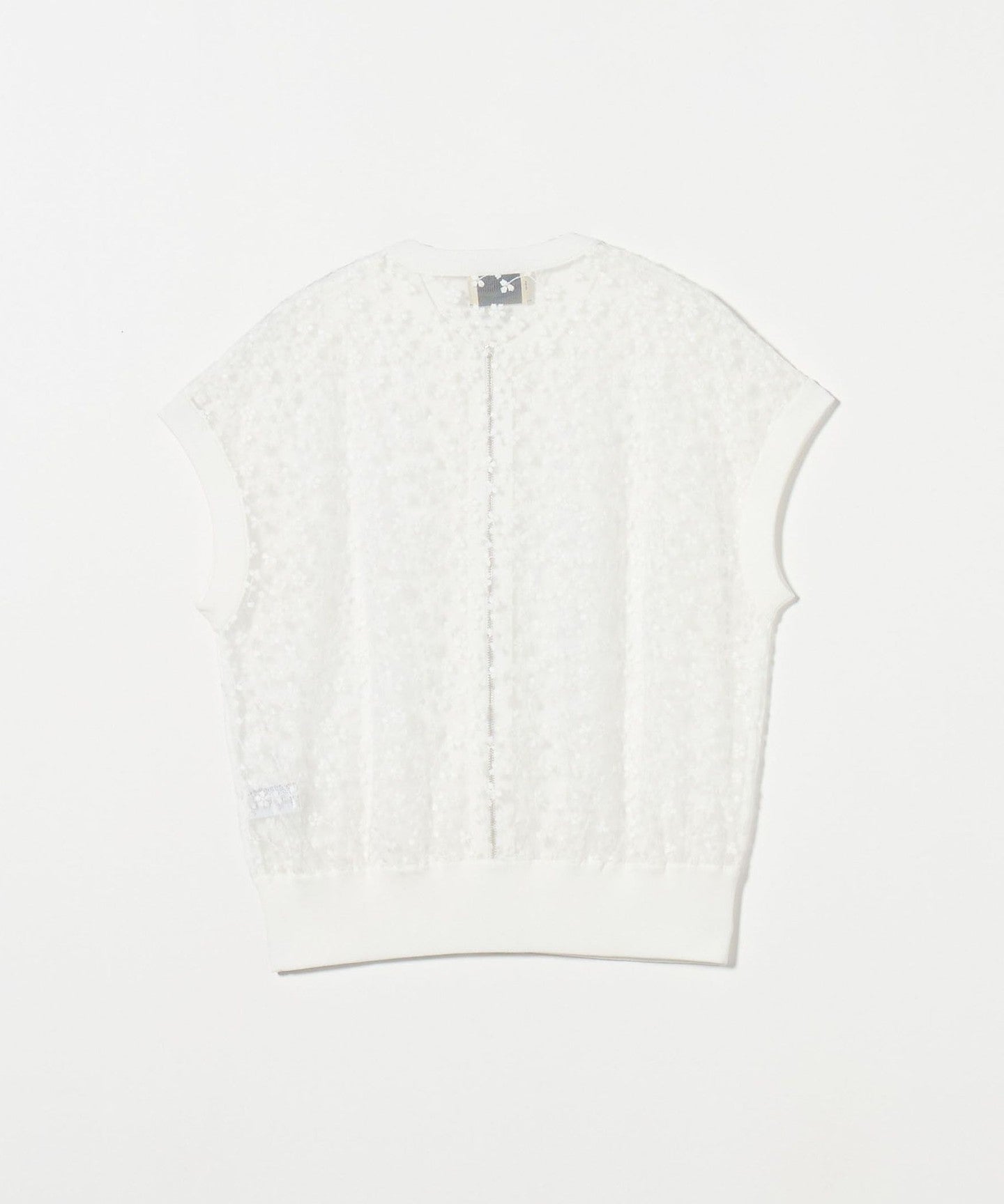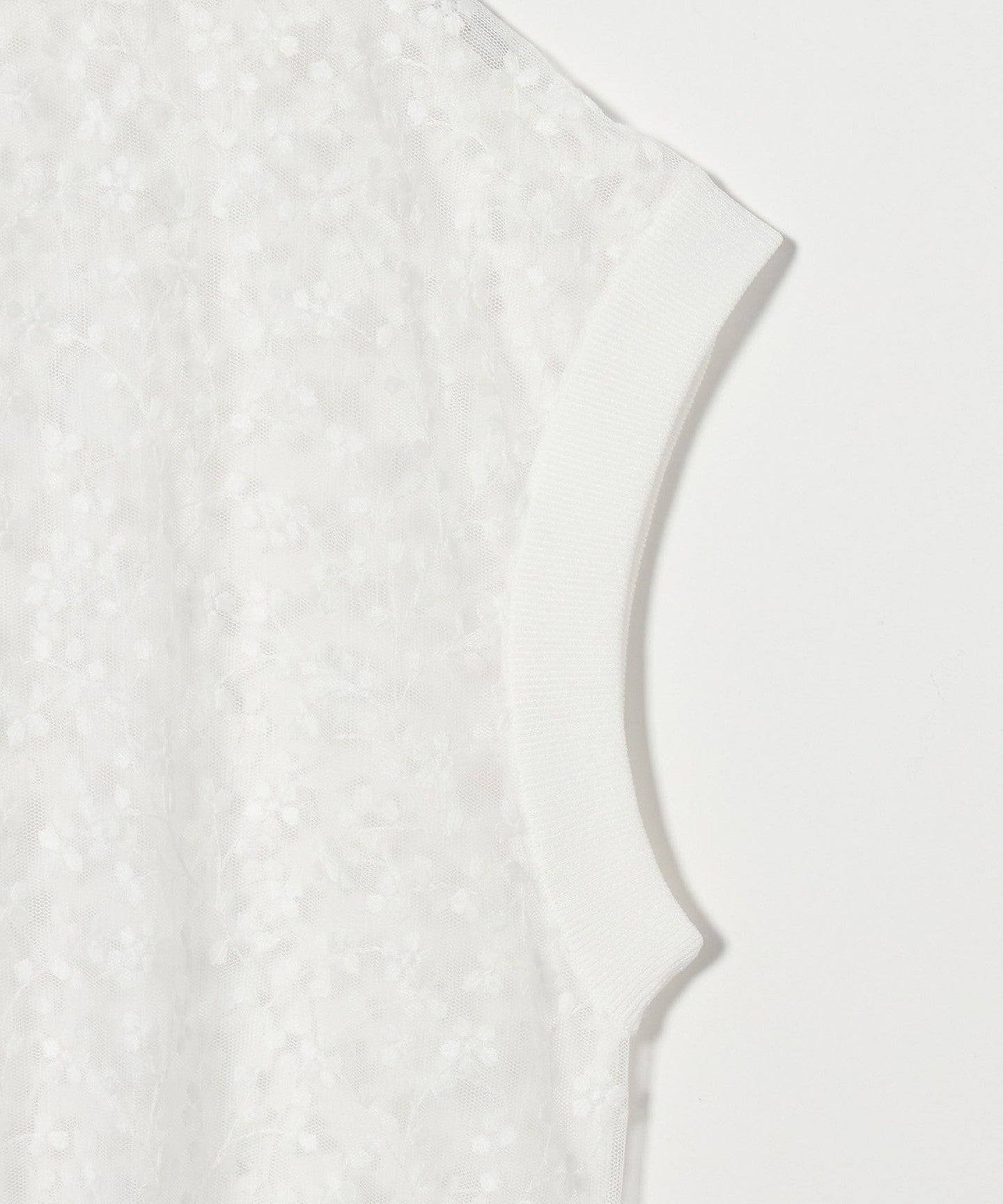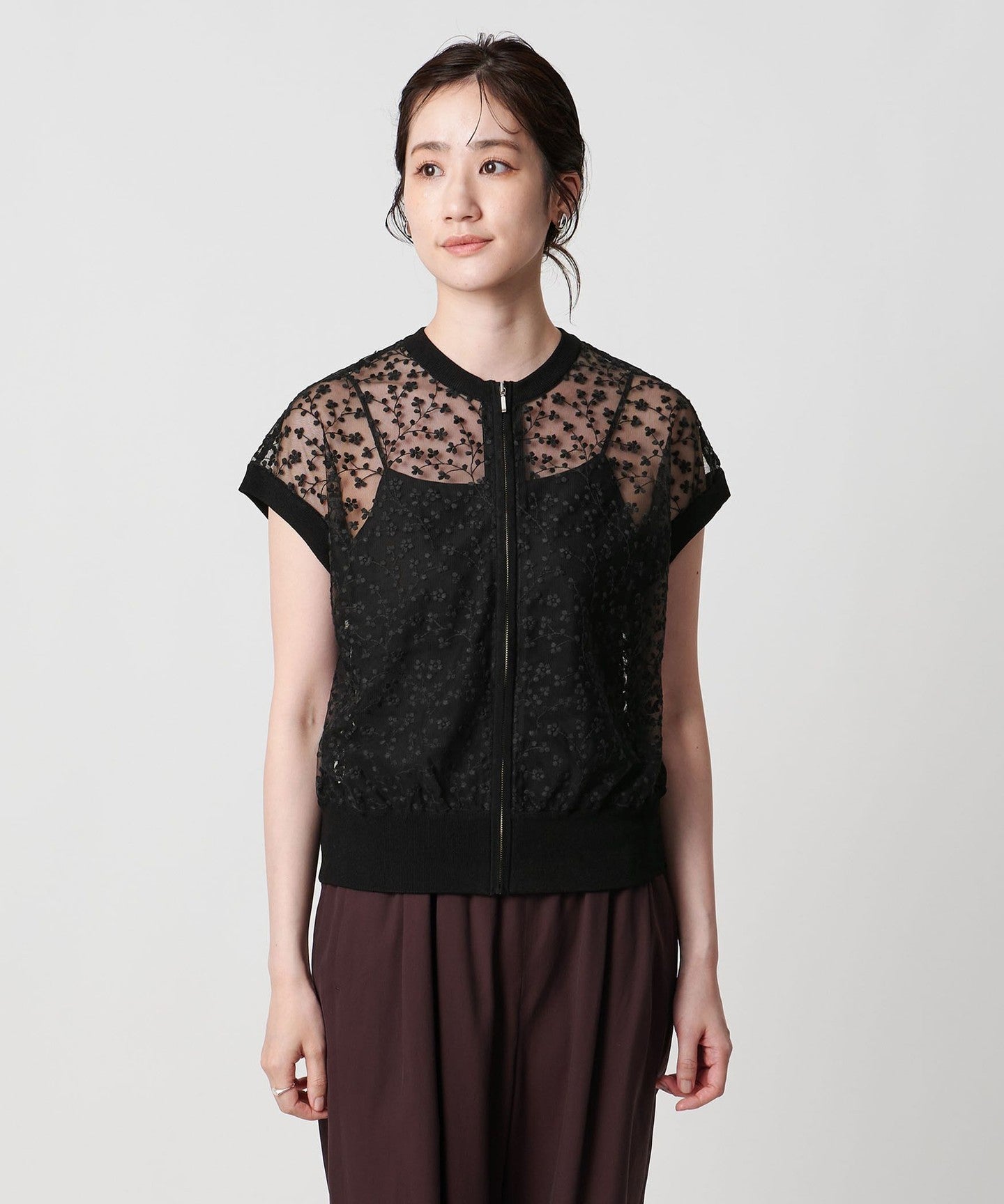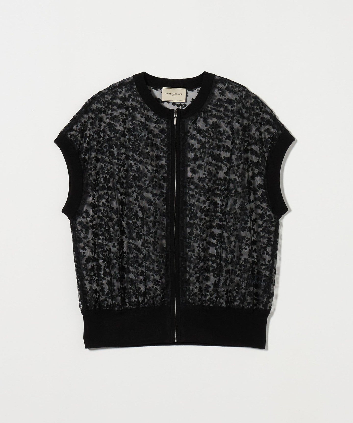 This sheer embroidered vest can be styled differently depending on the innerwear you wear, and is recommended for pairing with a camisole or sleeveless top for a cool look, or layering with a shirt.