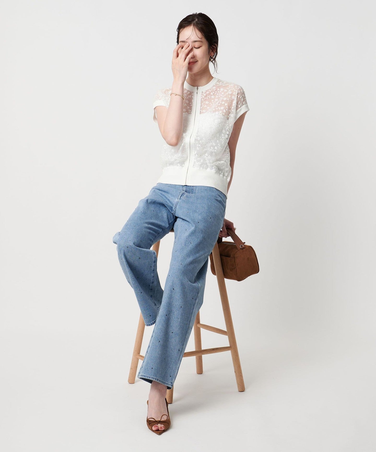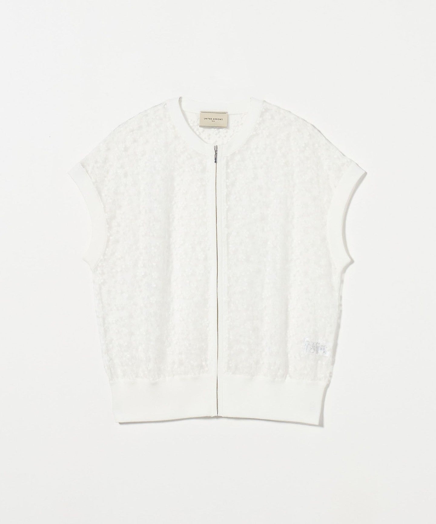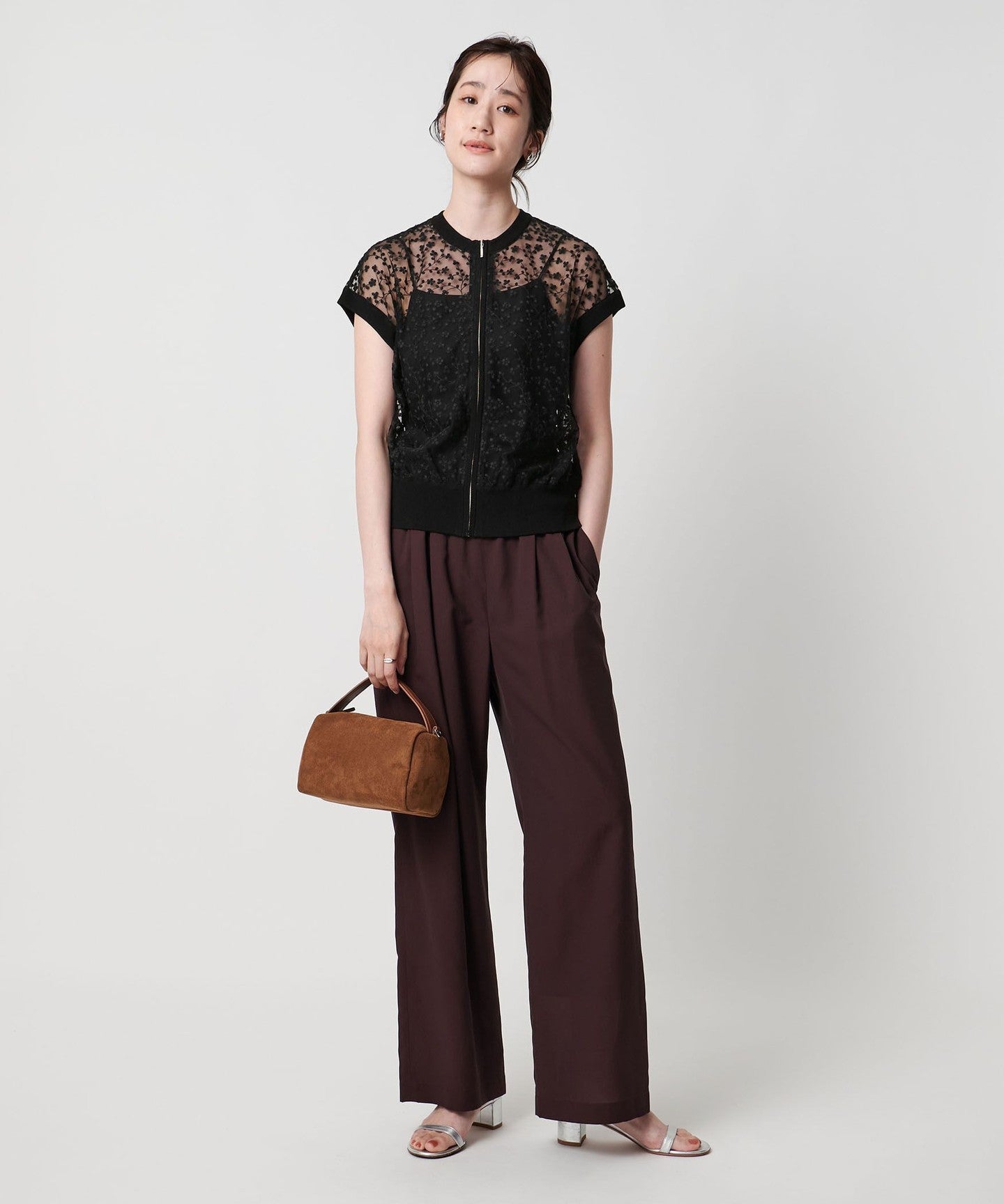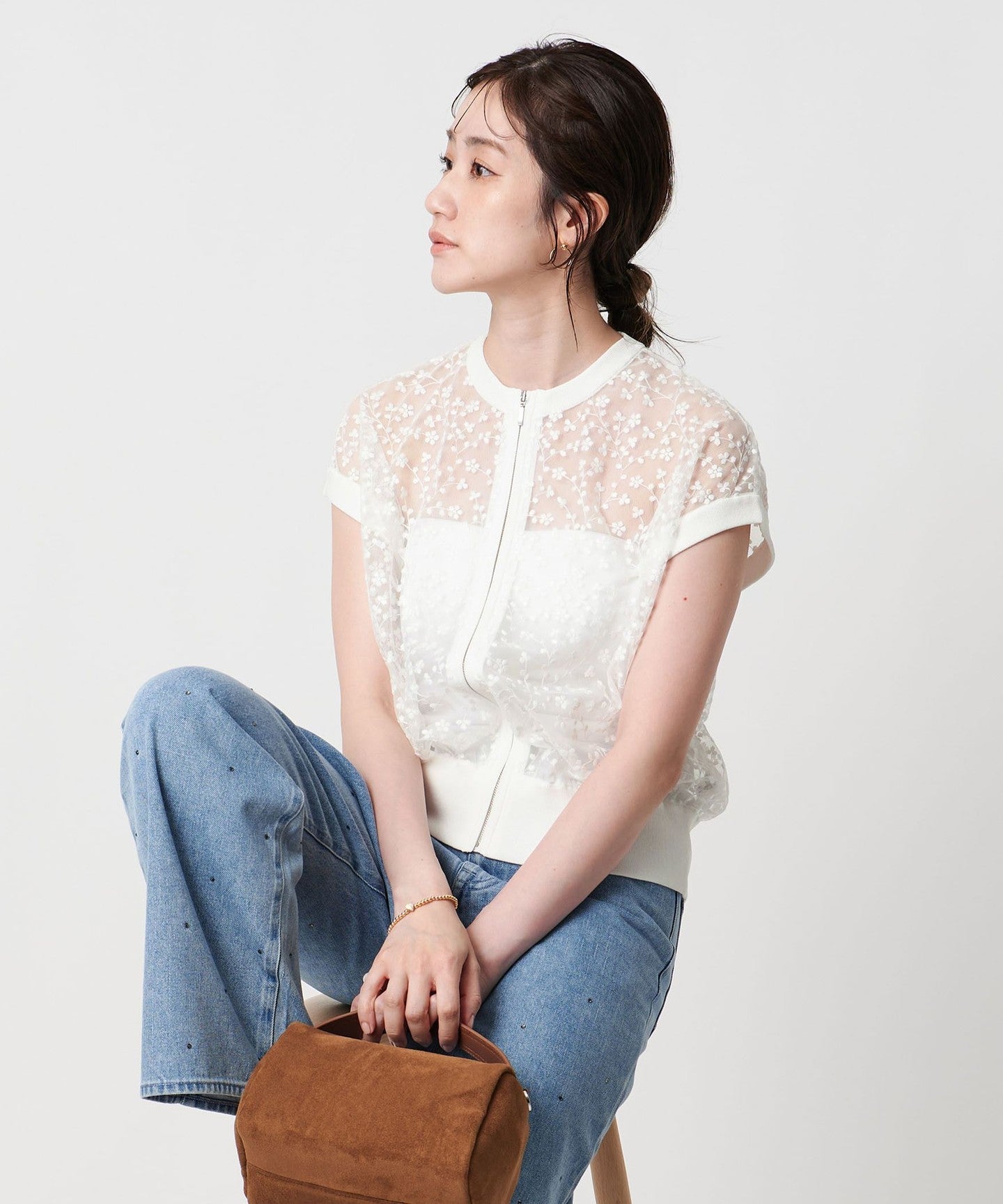 This sheer embroidered vest can be styled differently depending on the innerwear you wear, and is recommended for pairing with a camisole or sleeveless top for a cool look, or layering with a shirt.