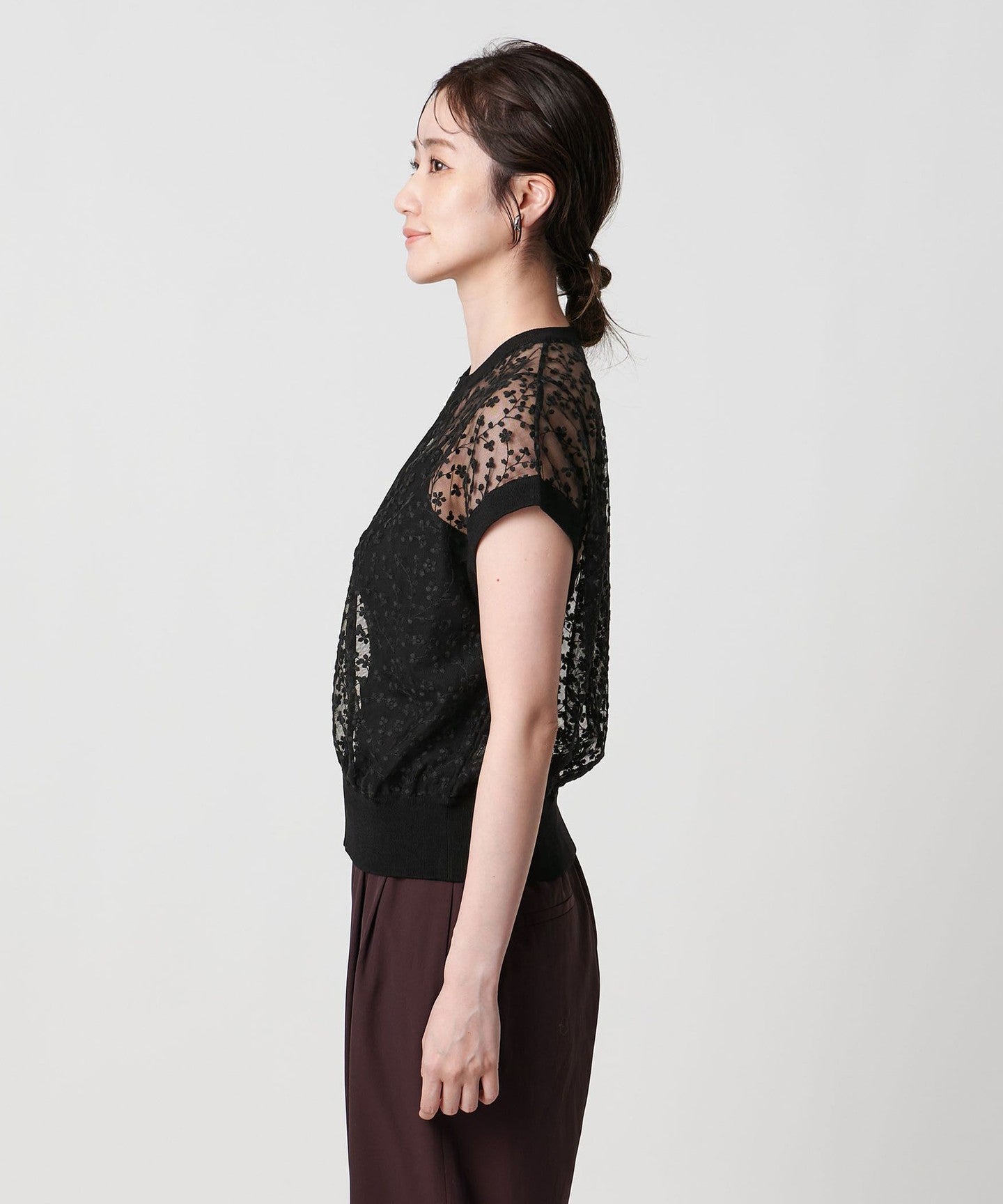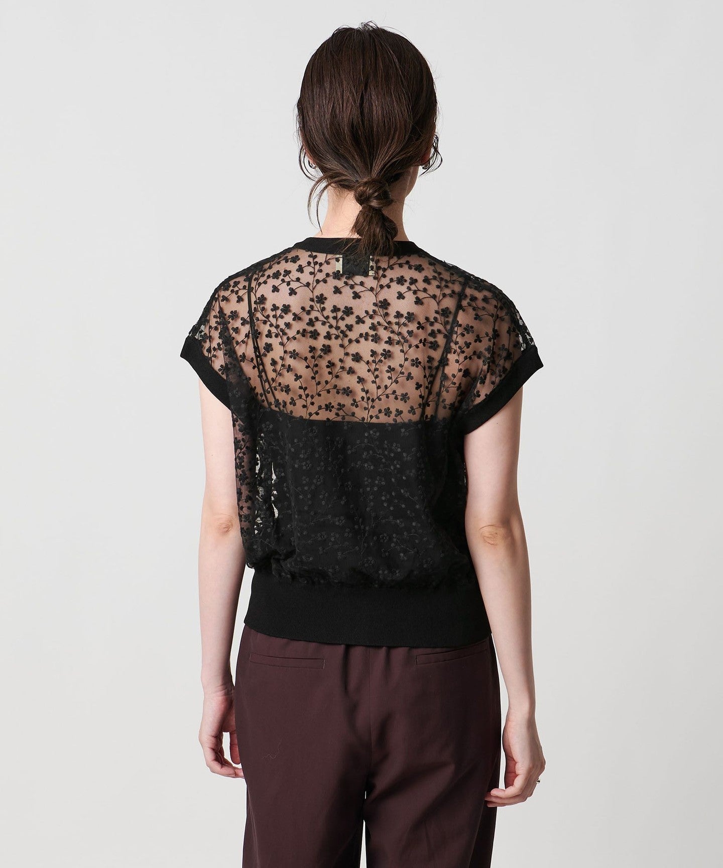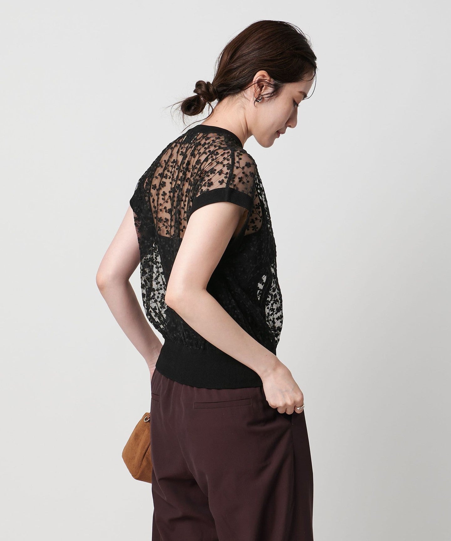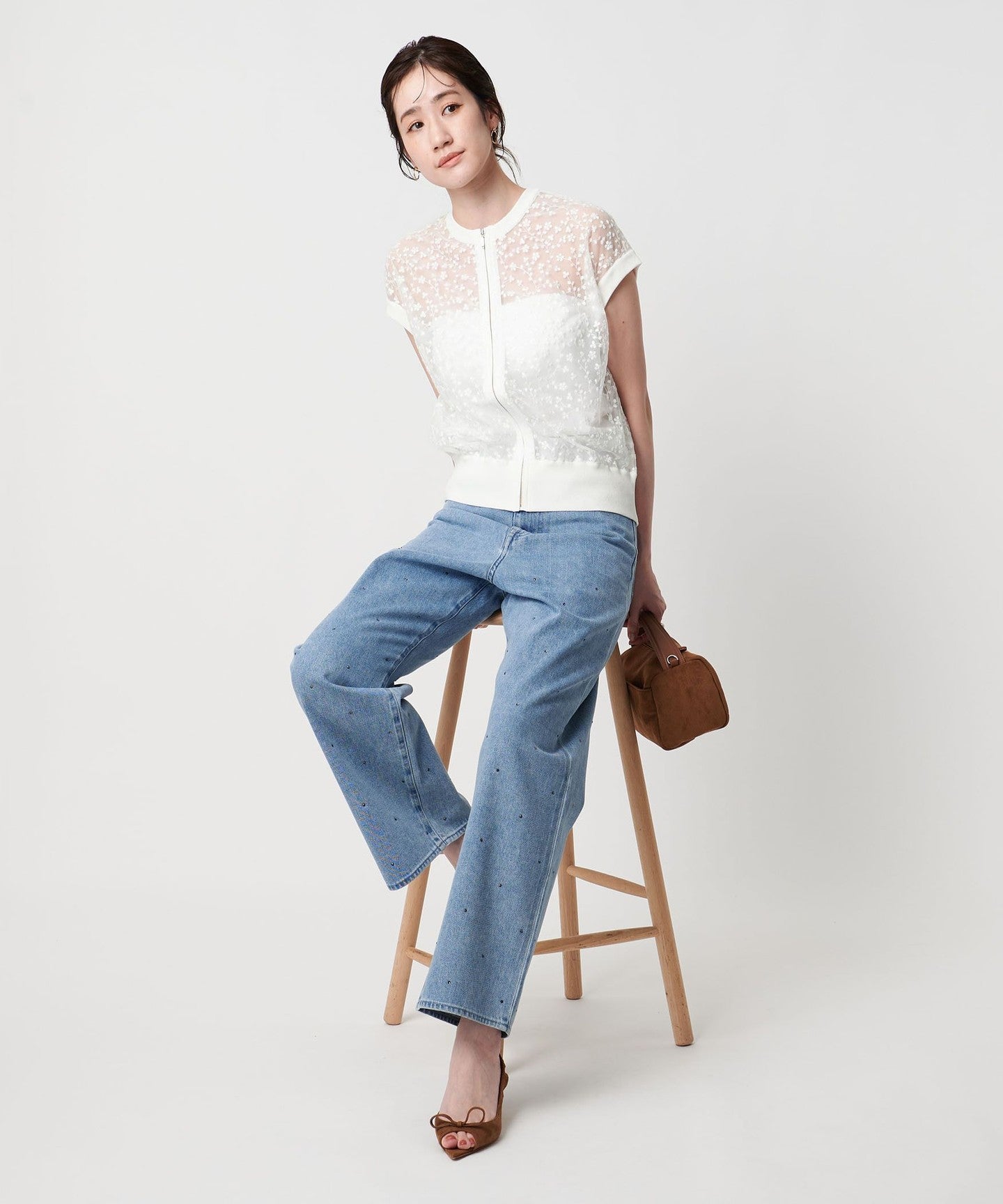 This sheer embroidered vest can be styled differently depending on the innerwear you wear, and is recommended for pairing with a camisole or sleeveless top for a cool look, or layering with a shirt.