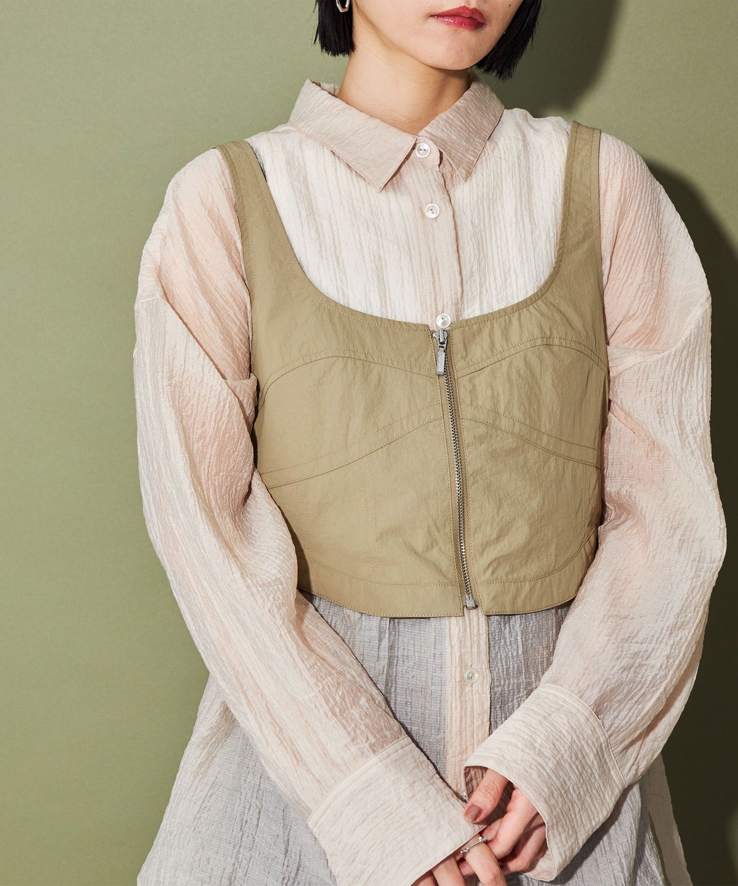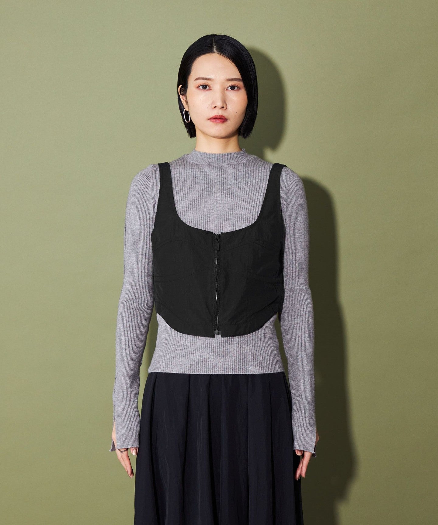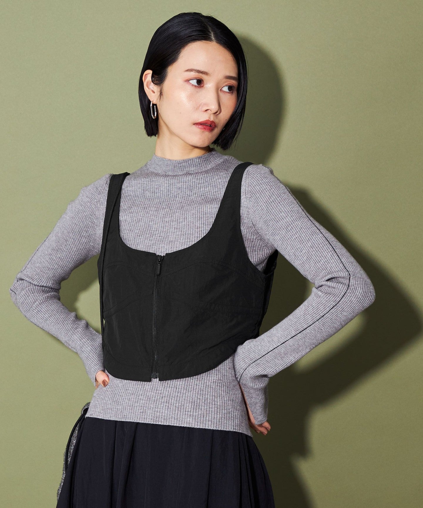 A zip-up bustier that adds a trendy touch