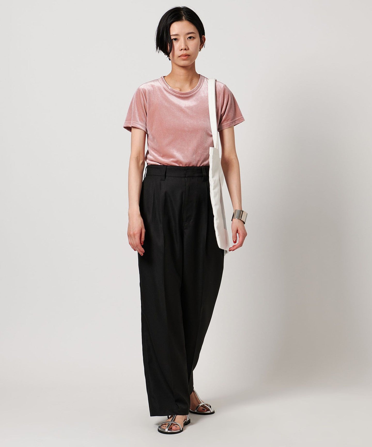 The moderately shiny velour material adds a trendy touch to your outfit with just this one piece.