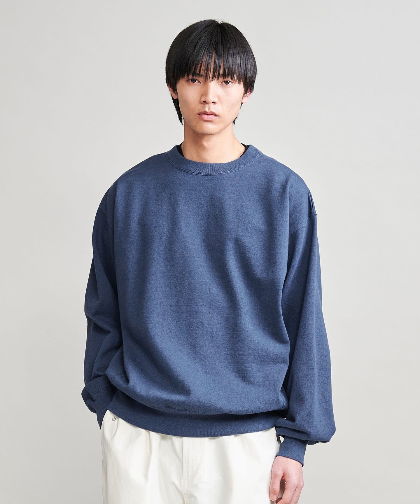 This classic sweatshirt pullover is a mid-weight piece with a mild texture. Its slubby, flowing texture lends it a relaxed yet luxurious feel, making it perfect for everyday wear. The length also allows for a balanced look by blousing it at the waist. With a focus on comfort and a modern silhouette, this versatile piece will remain a part of your wardrobe for years to come.