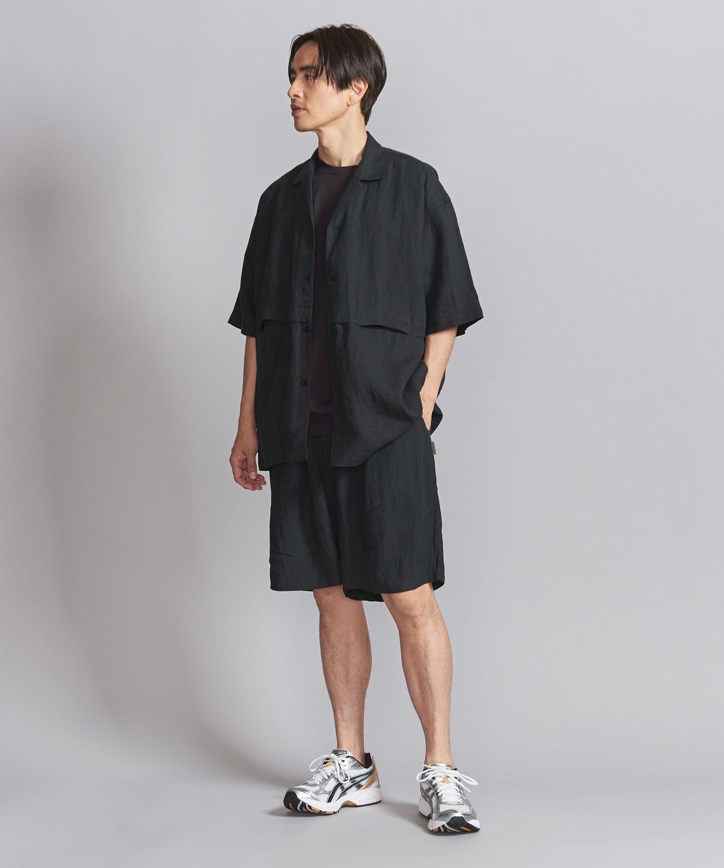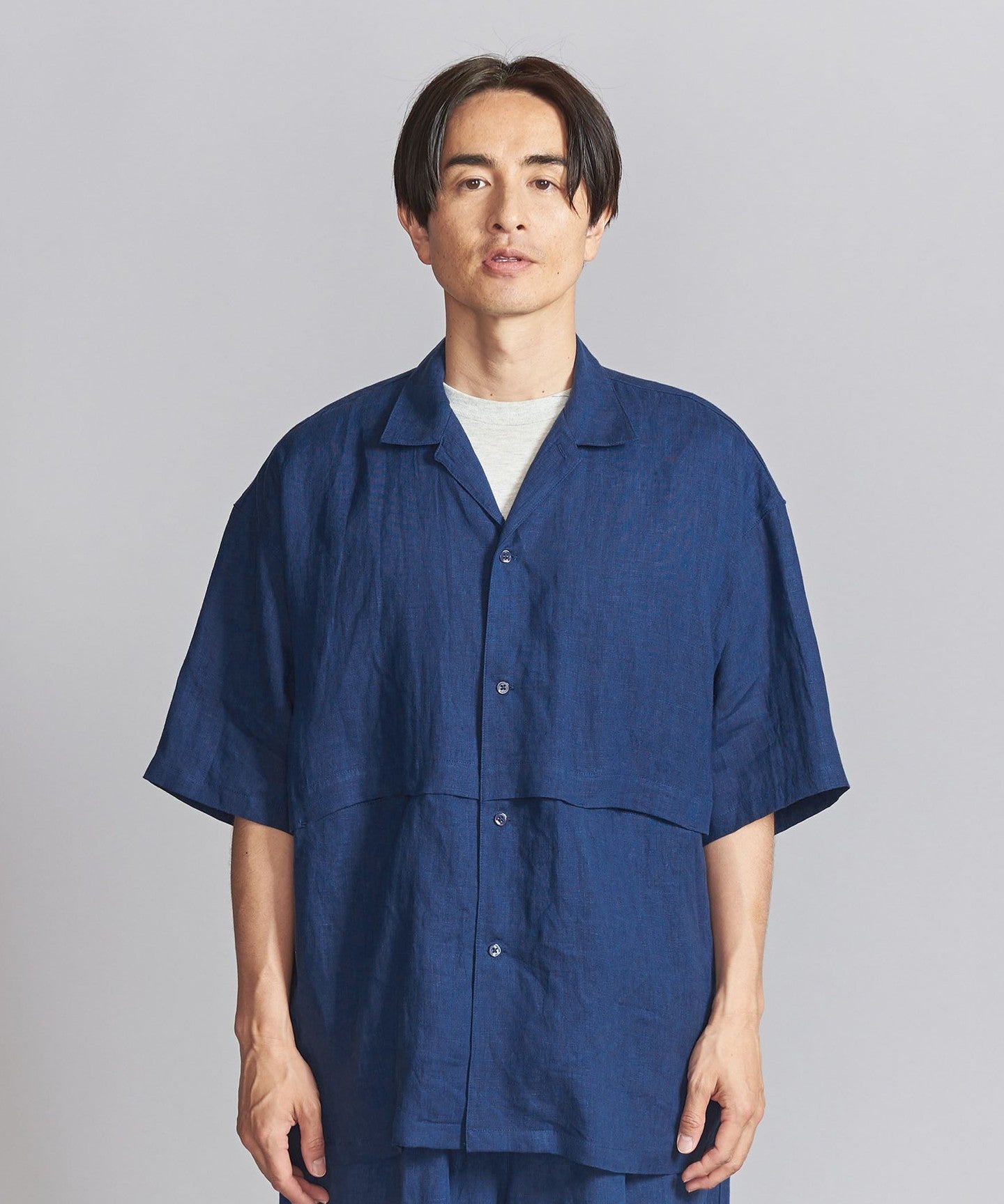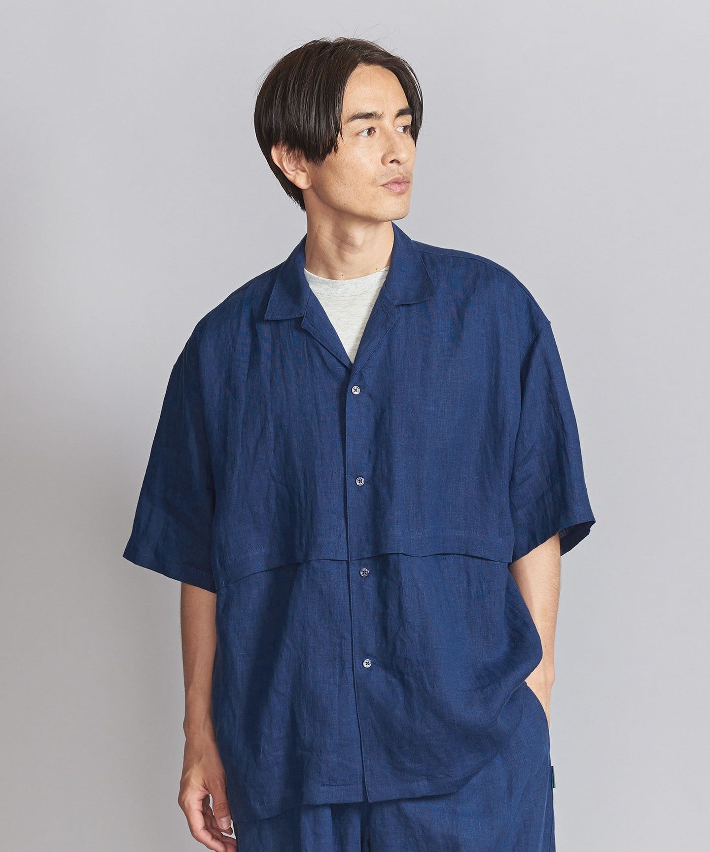 This open-collar shirt is made from soft and supple linen canvas.