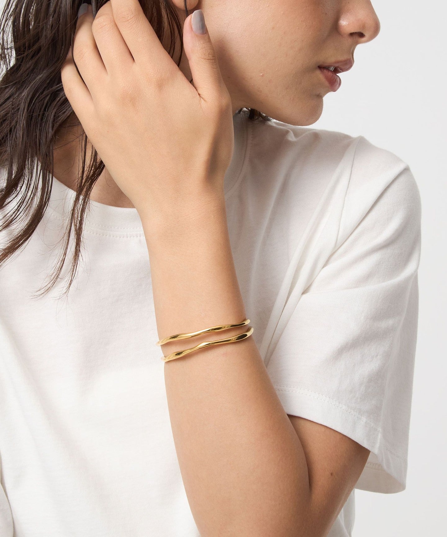 A double-line bangle with moderate volume.