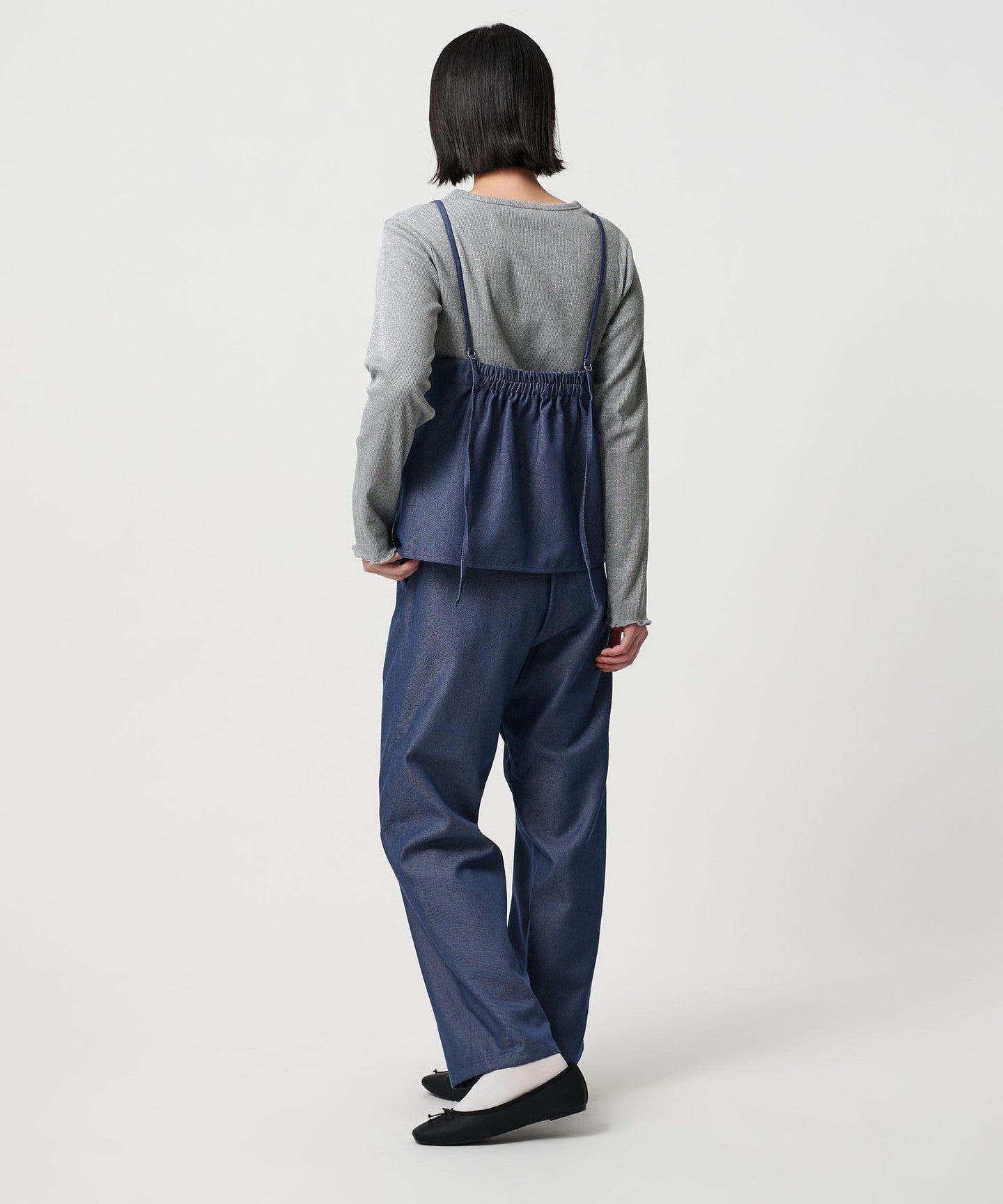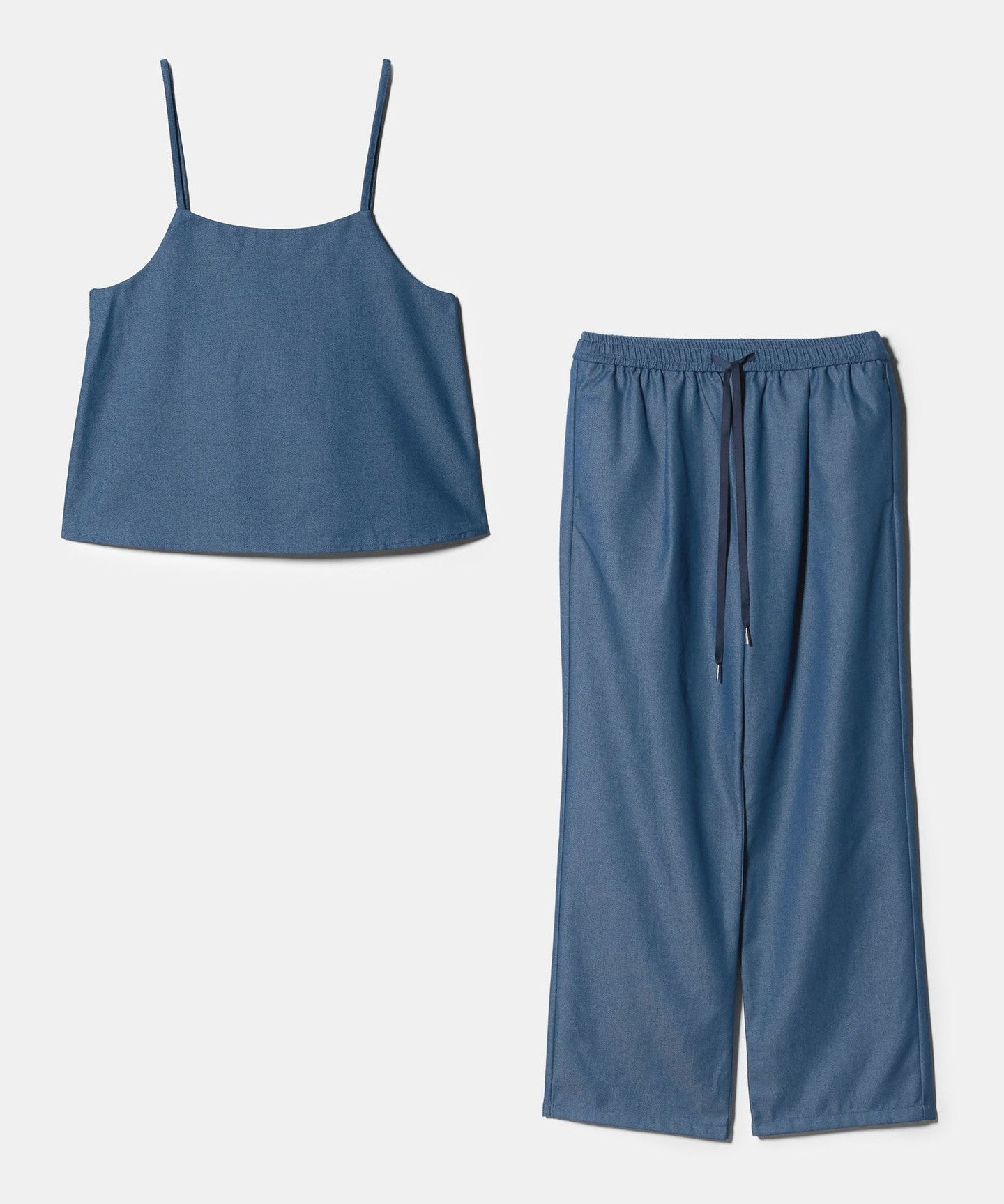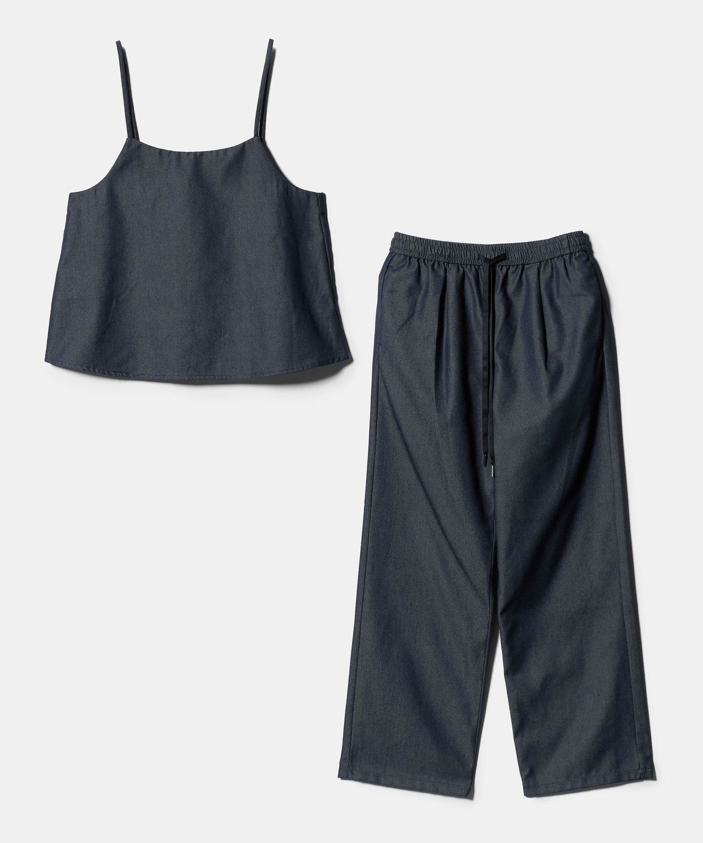 A set of camisole and pants made of denim-like material.