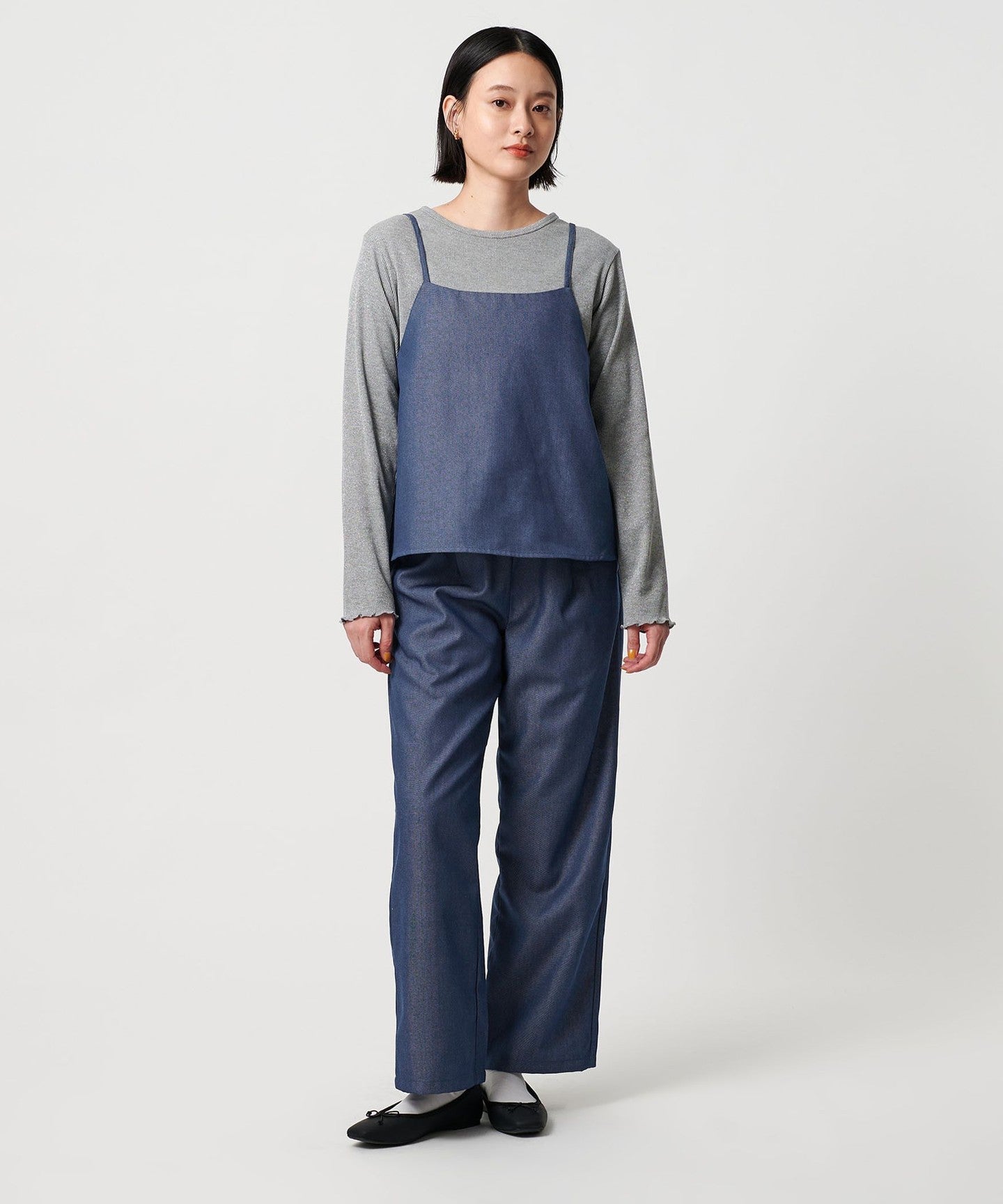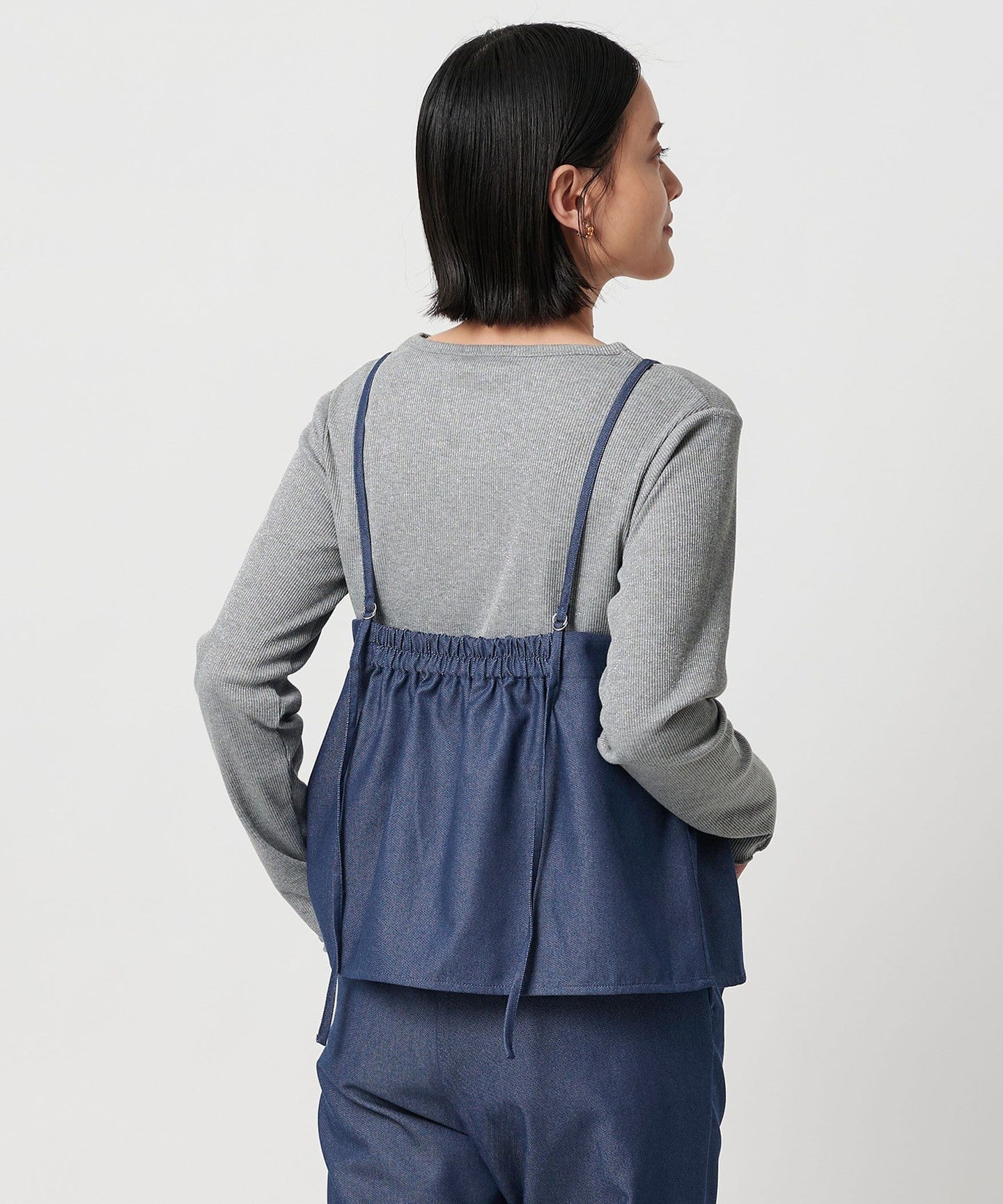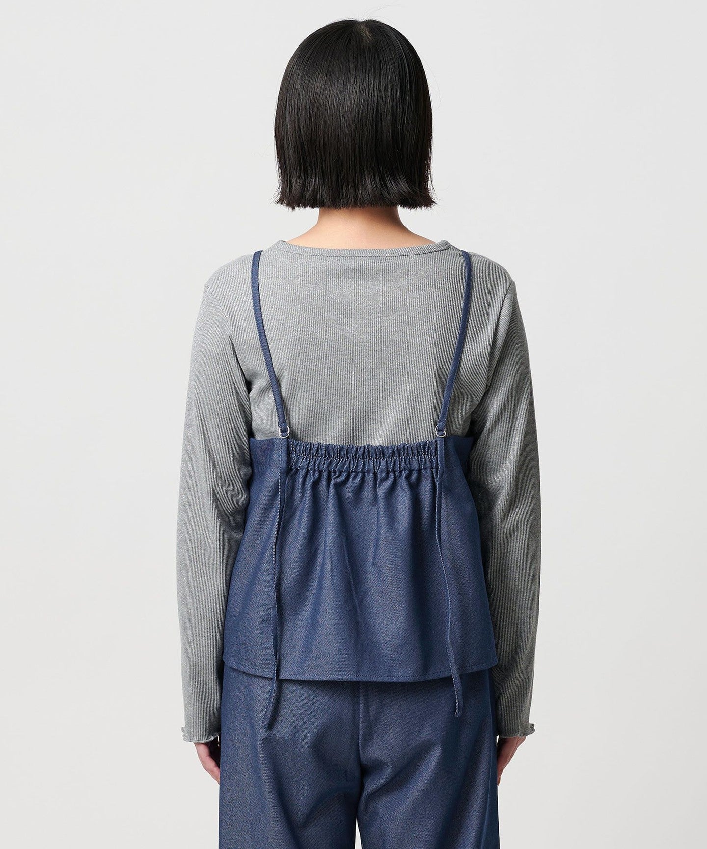 A set of camisole and pants made of denim-like material.