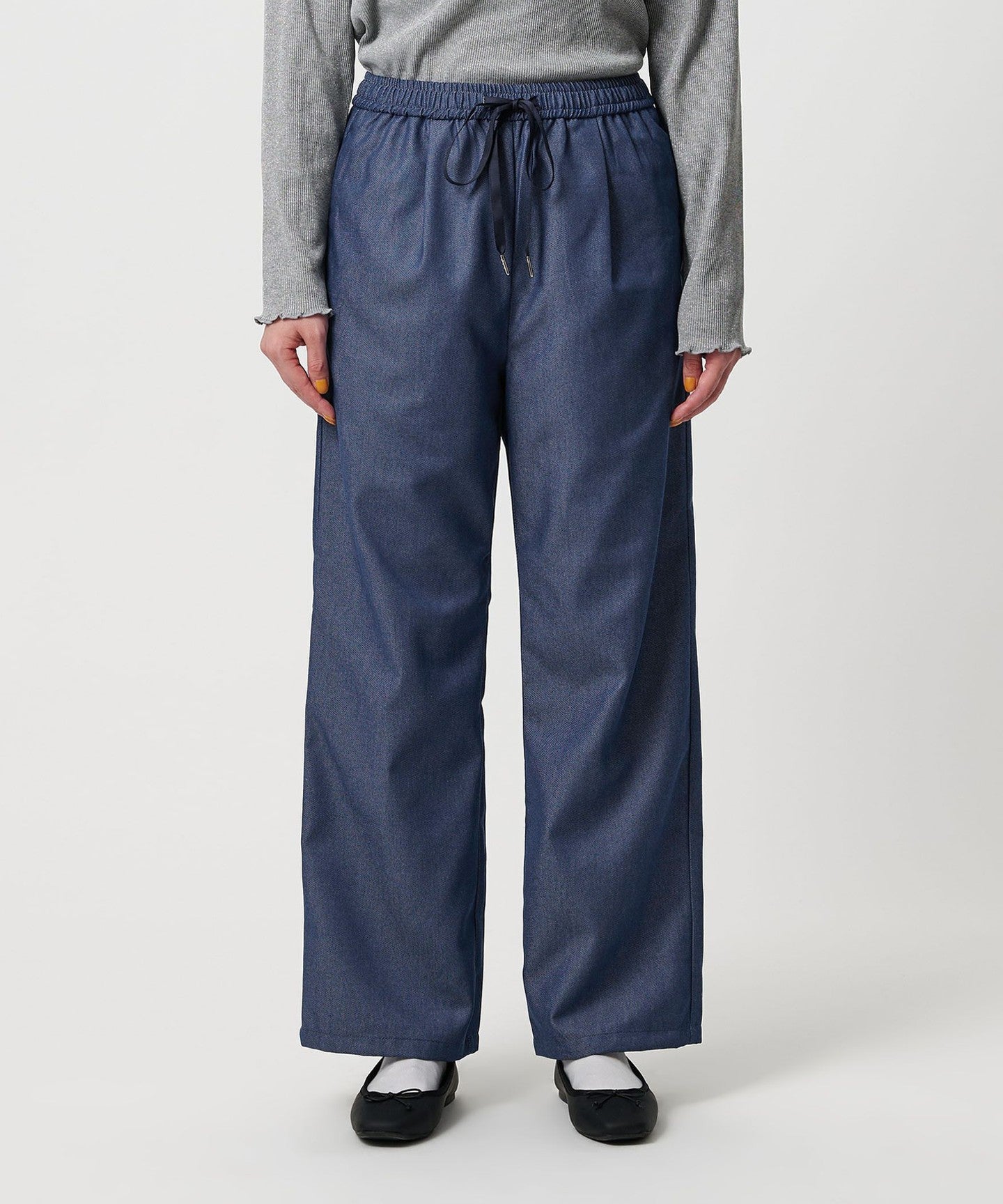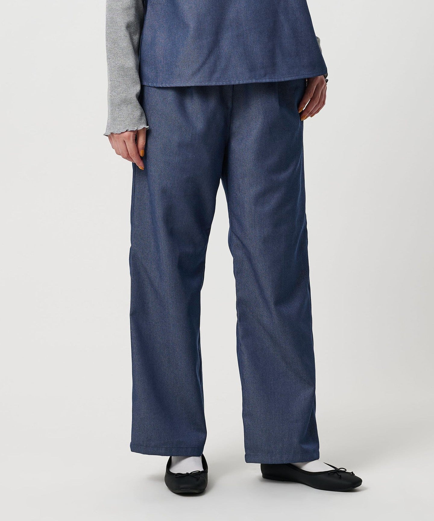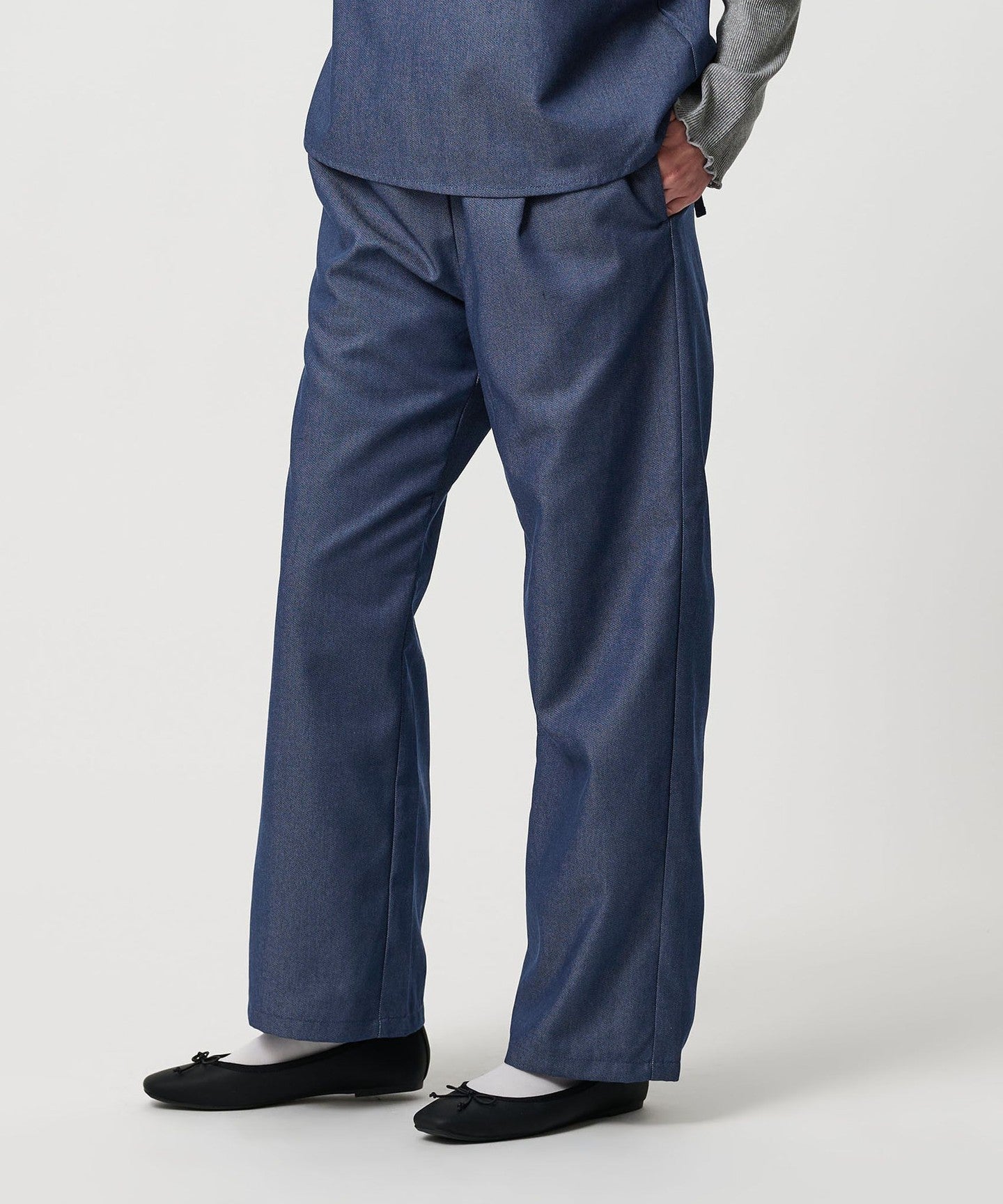 The pants have a straight, wide silhouette and are easy to wear, making them comfortable.