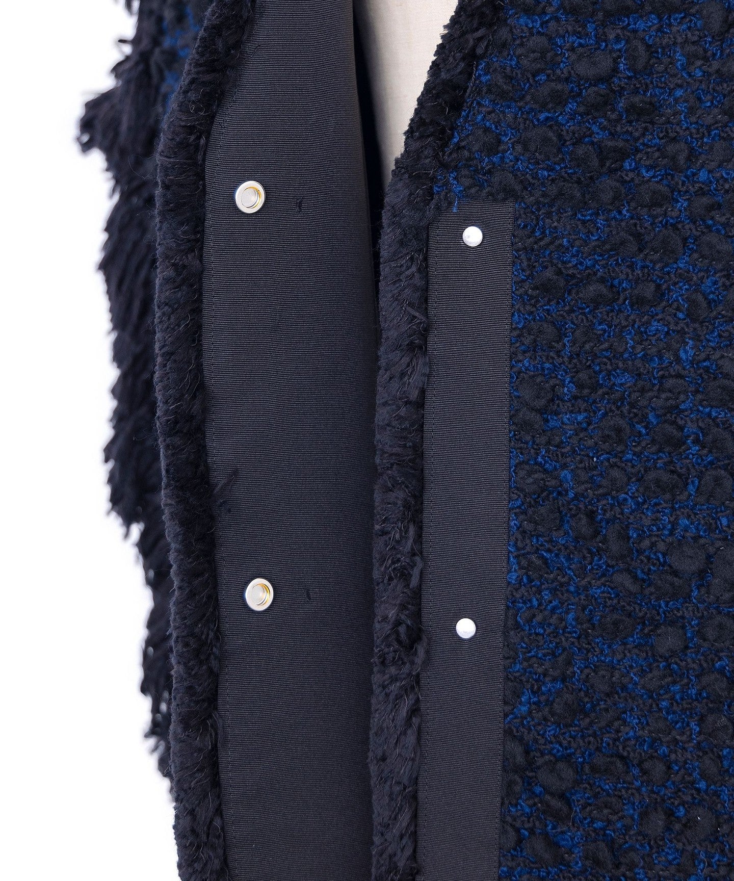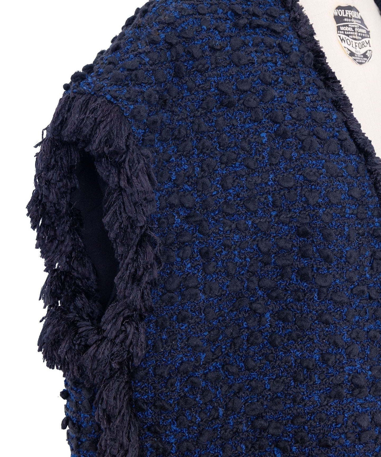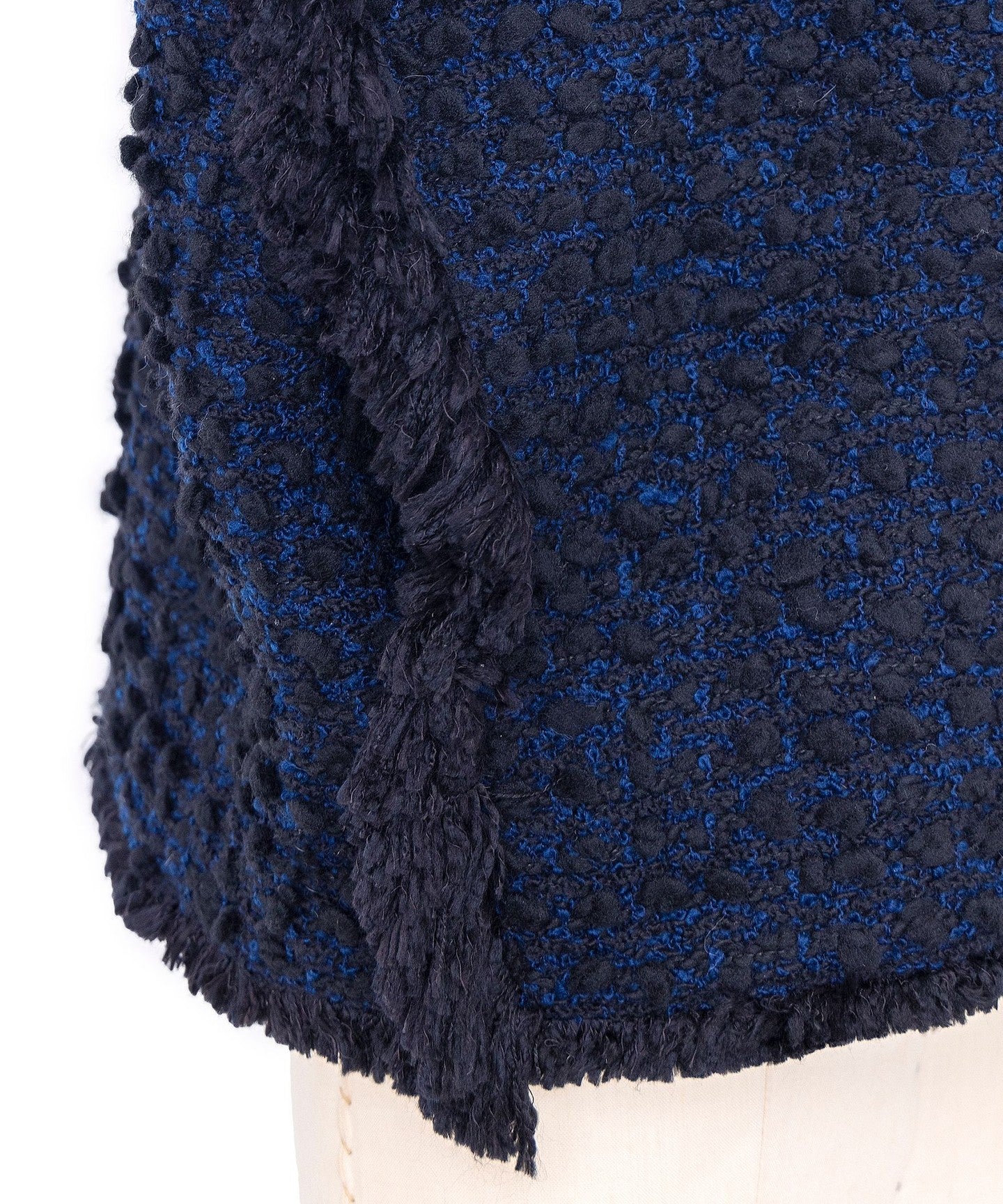 The back has a rounded cocoon silhouette, and the luxurious fringe trimming design makes this a truly eye-catching piece.