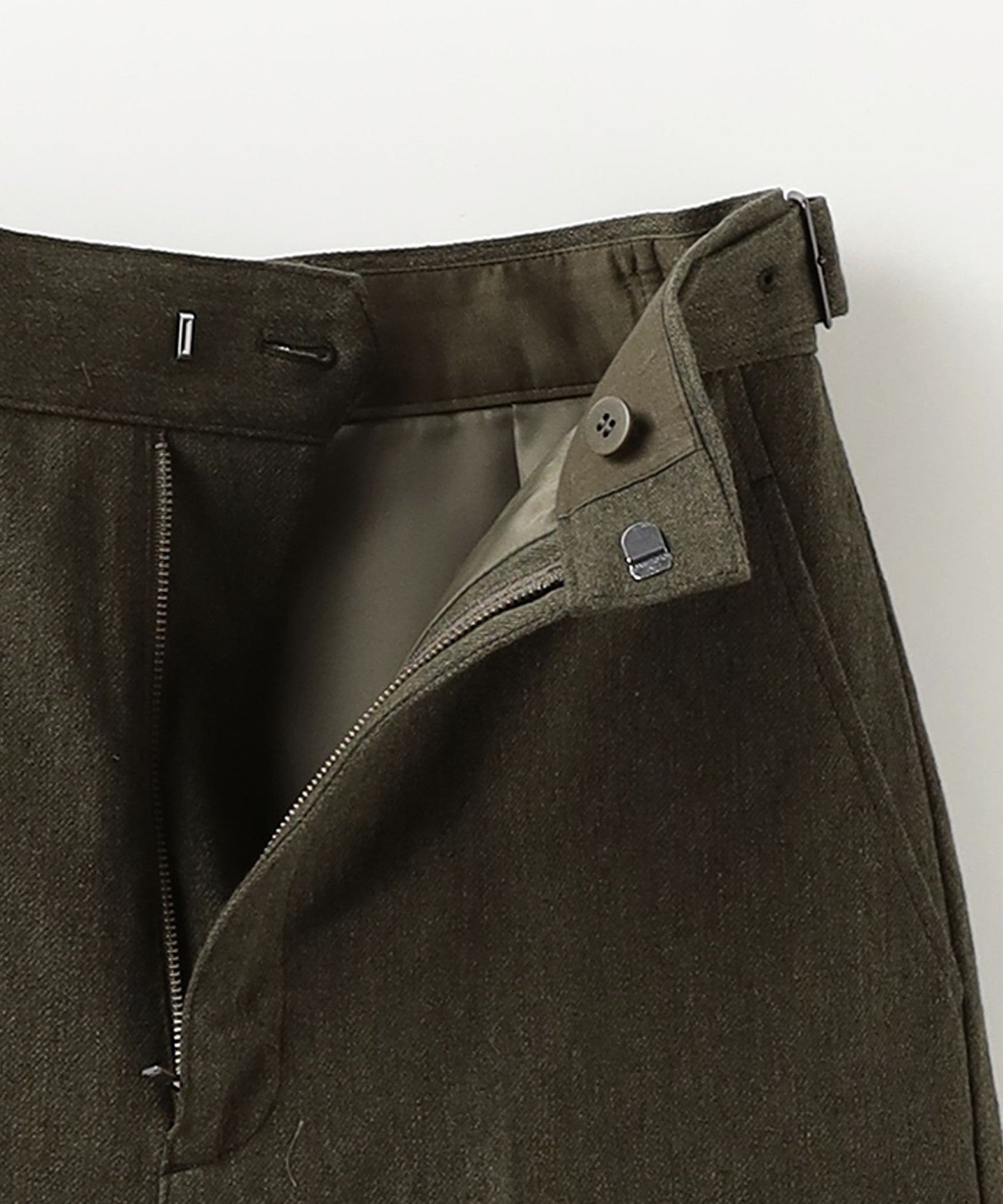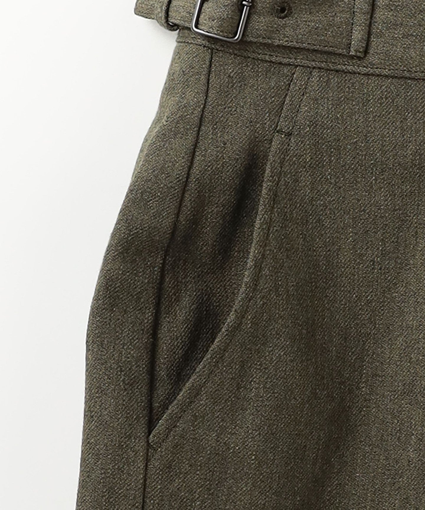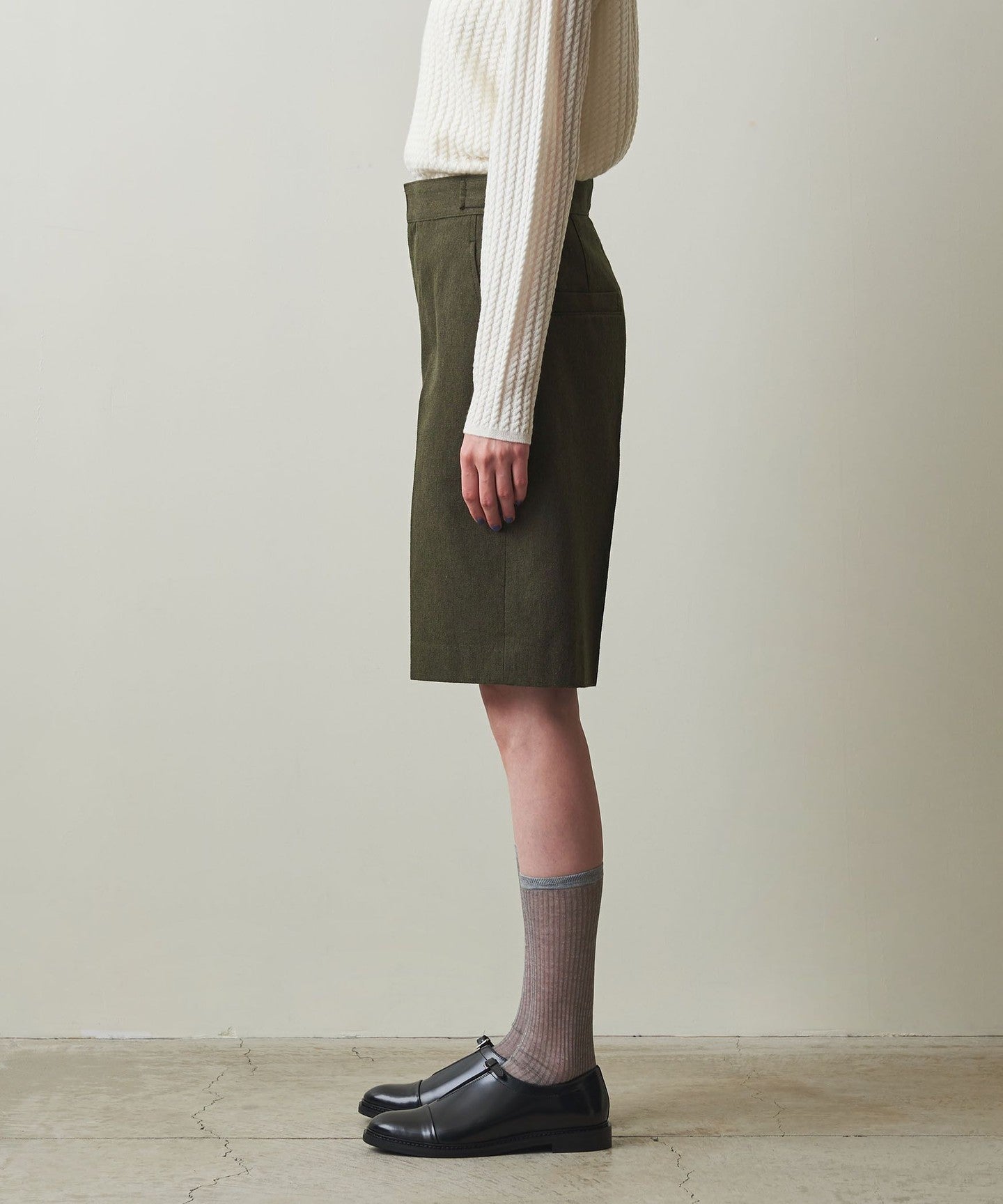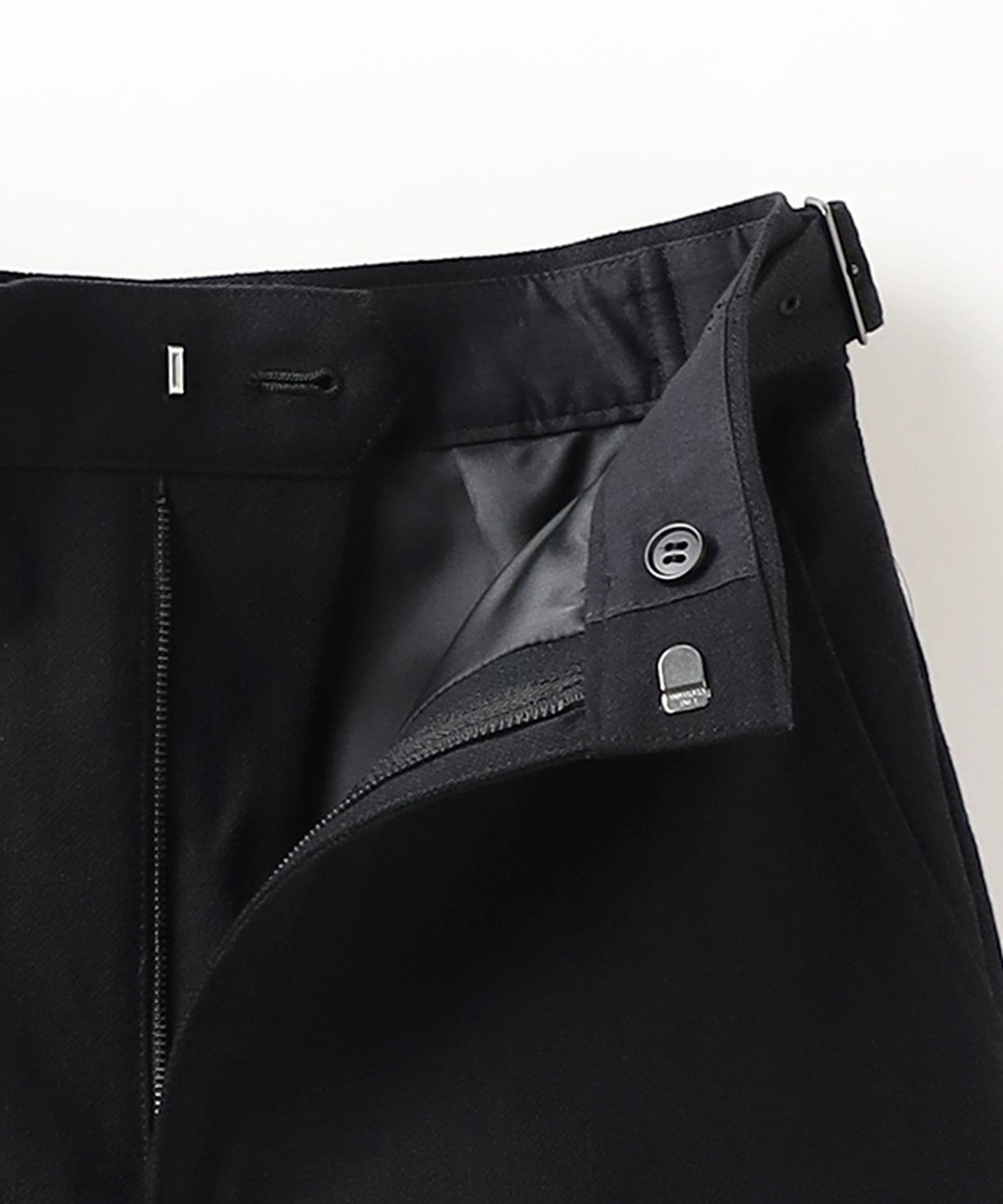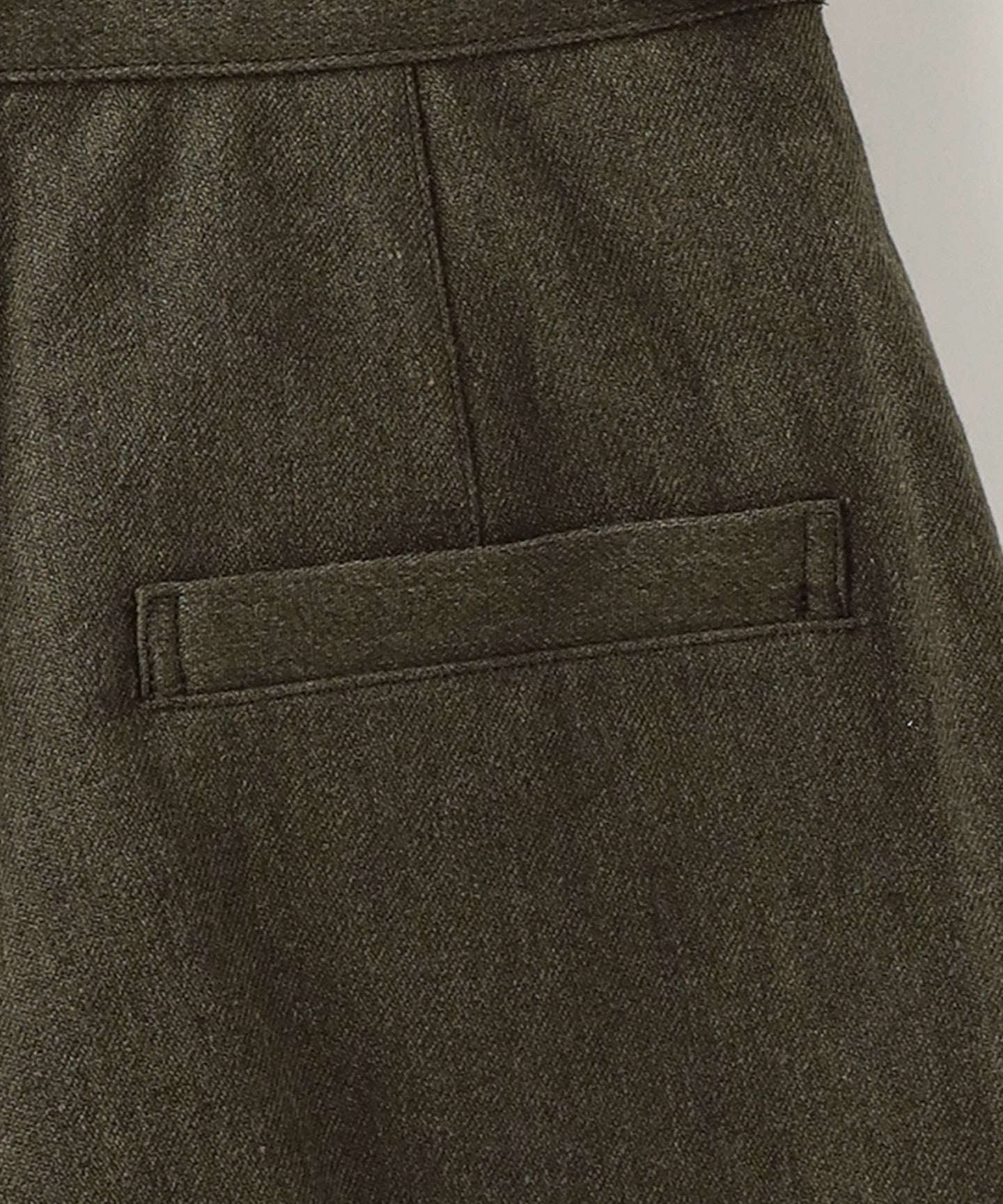 It can be worn as a set with a jacket made of the same material, and also pairs well with shirts, cut-and-sew tops, and knitwear, making it a highly versatile piece.