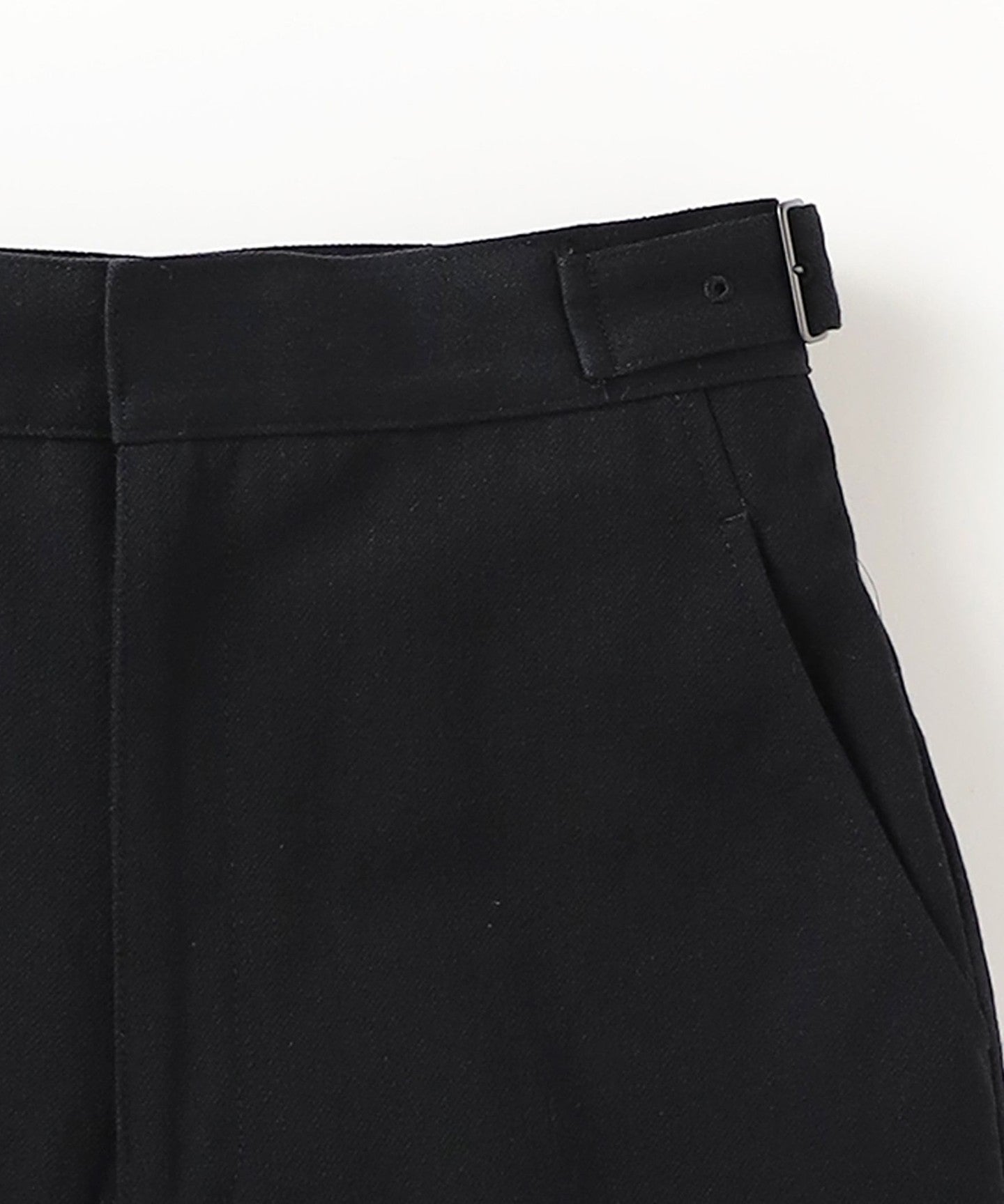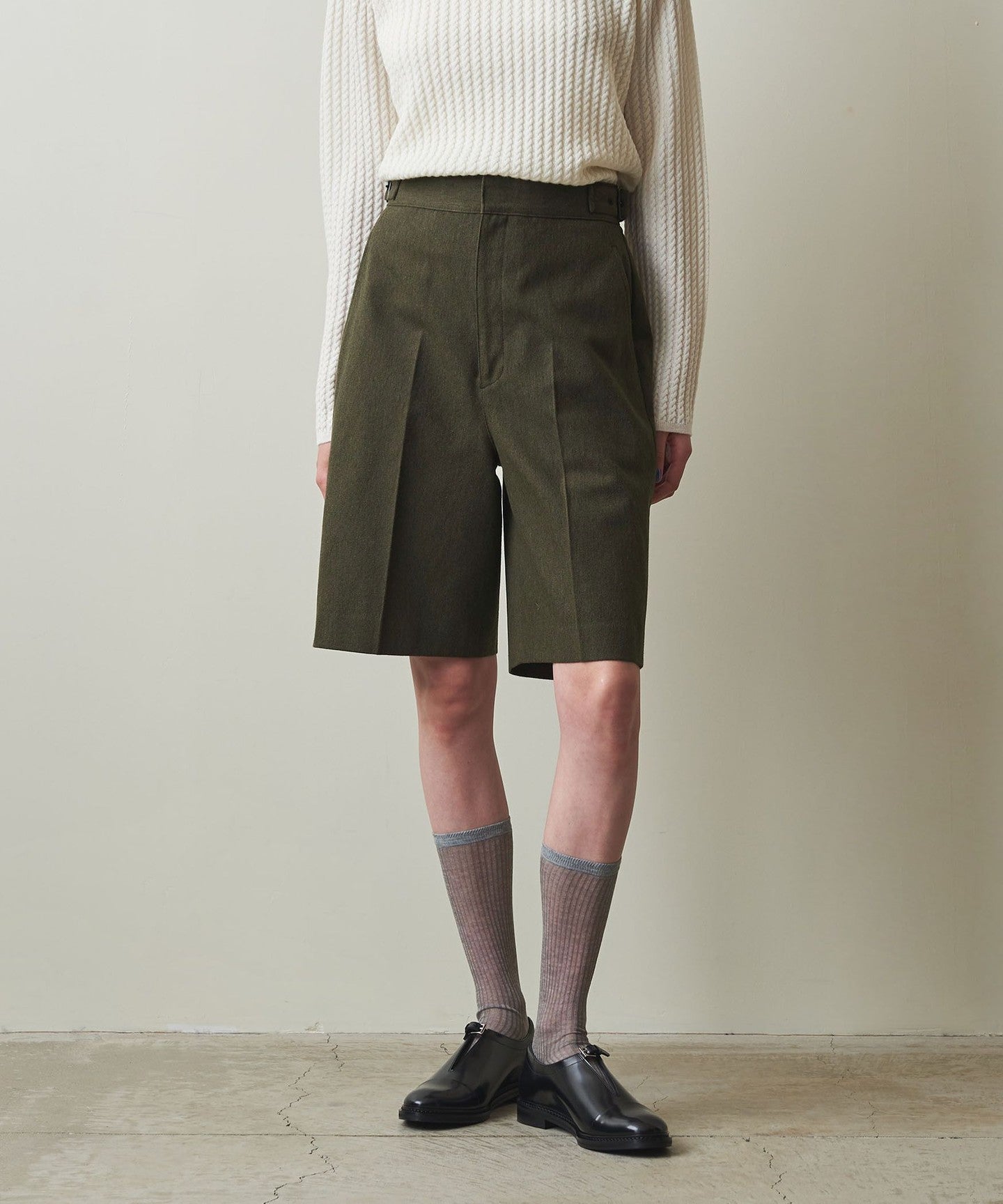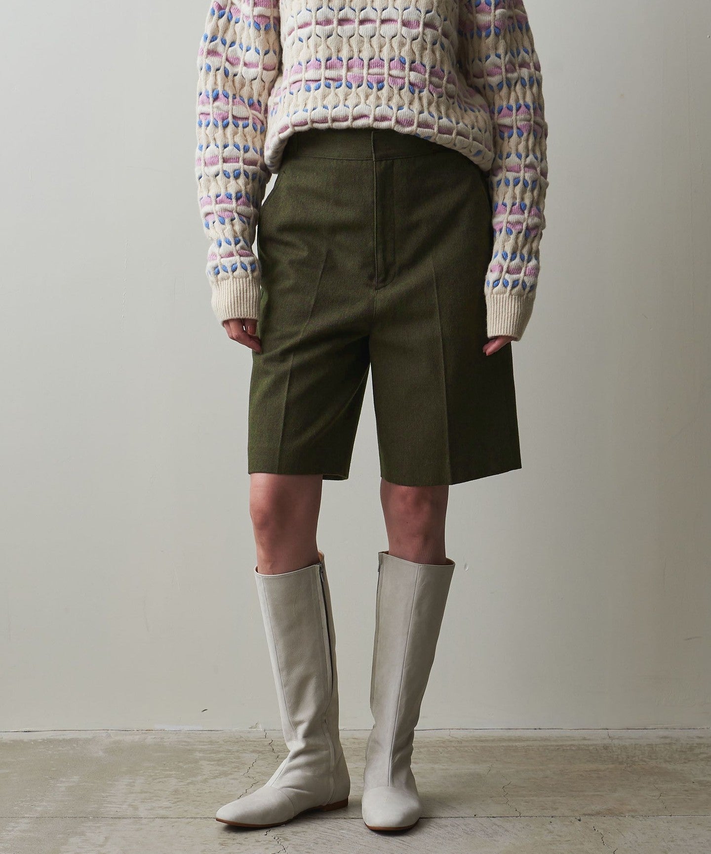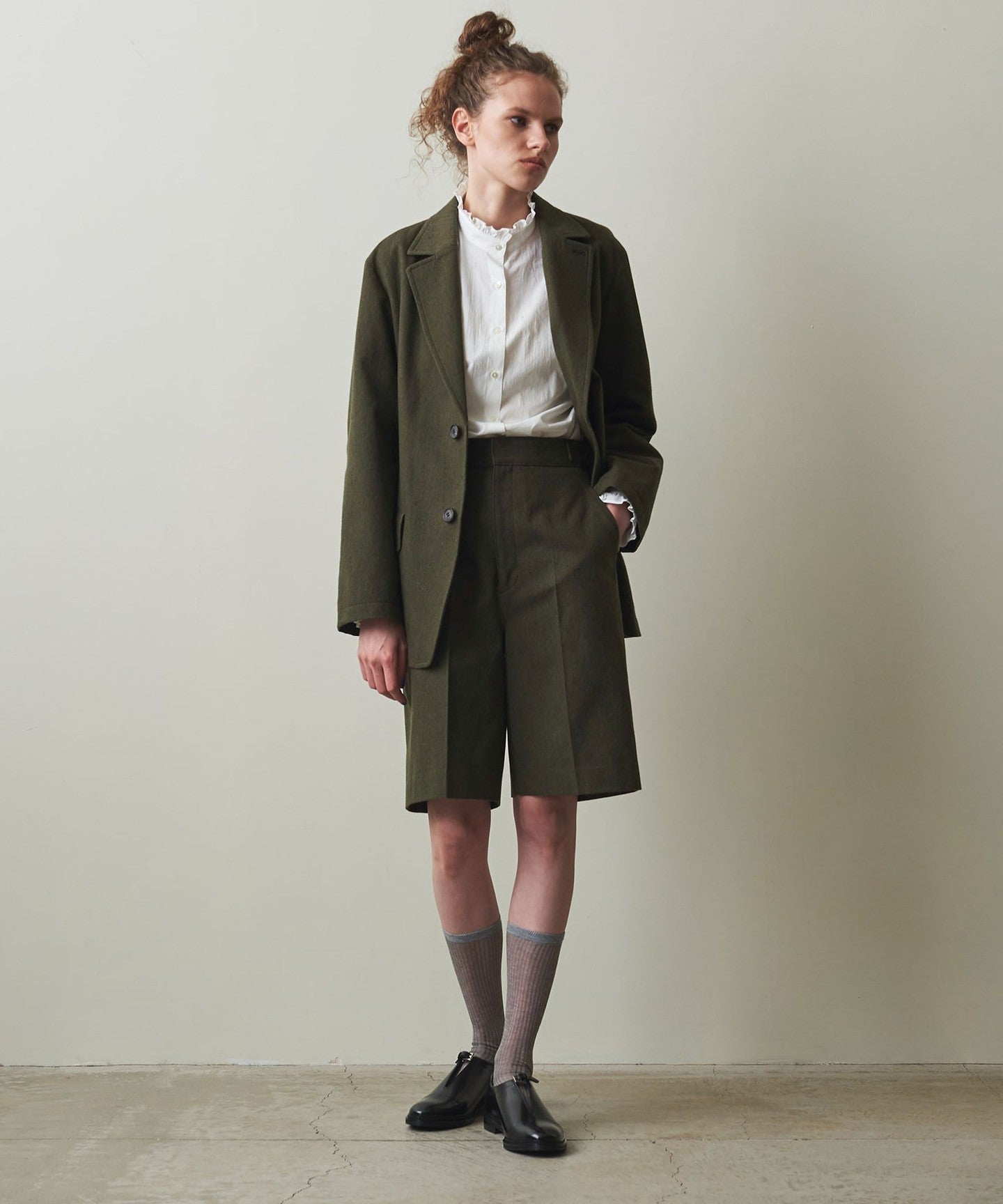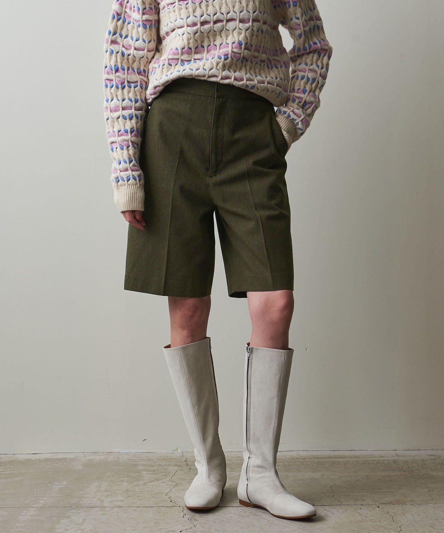 It can be worn as a set with a jacket made of the same material, and also pairs well with shirts, cut-and-sew tops, and knitwear, making it a highly versatile piece.