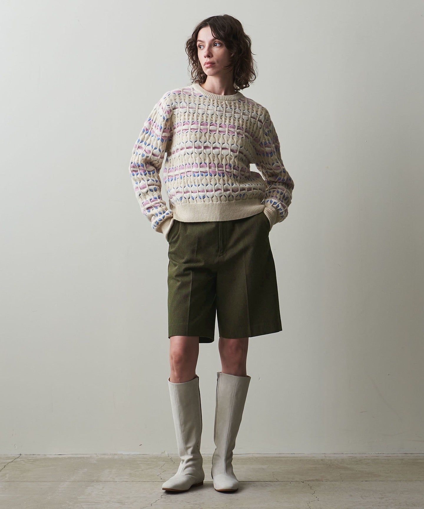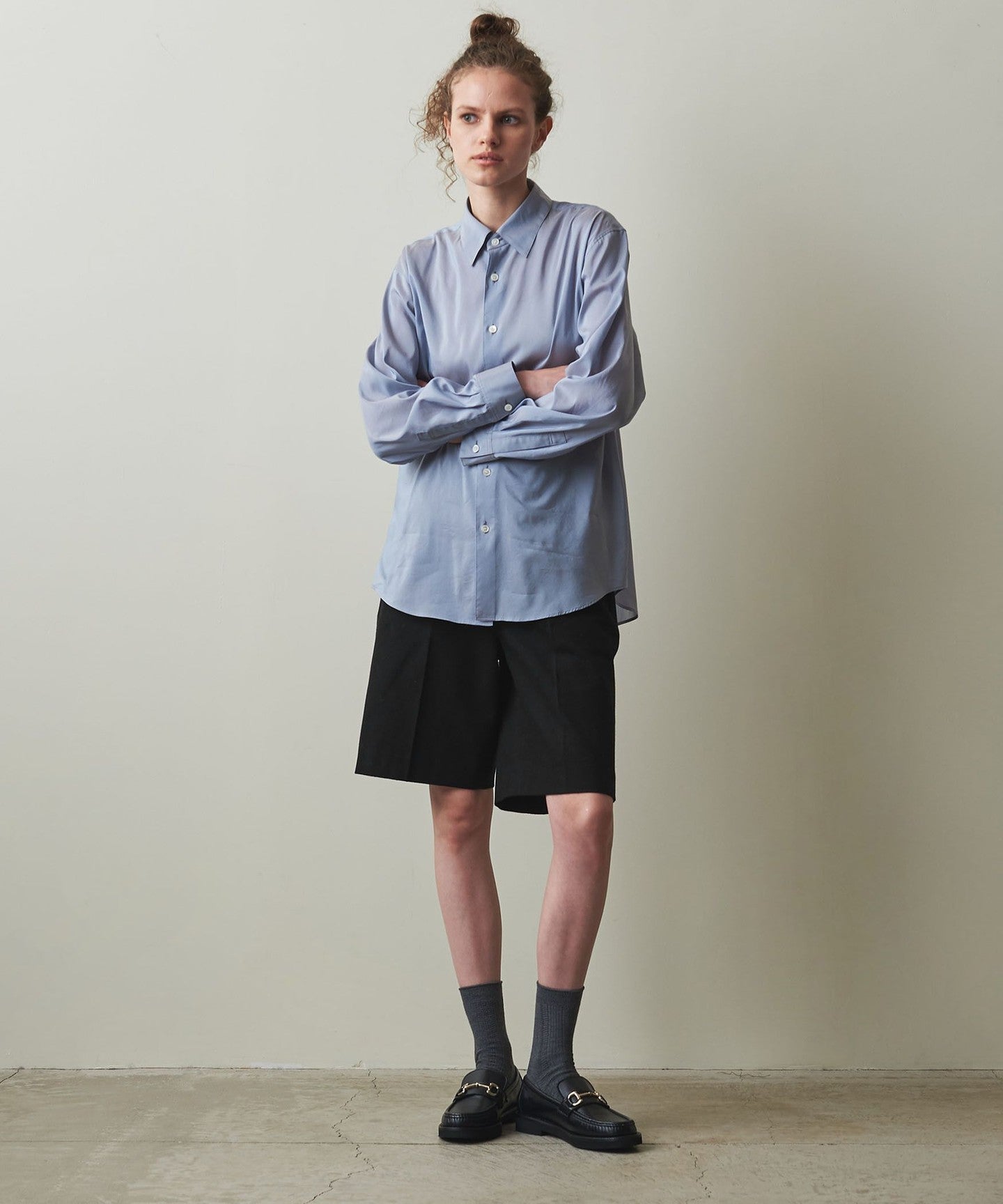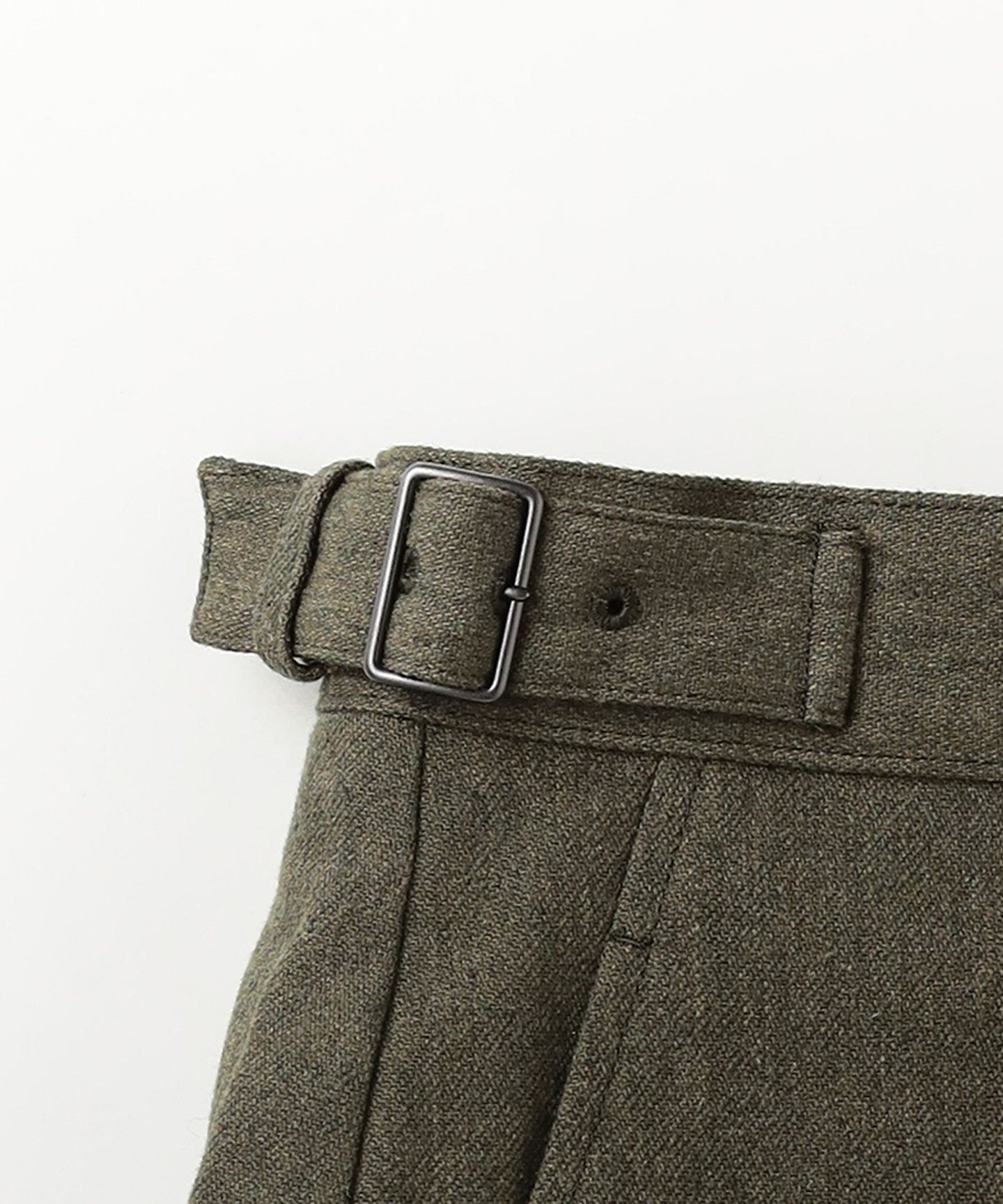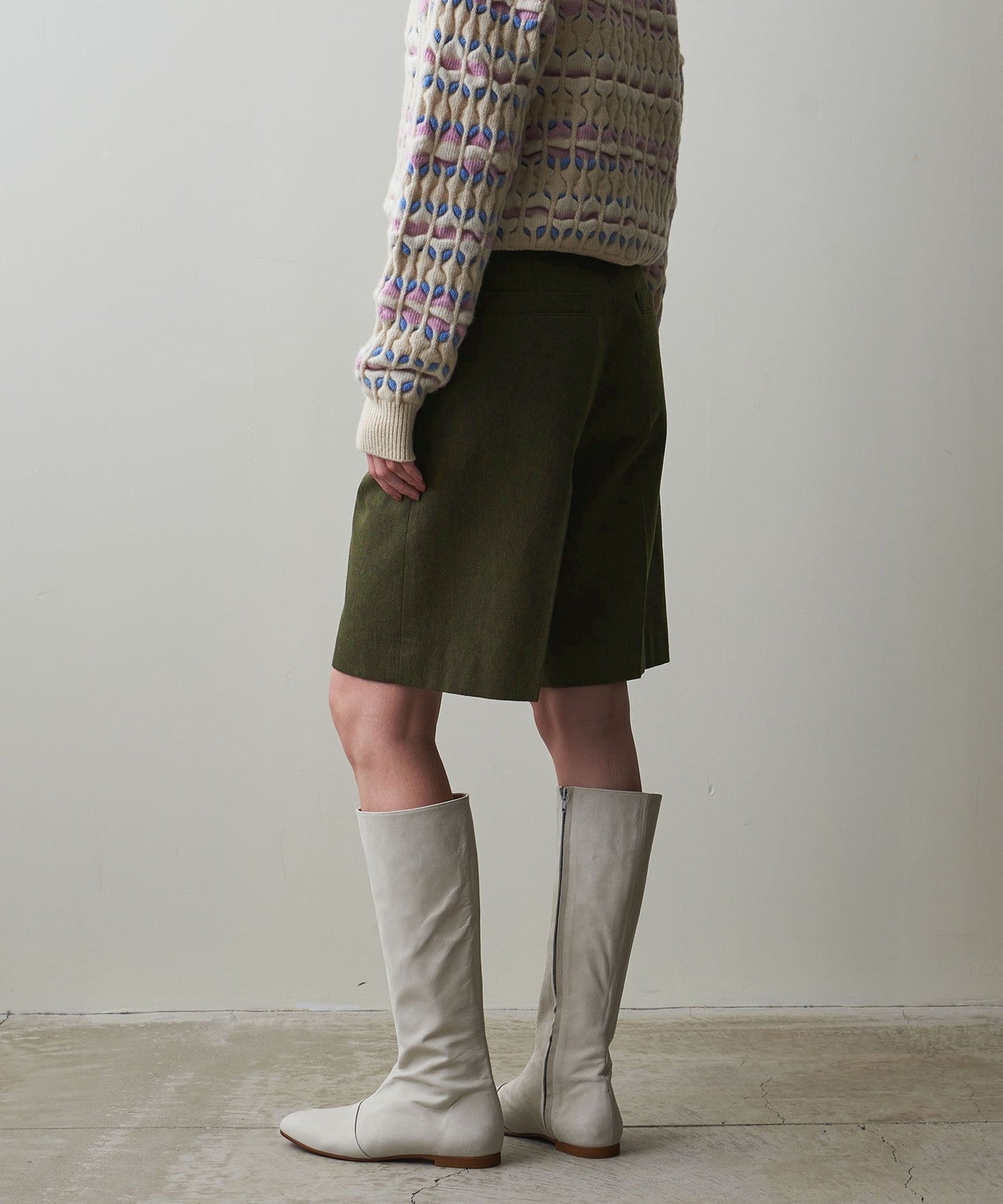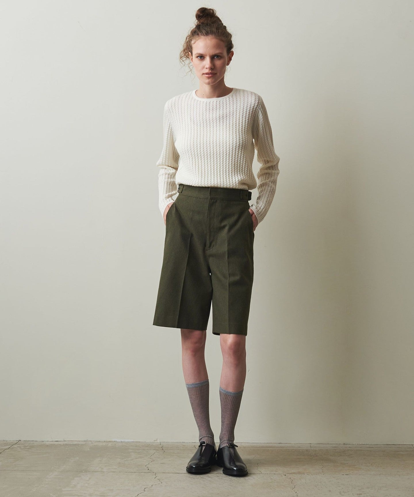 It can be worn as a set with a jacket made of the same material, and also pairs well with shirts, cut-and-sew tops, and knitwear, making it a highly versatile piece.