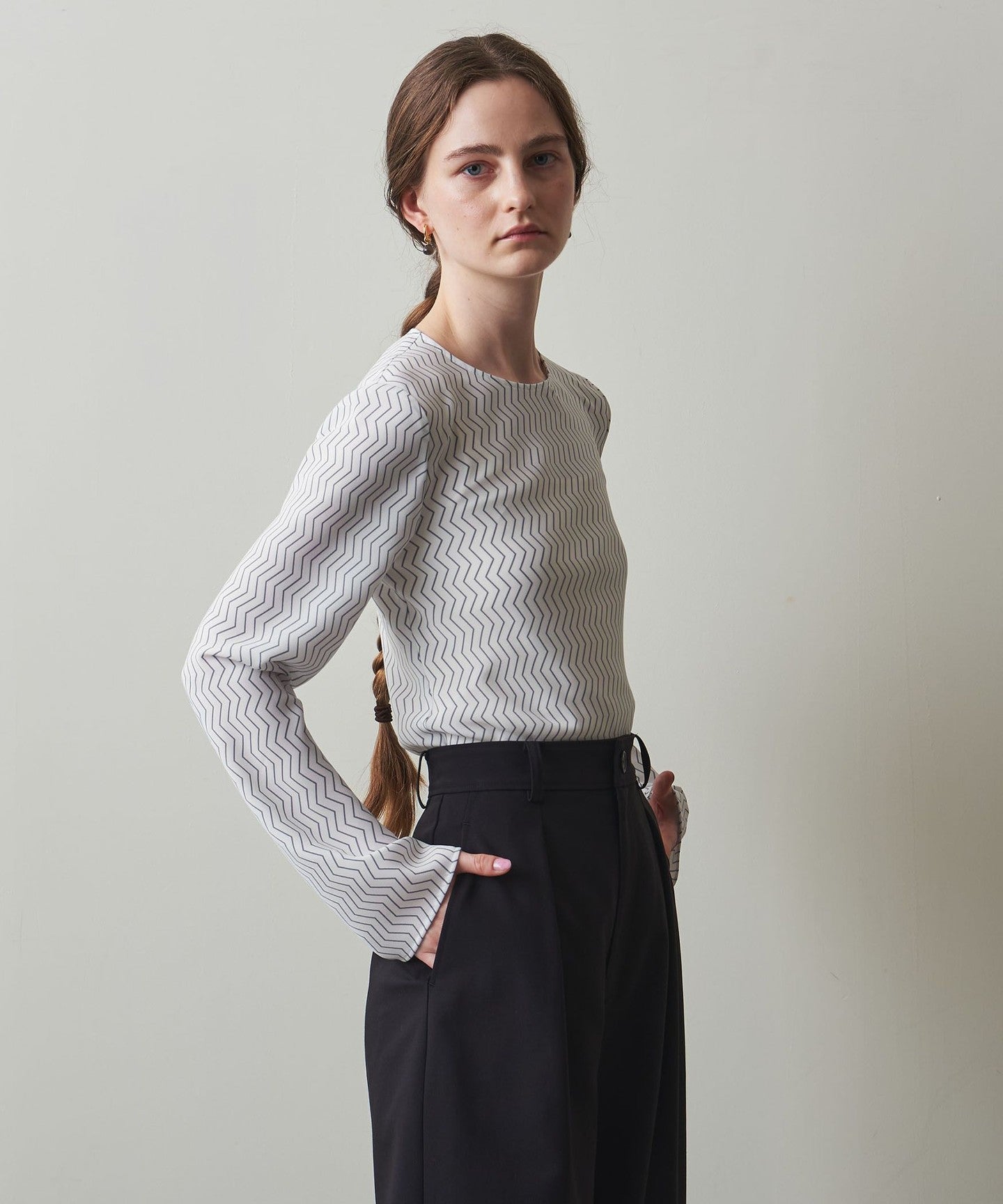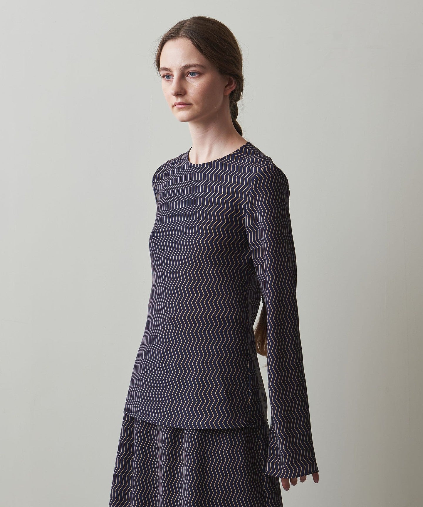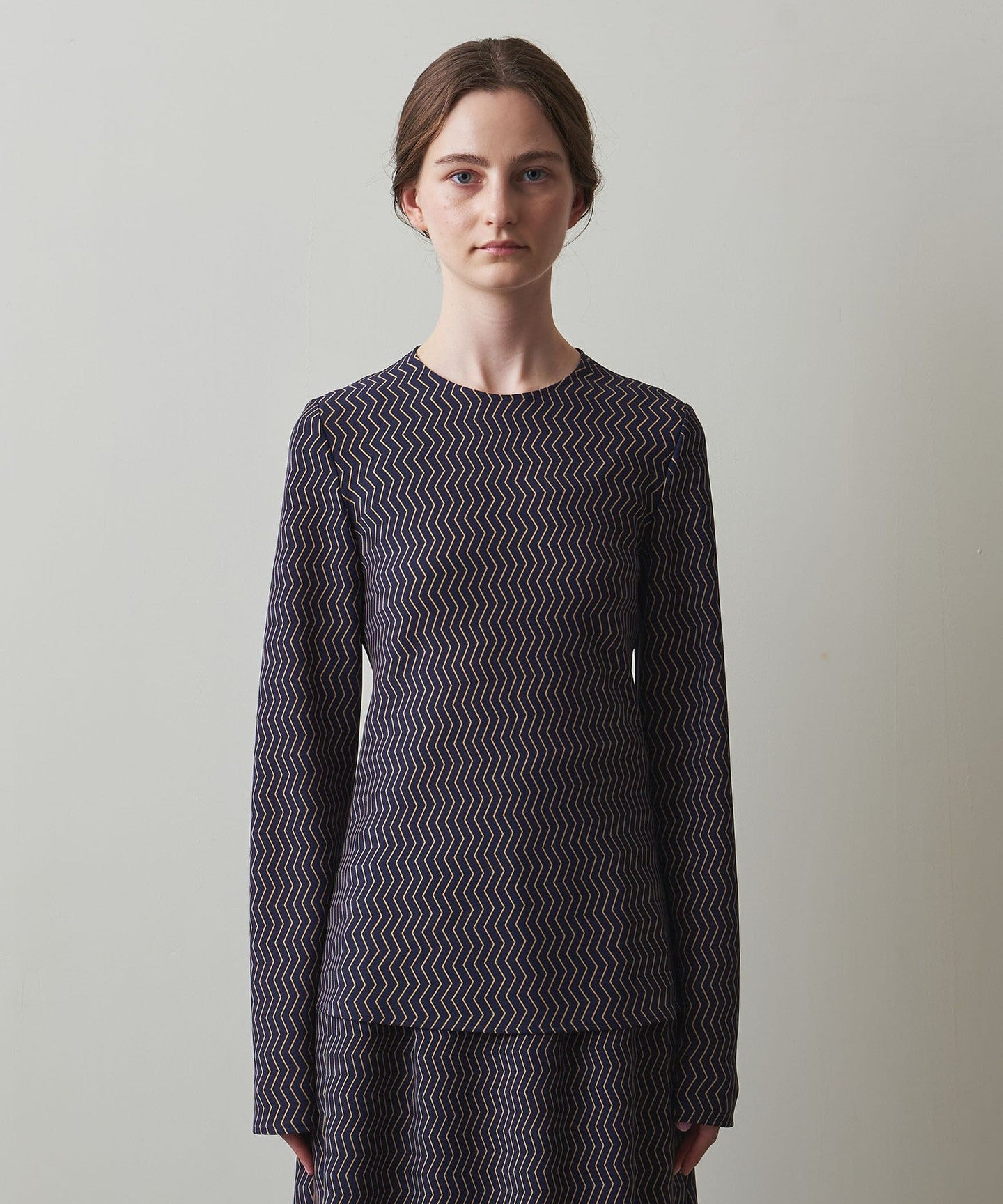 A blouse with an original zigzag print that gives it a retro feel.