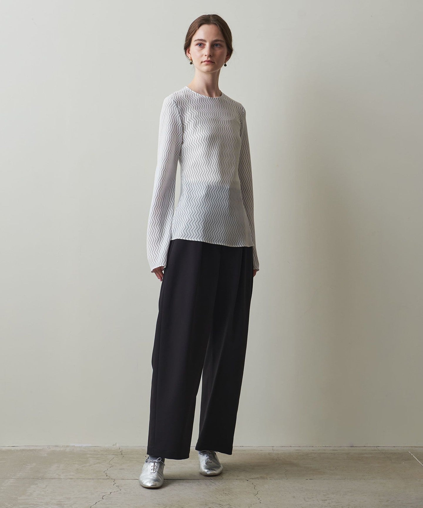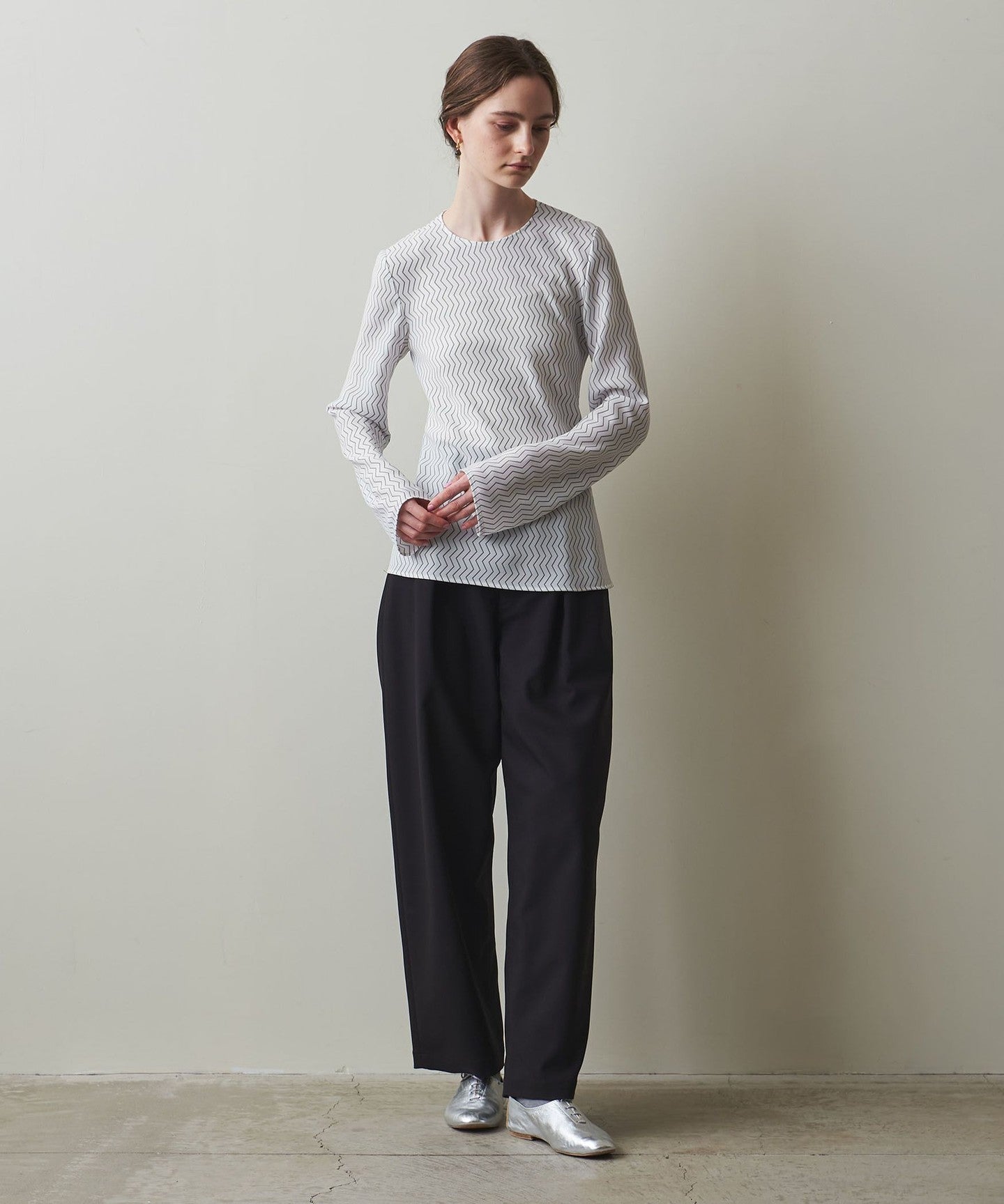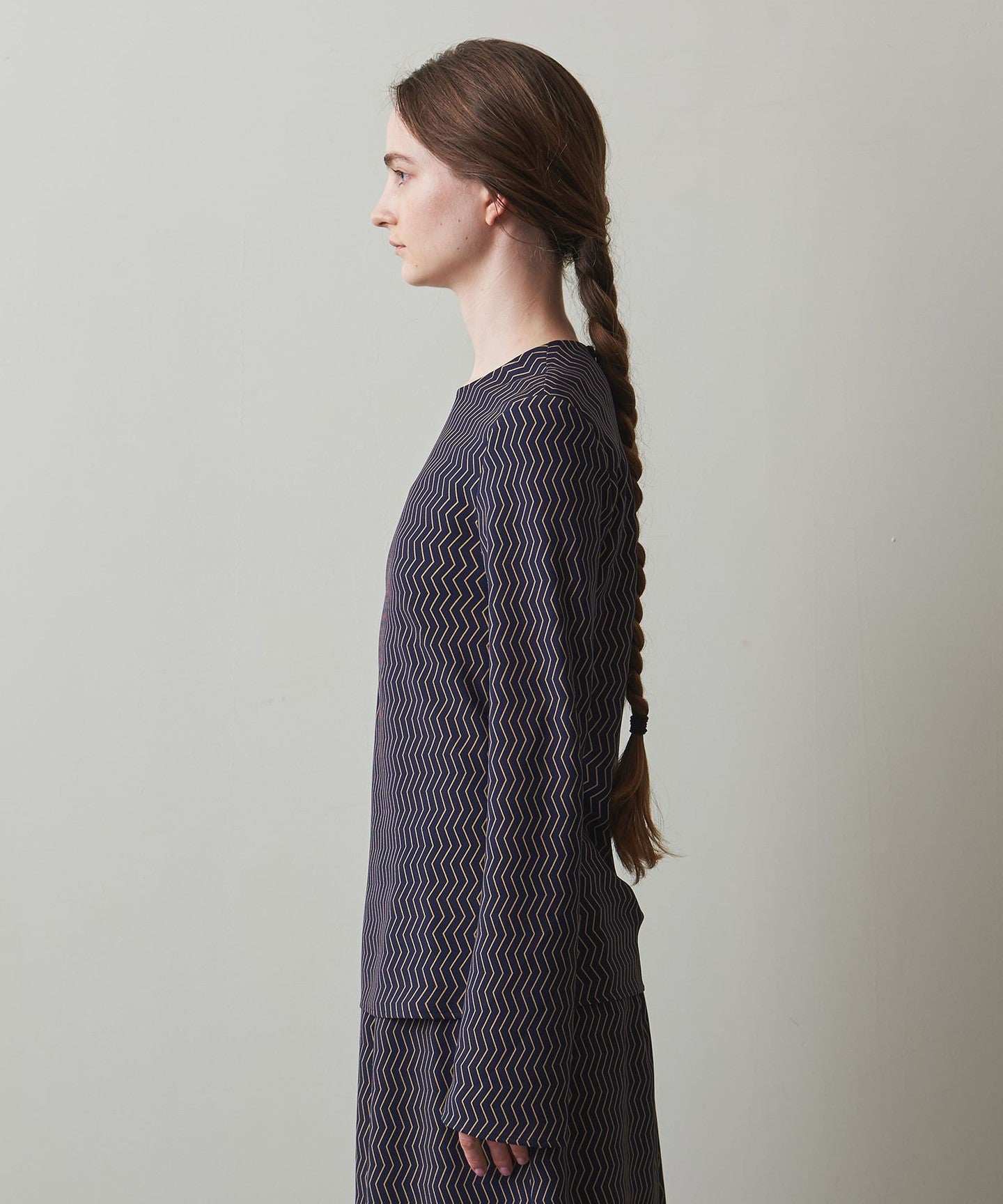 A blouse with an original zigzag print that gives it a retro feel.