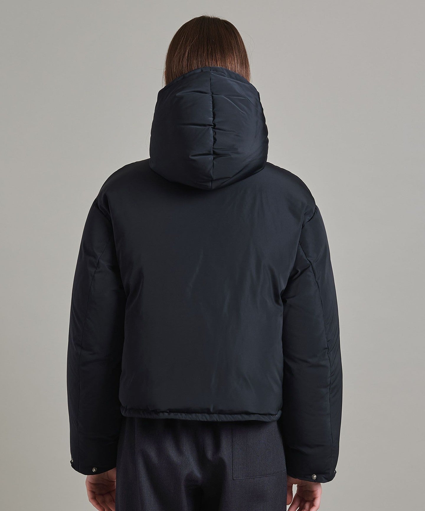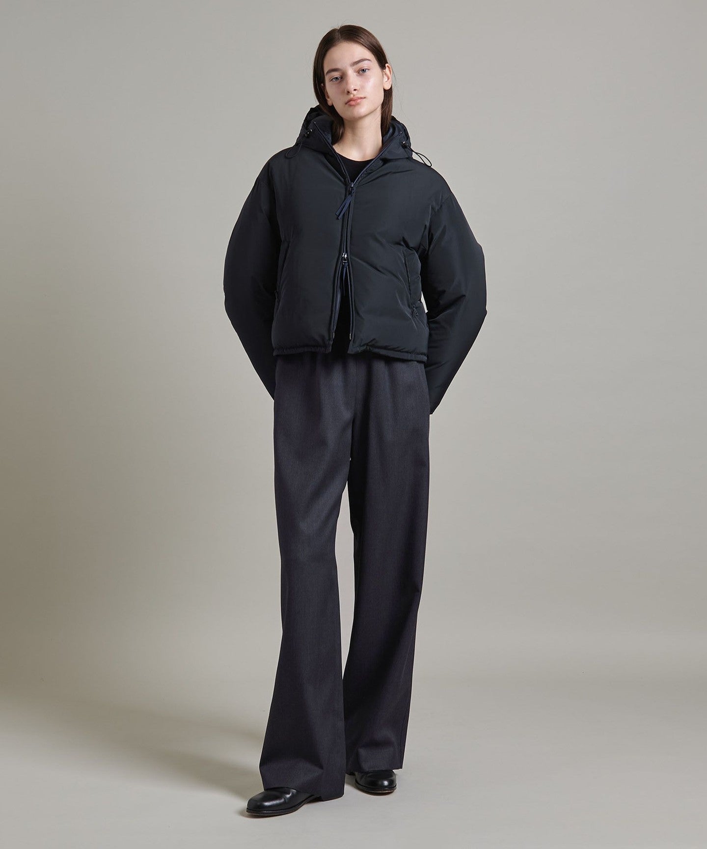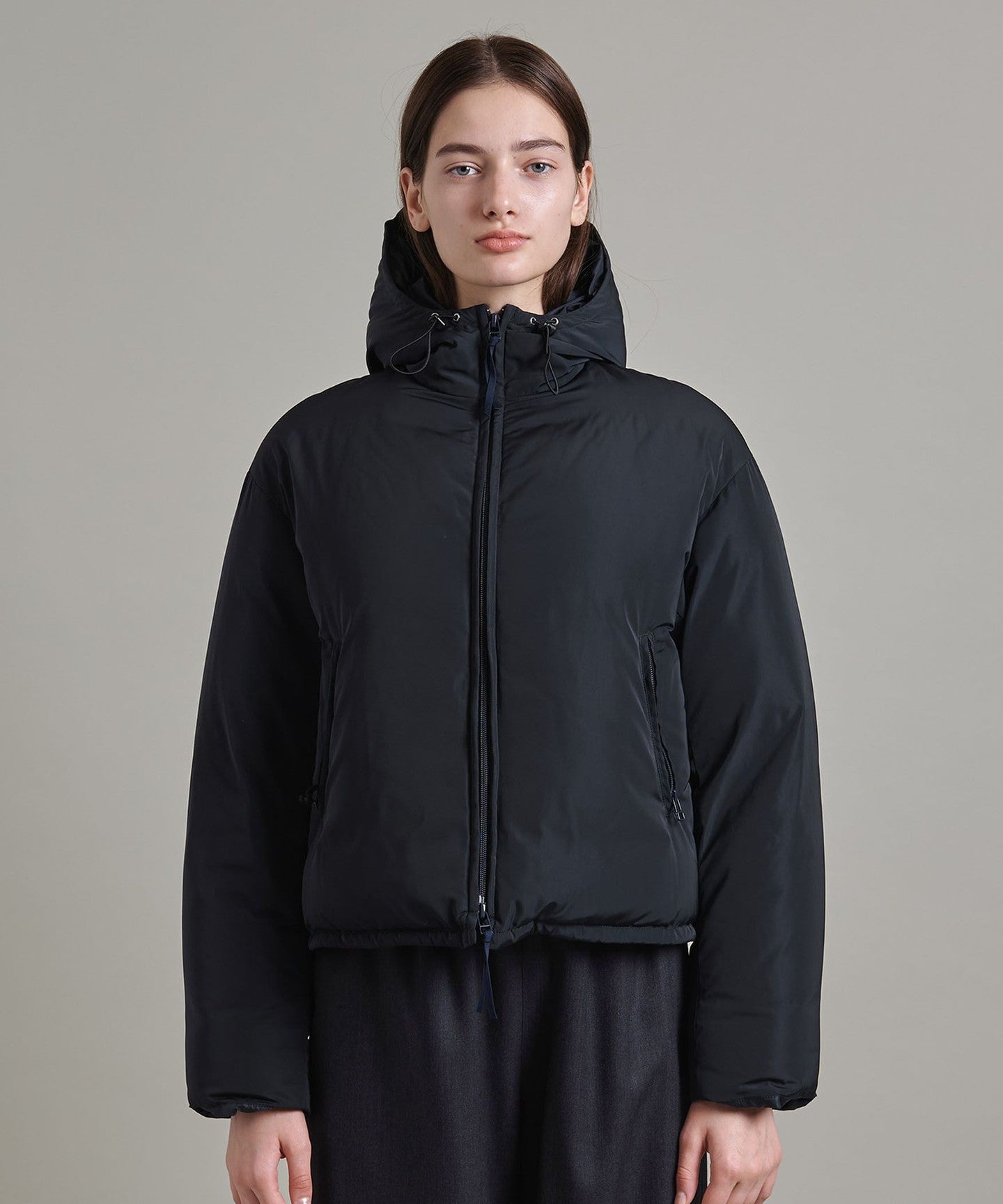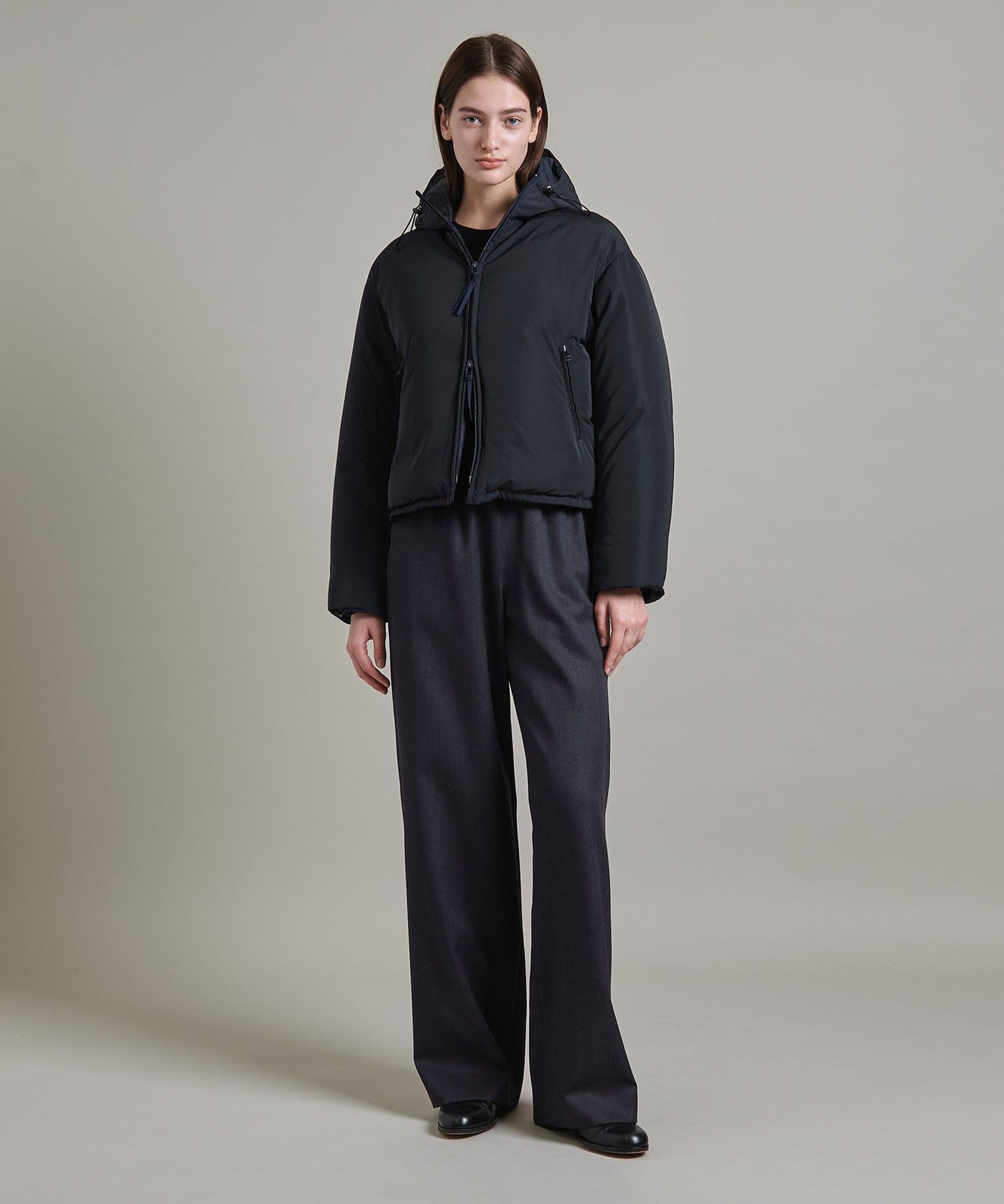 It features a reverse zipper, a drawstring hem, and snap buttons on the cuffs, so you can enjoy arranging your outfit in various ways.