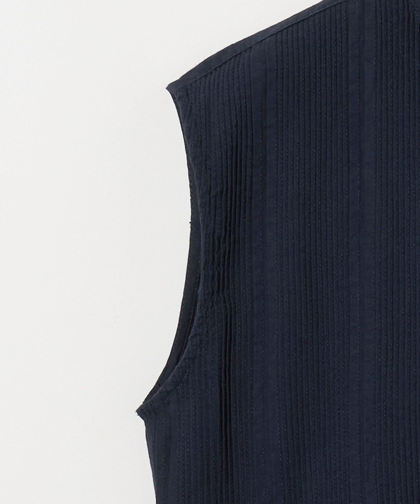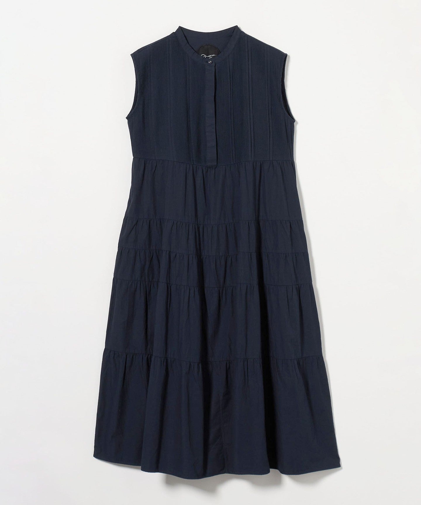 This is a special order sleeveless tiered dress made with luxurious fabric and carefully handcrafted pin tucks.