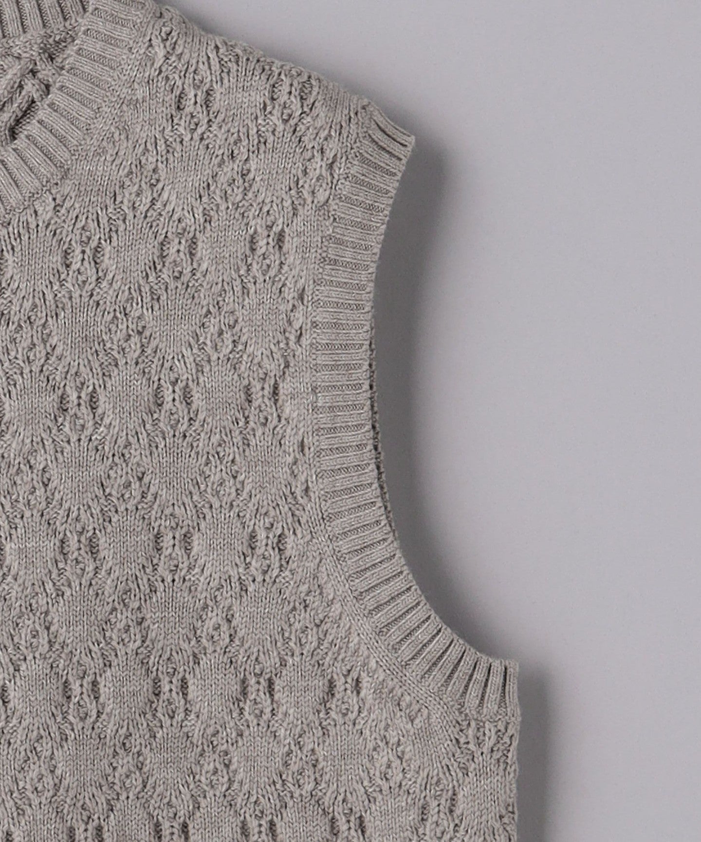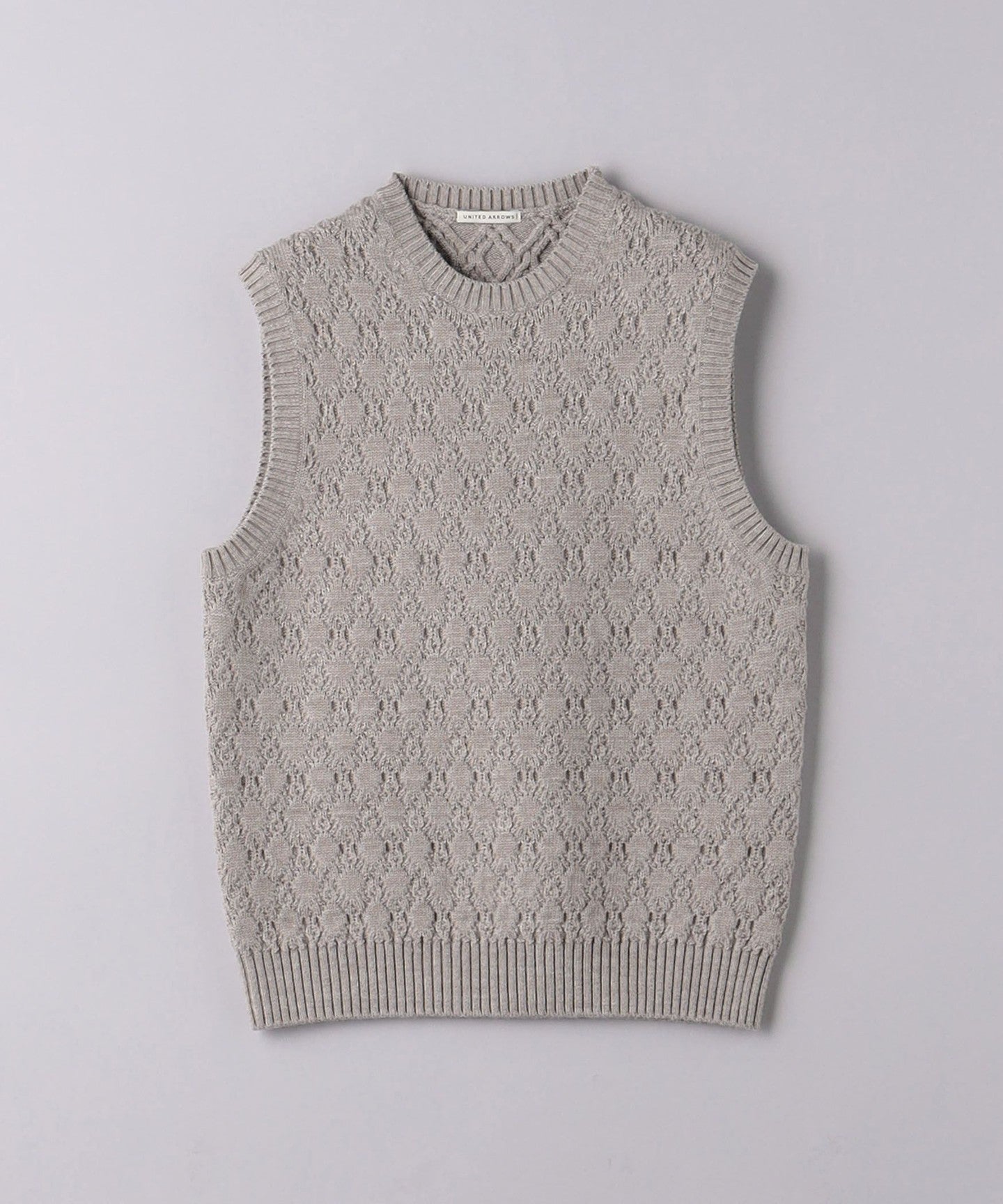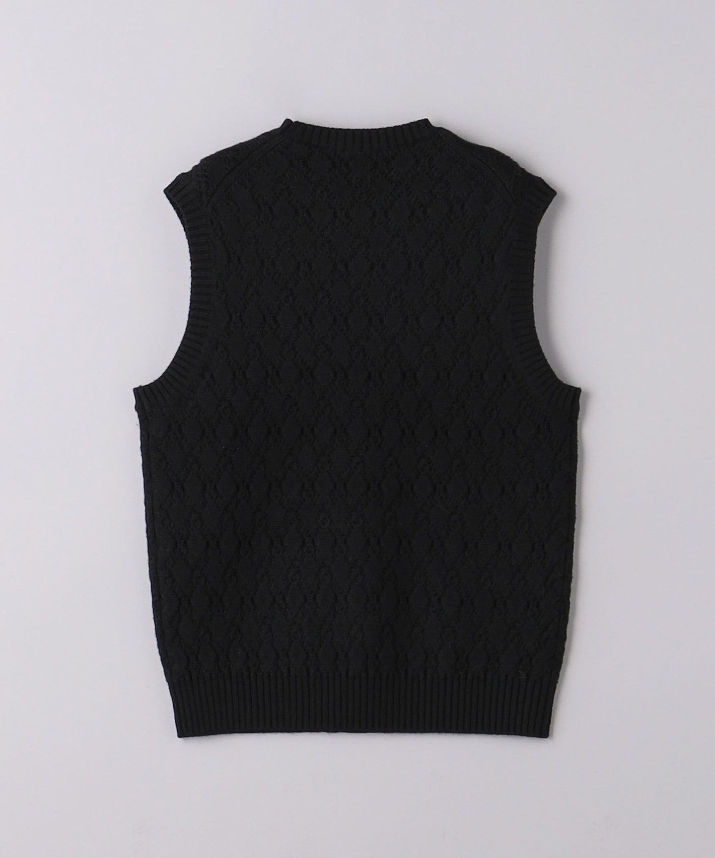 A crew neck vest featuring a shadow argyle-like knit design.