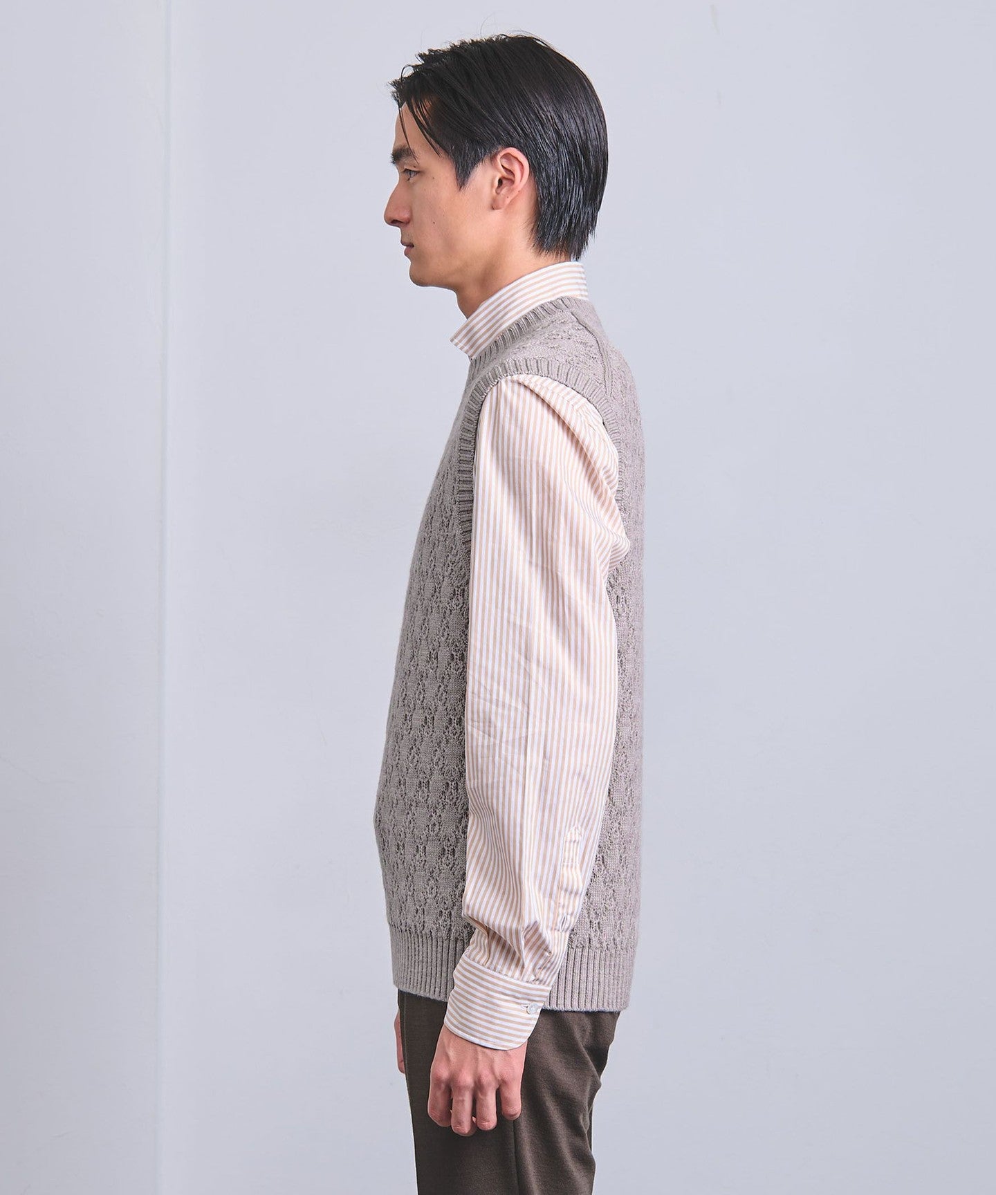 This is a recommended item to wear as an inner layer under jackets and outerwear, as well as for layered styling with cut-and-sew tops and denim shirts.