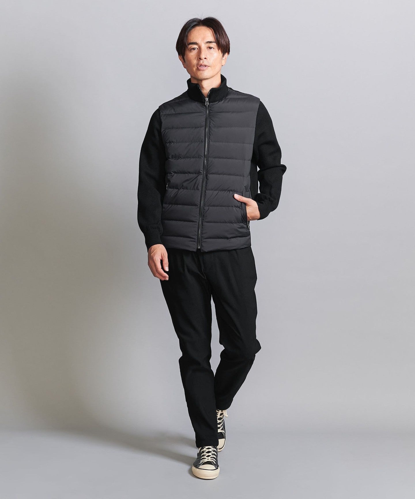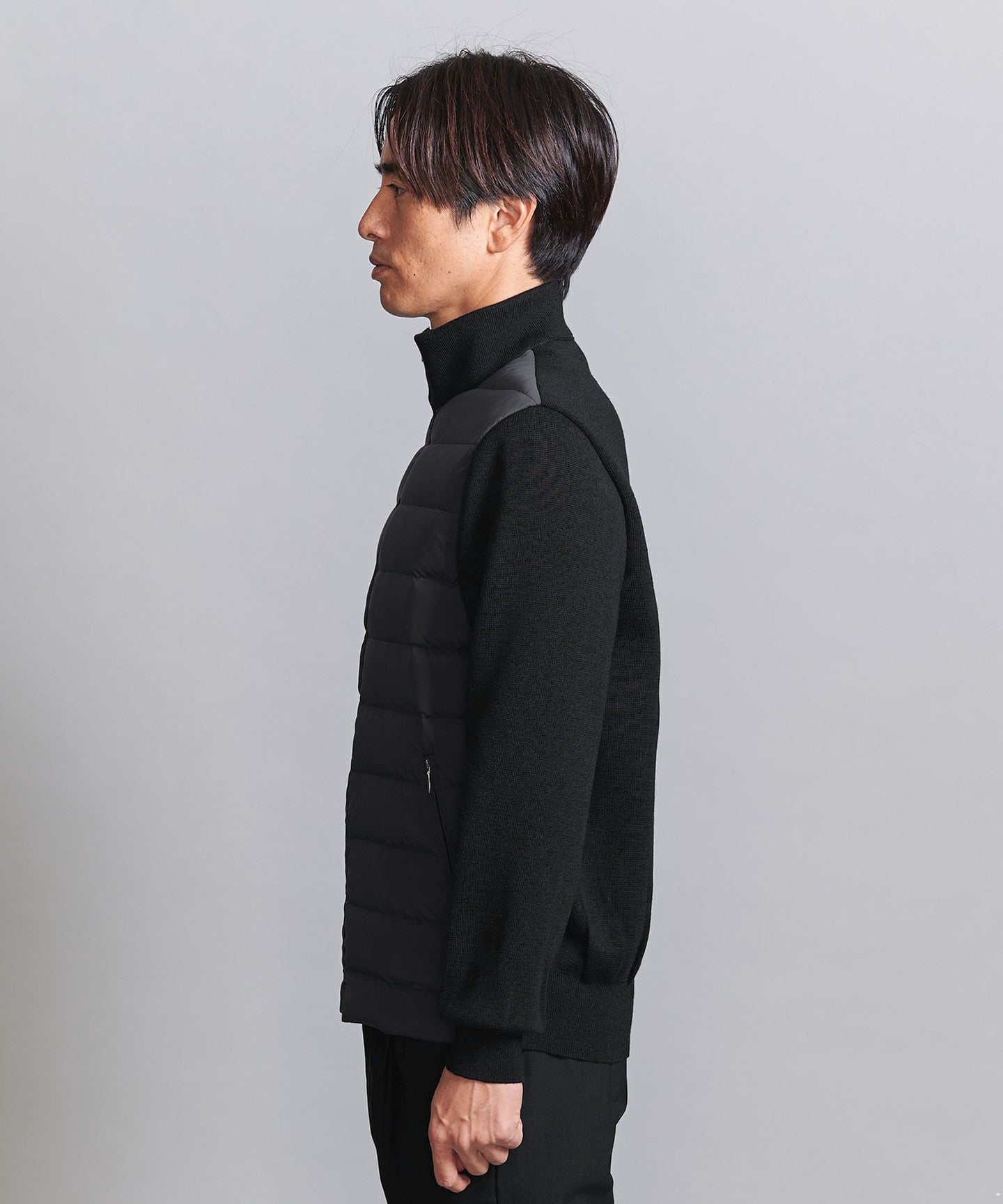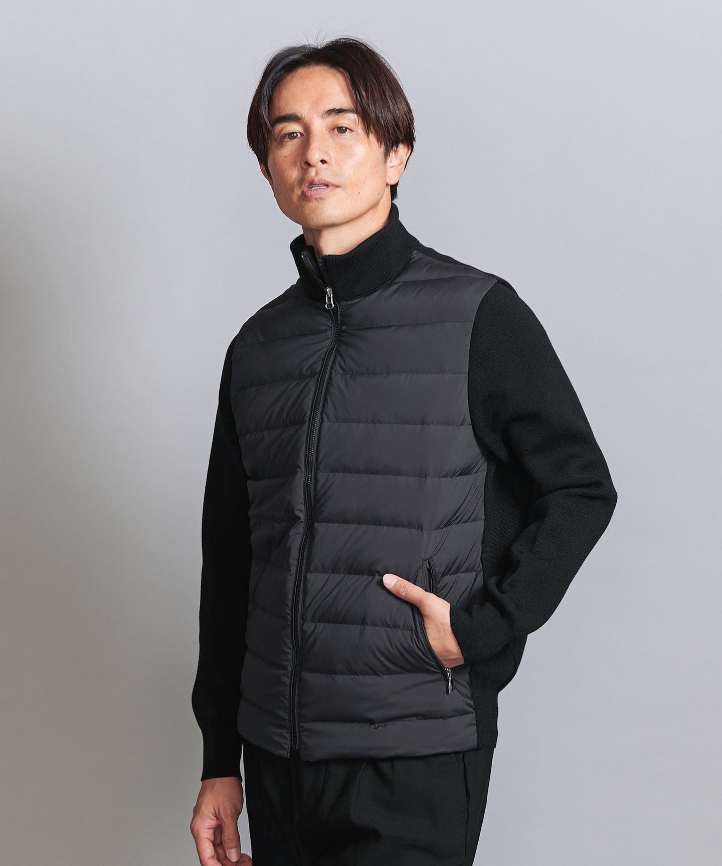 A knit combination down jacket made for everyday use in town.