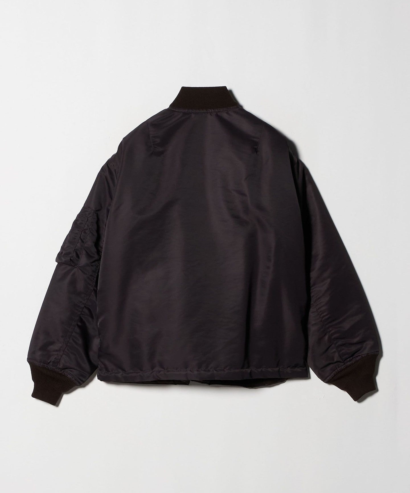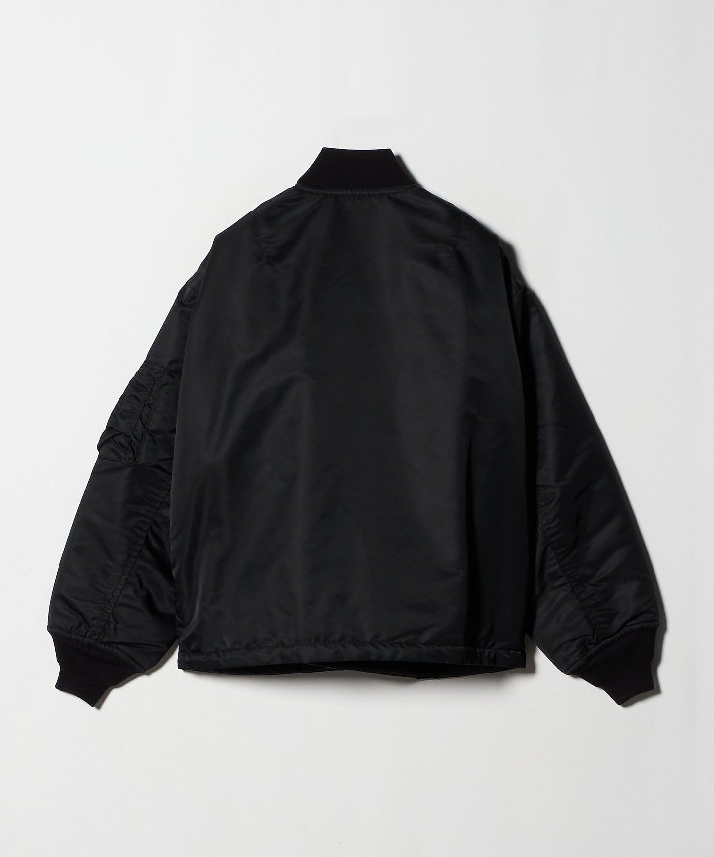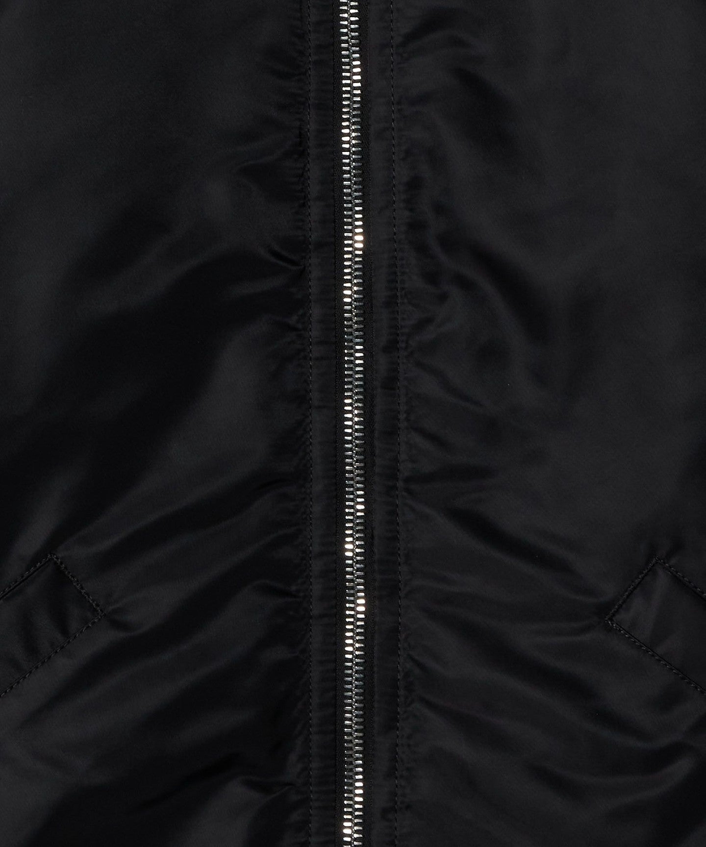 This flight jacket is crafted from nylon twill by OLMETEX, a premium Italian synthetic fiber manufacturer. Based on the MA-1, it retains traditional details like seamless circular knit ribbing and arm pockets, while elevating it to a modern, urban feel. The high-quality nylon fibers and sophisticated finishing techniques result in a dense, thick construction, yet soft, elegant, and luxurious finish. The zippers are made by the Italian manufacturer RACCAGNI, and the sophisticated balance of the moderate oversized fit and tight ribbing enhances the fashionable mood.