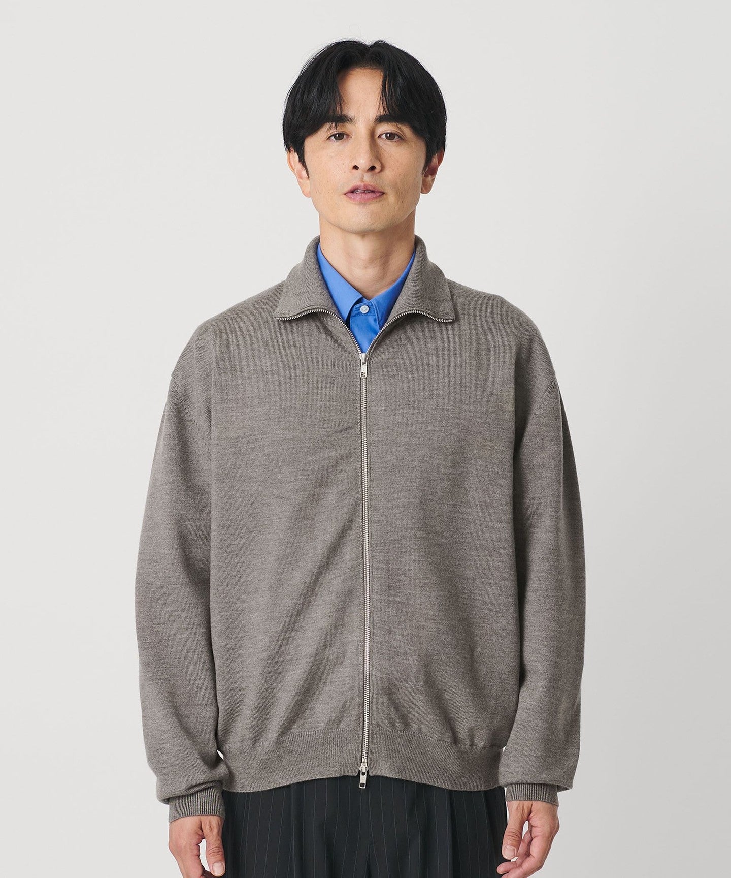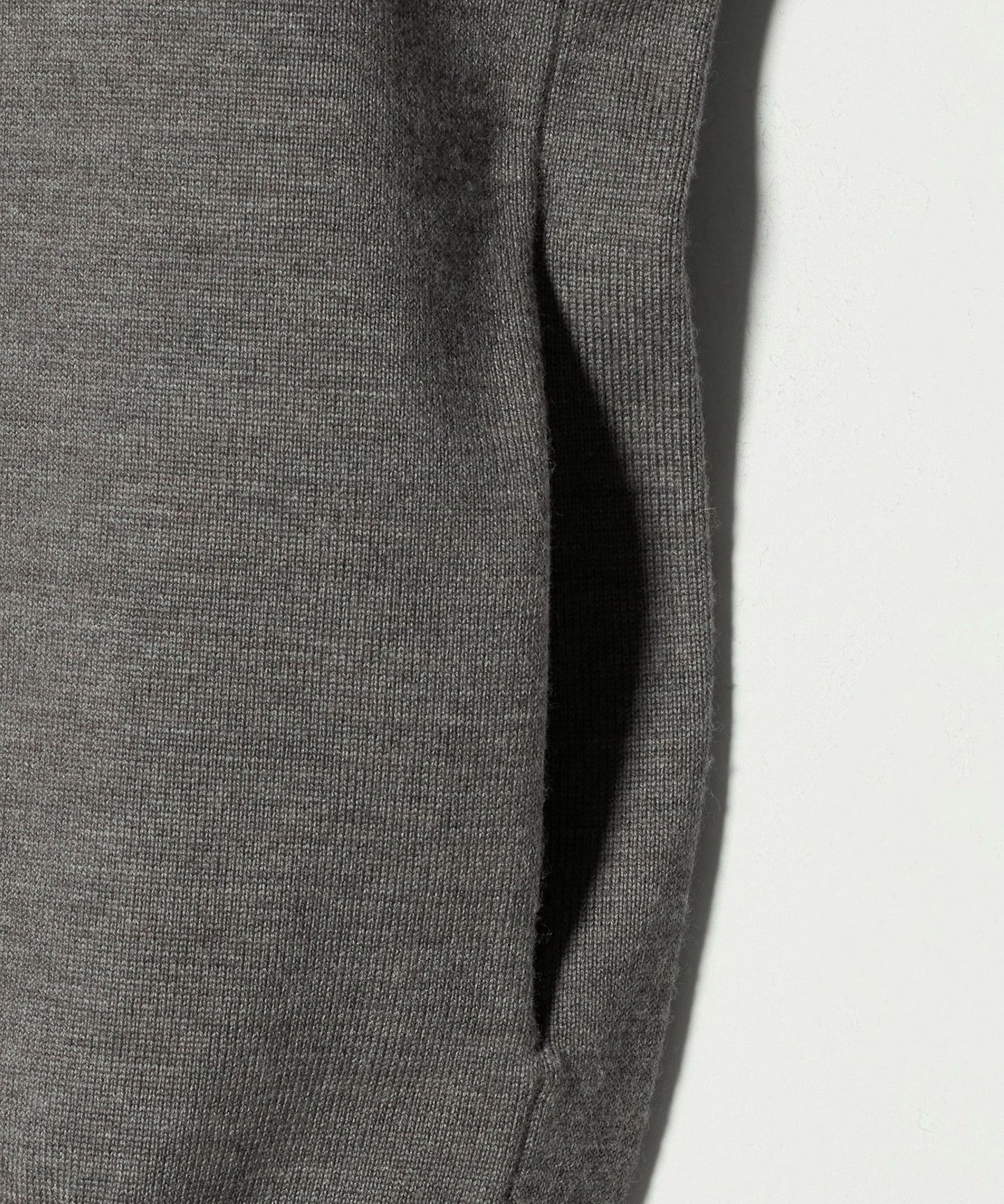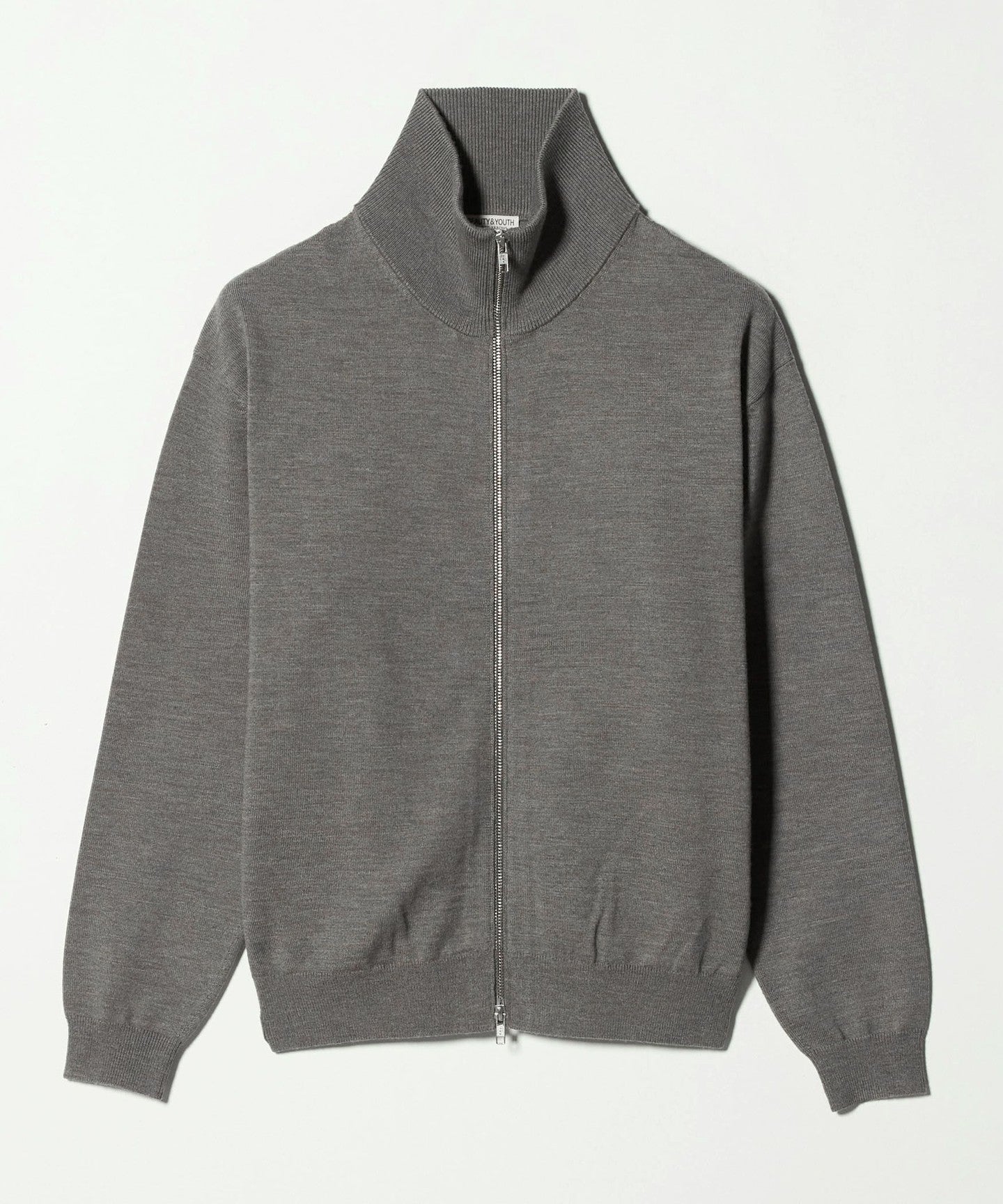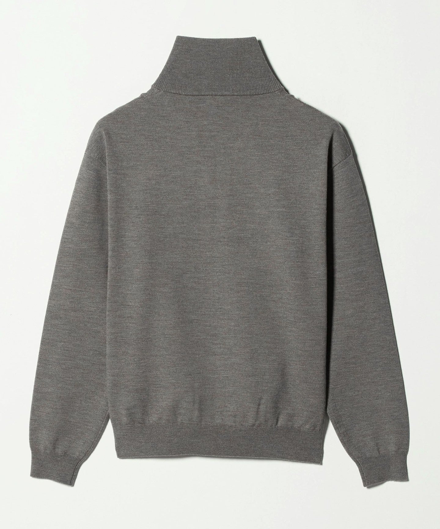 上質なウーステッドウールと安定感のあるポリエステル糸をプレーティング編みで仕立て、ファインゲージニットの繊細な表情と、しっかりとしたハリ感を両立。