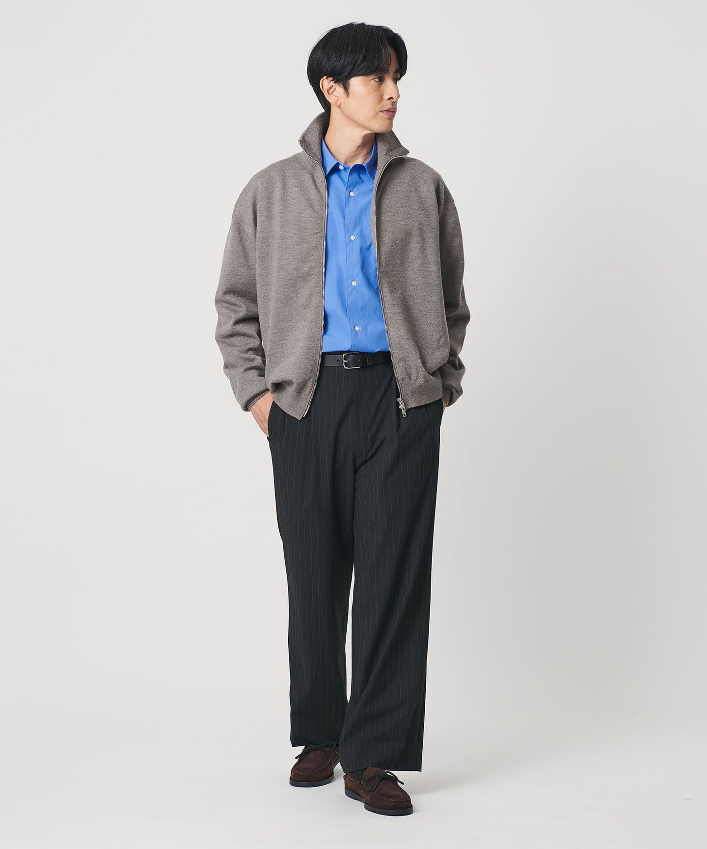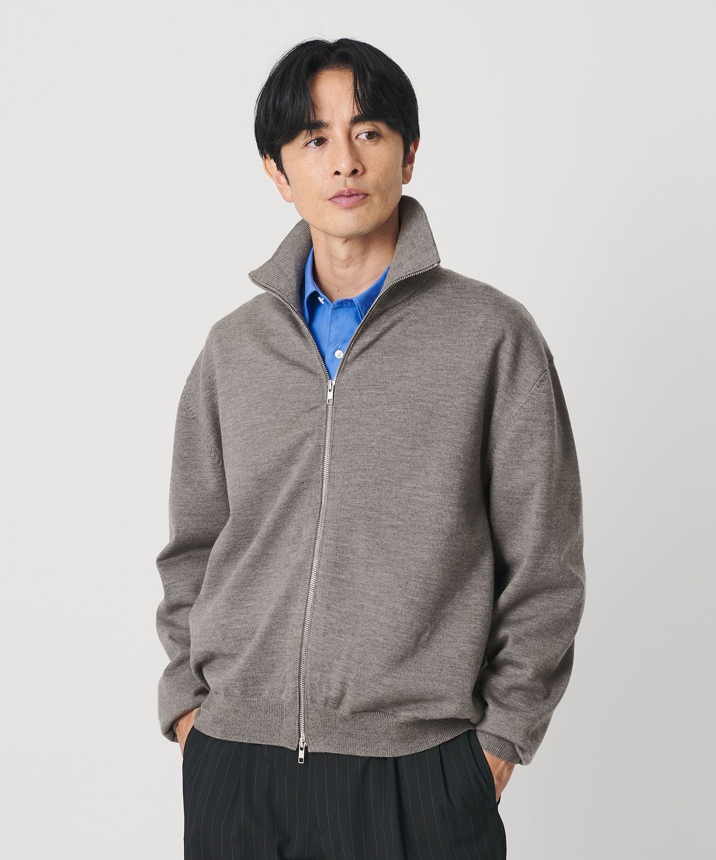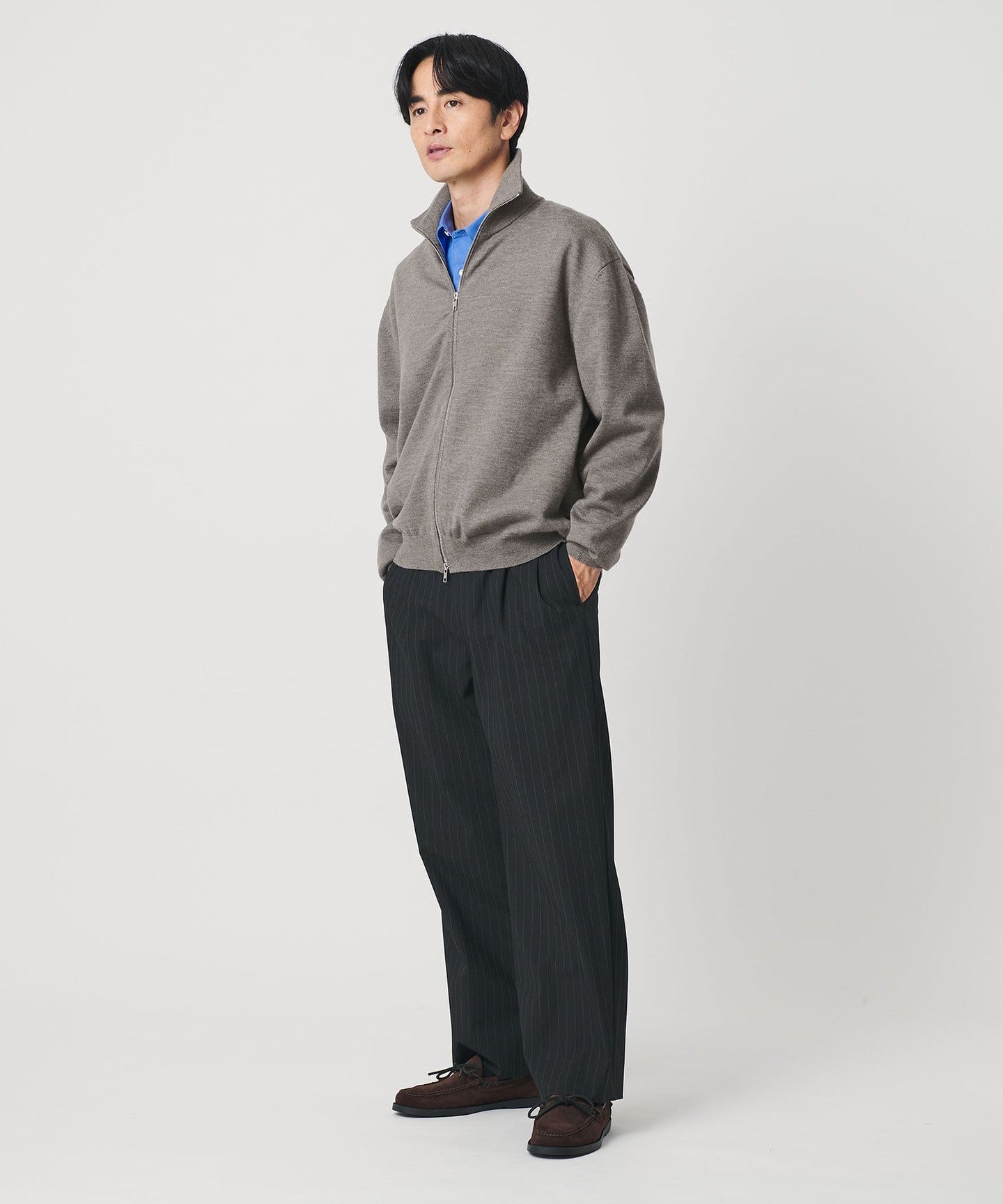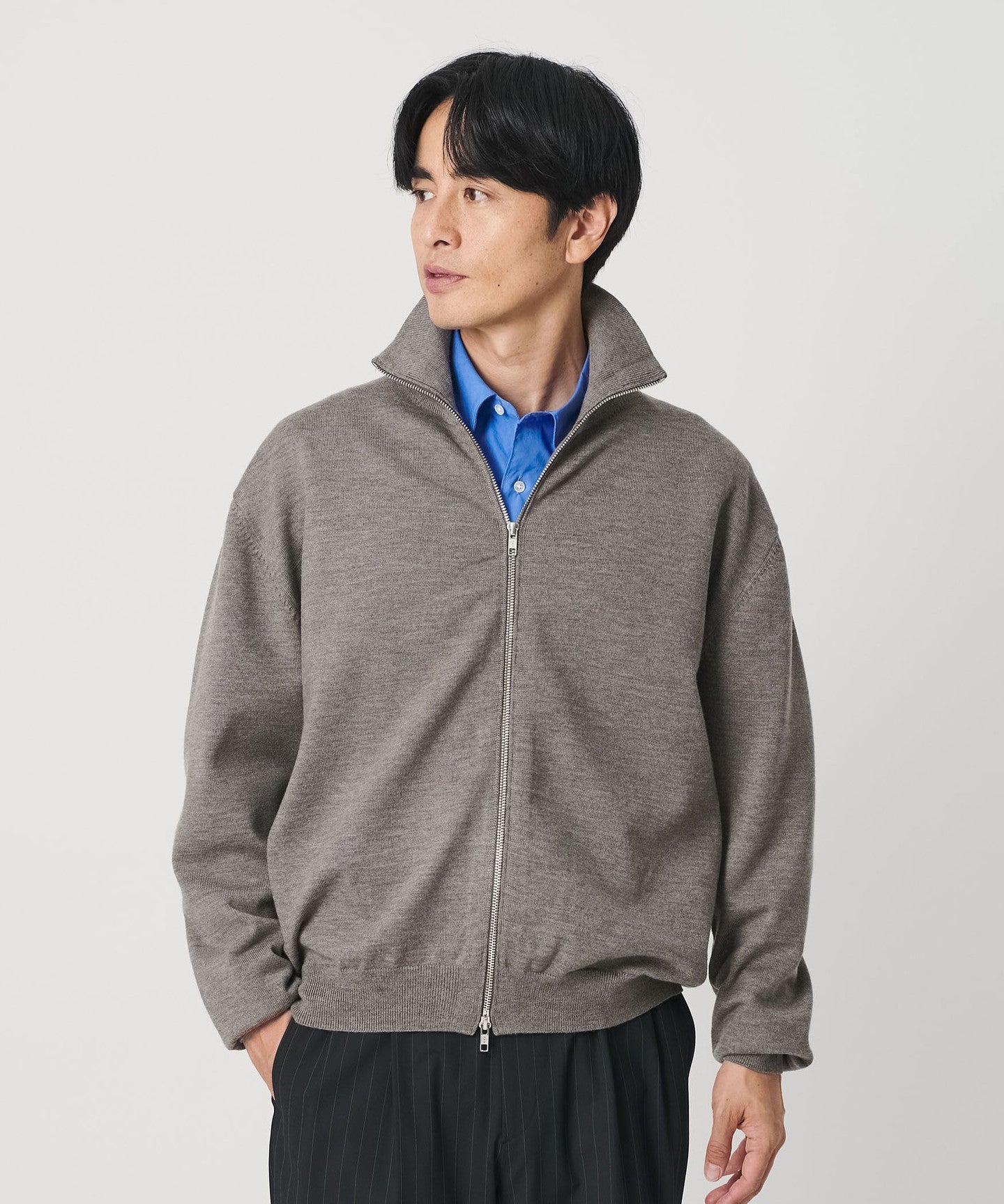 上質なウーステッドウールと安定感のあるポリエステル糸をプレーティング編みで仕立て、ファインゲージニットの繊細な表情と、しっかりとしたハリ感を両立。