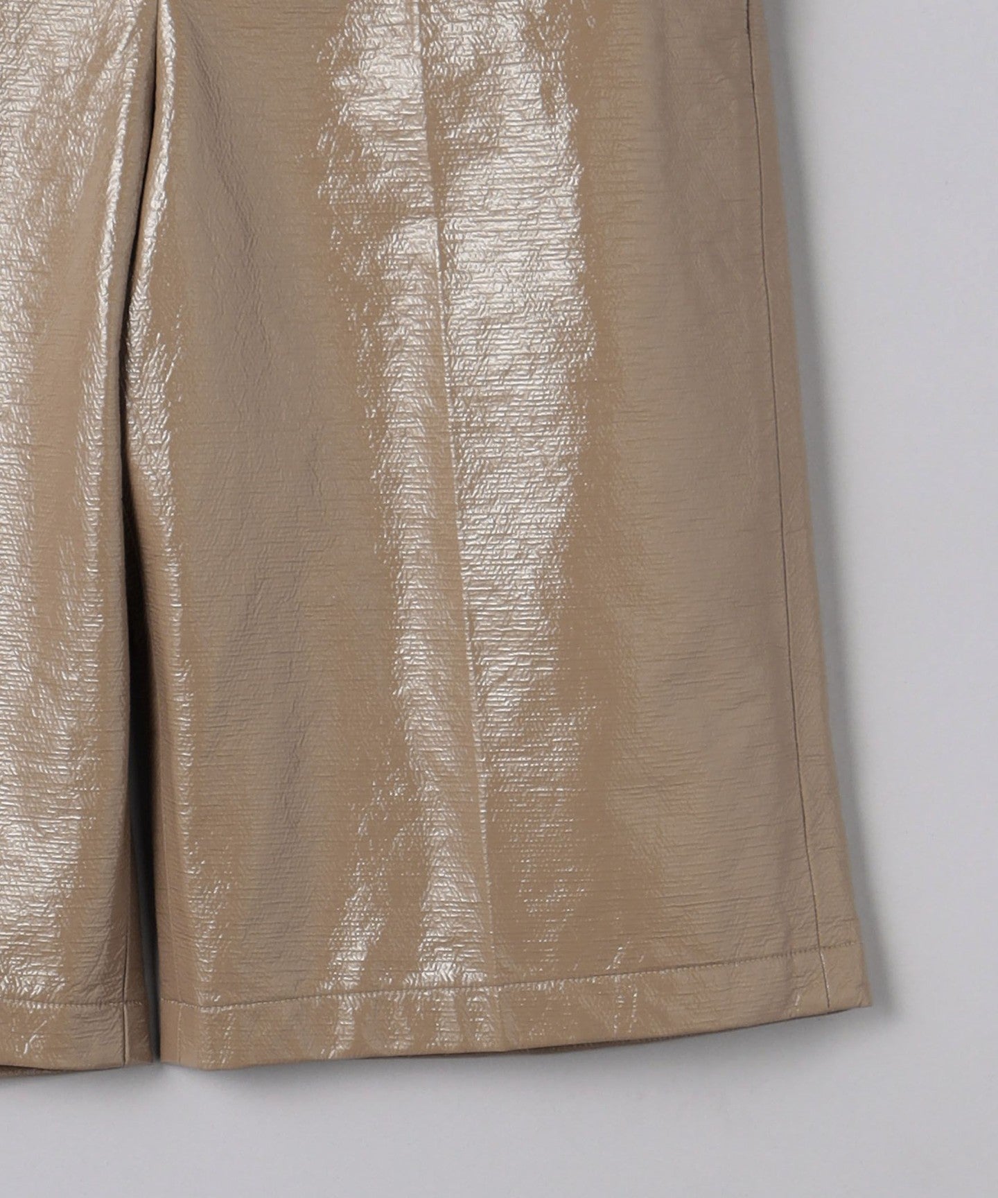 These shorts have a clean silhouette with no pleats and a length that covers the knees slightly.
