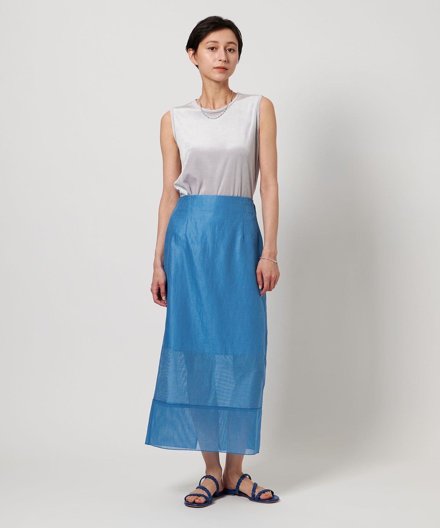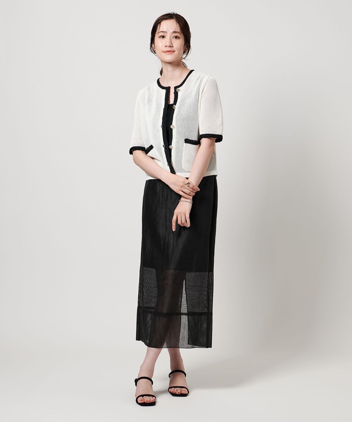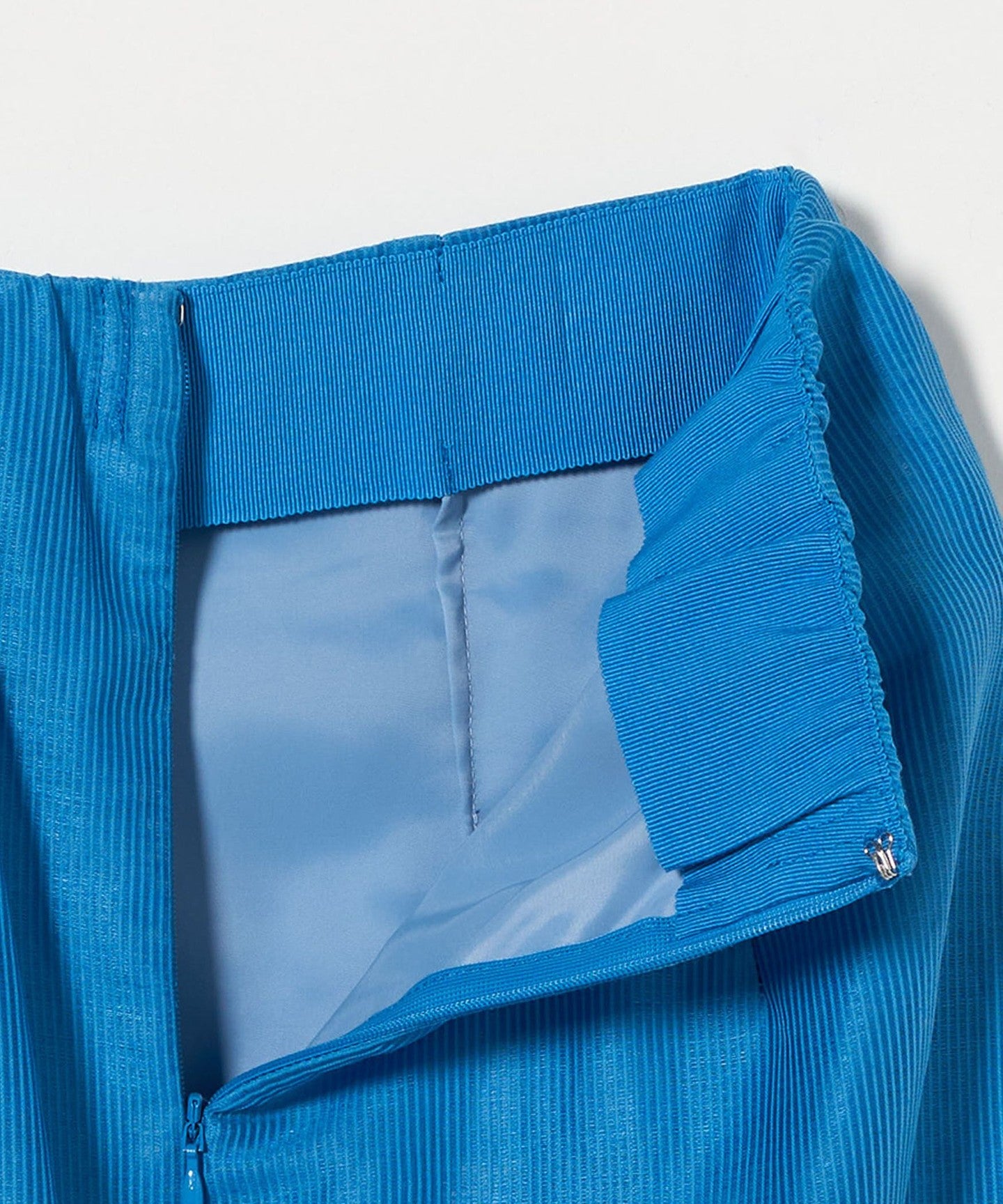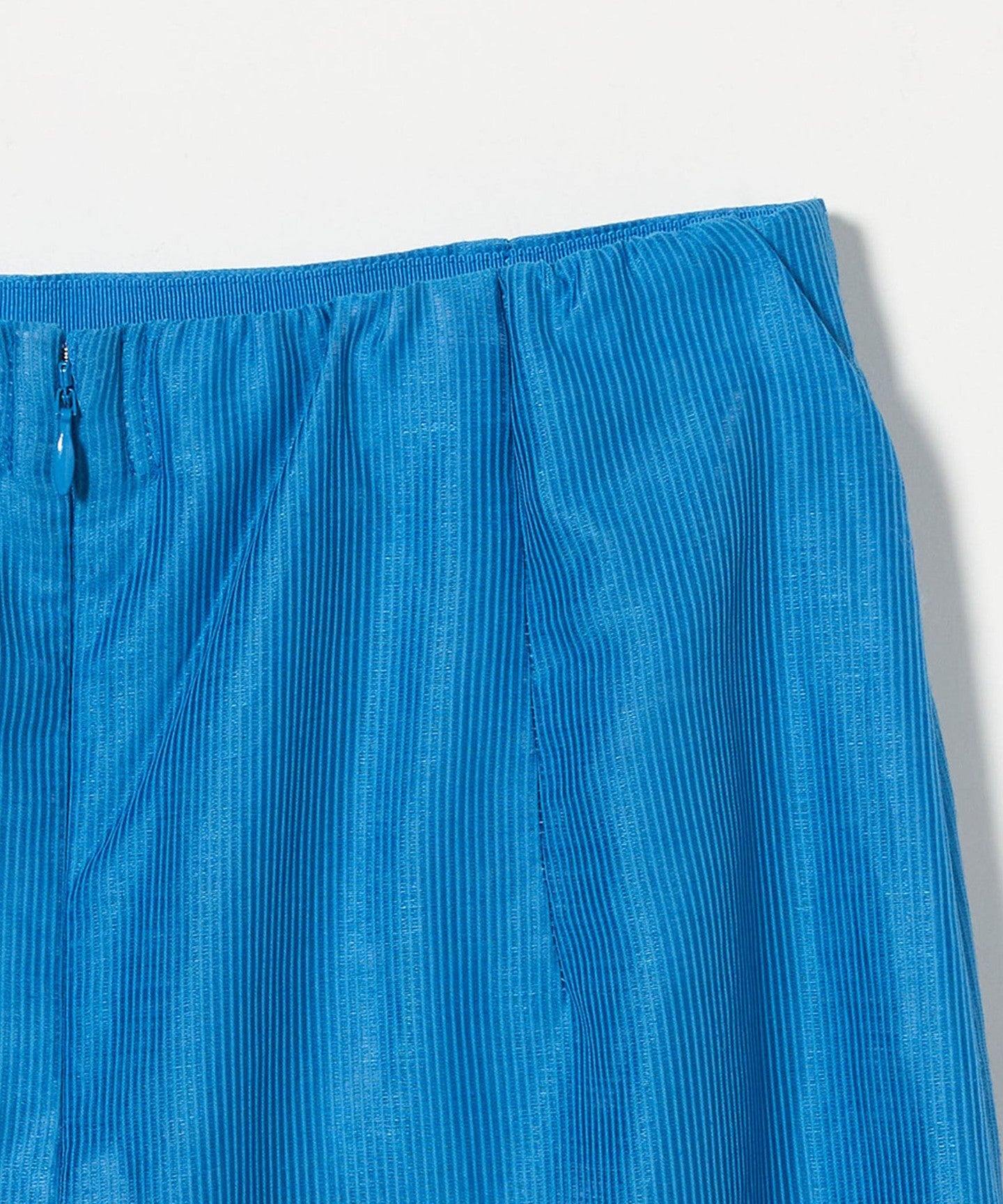 It can be worn as a set with a blouse made of the same material, or worn alone and easily combined with T-shirts and knitwear, allowing for a wide range of coordination options.