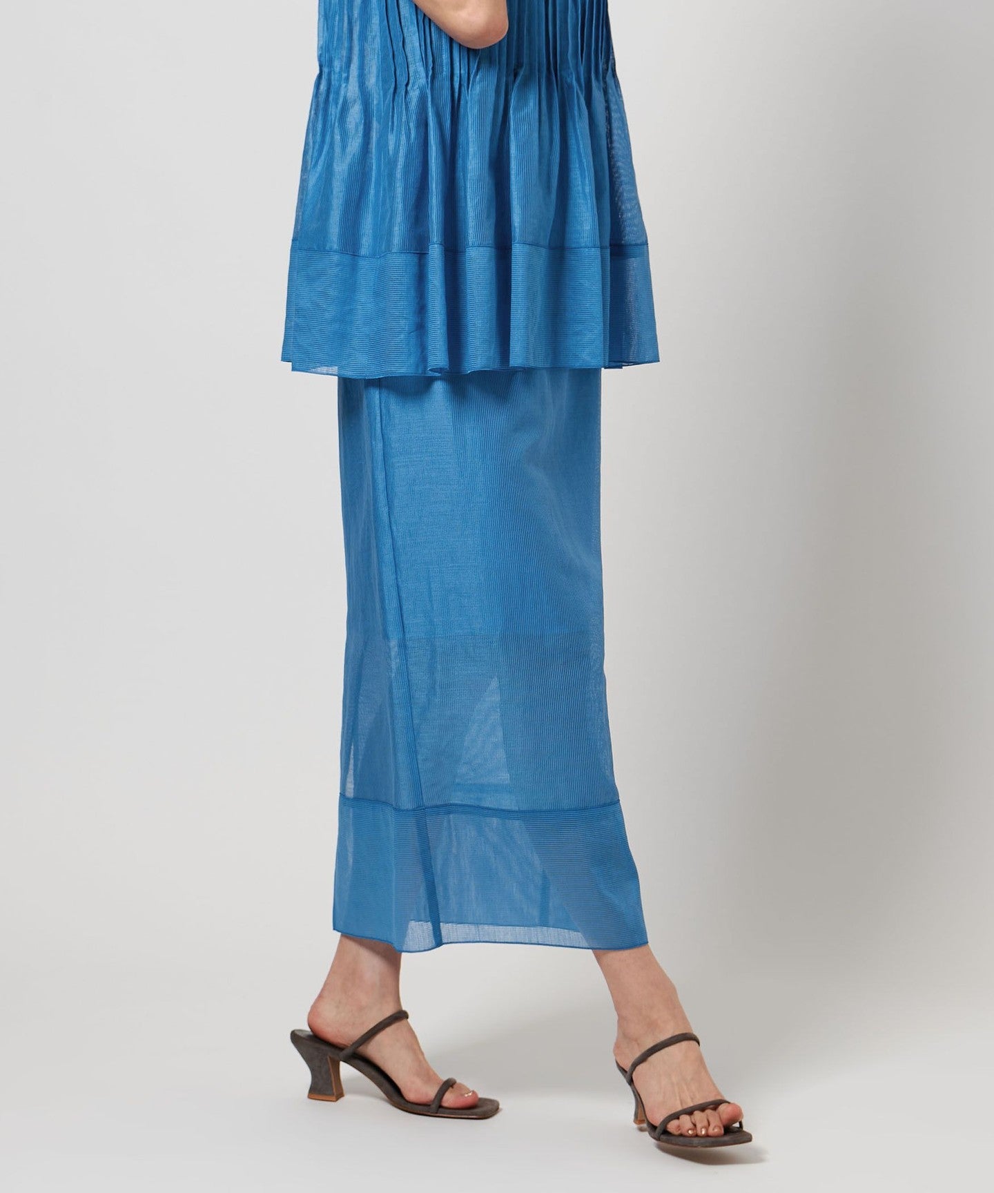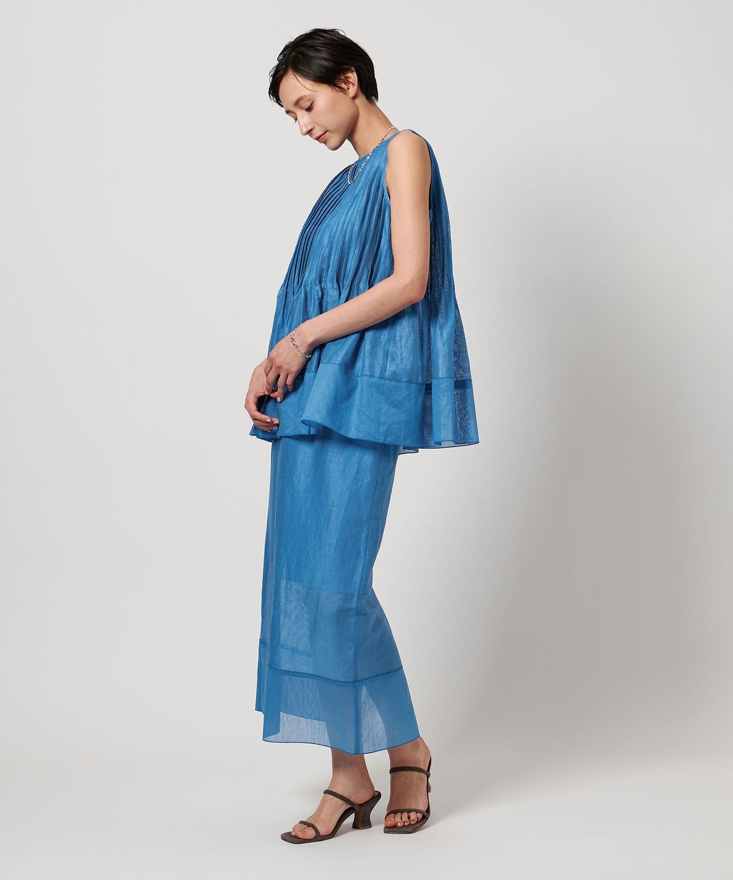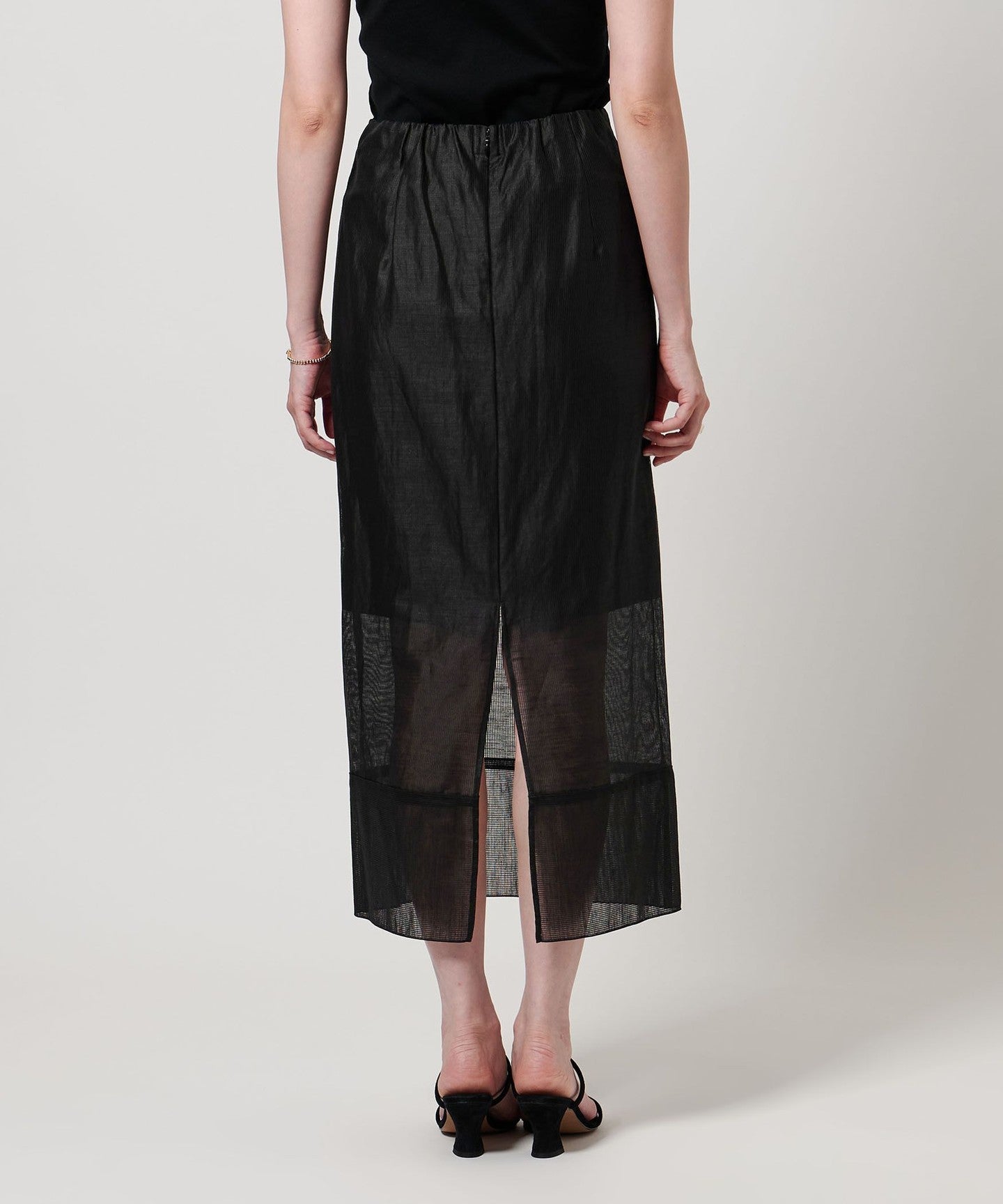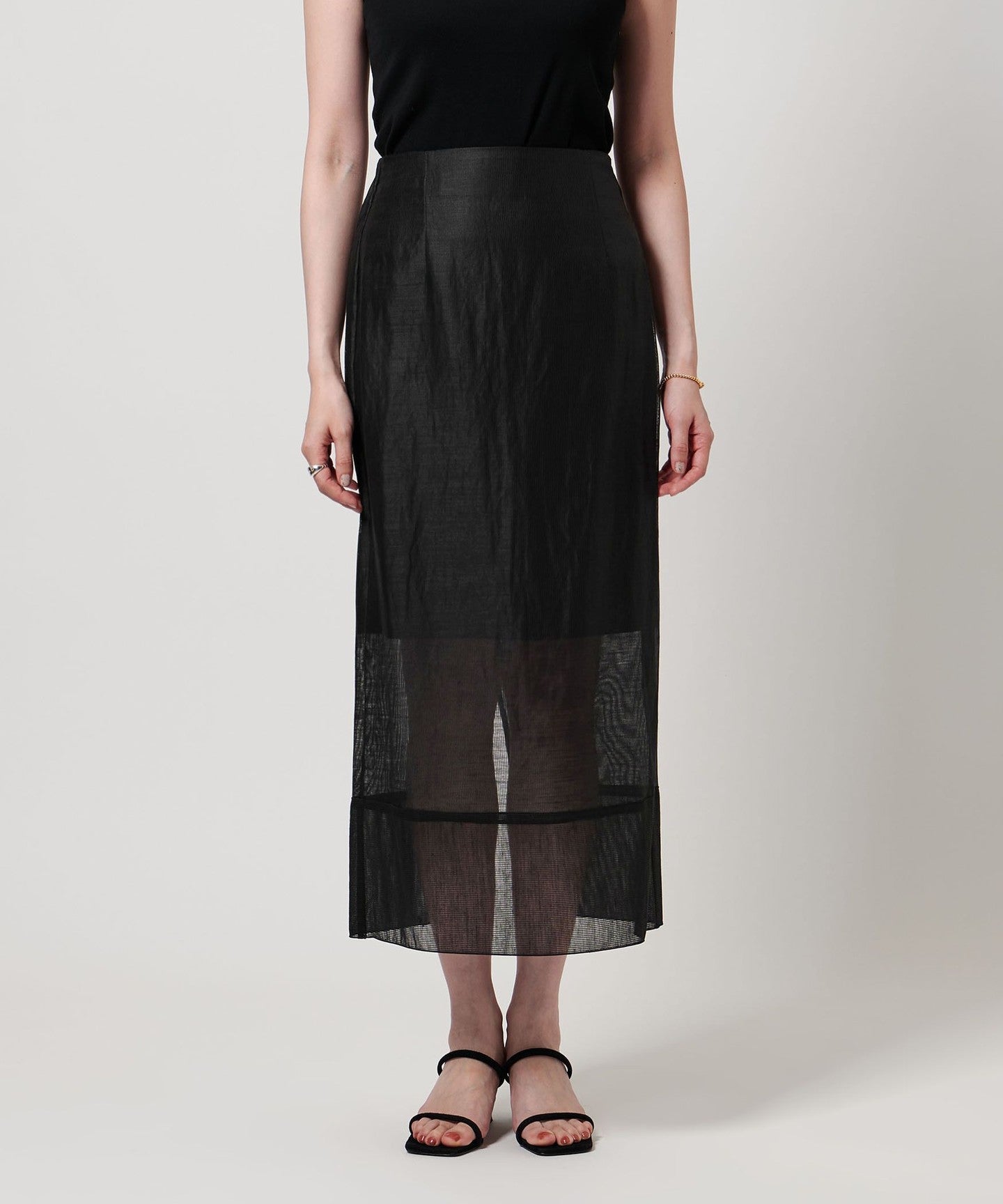 It can be worn as a set with a blouse made of the same material, or worn alone and easily combined with T-shirts and knitwear, allowing for a wide range of coordination options.