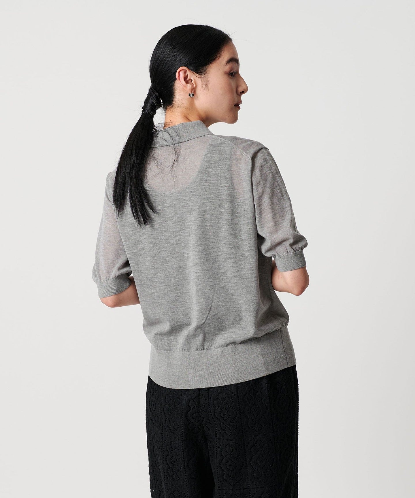 This piece has the authentic feel of a polo knit, but is also on trend thanks to its sheer material, making it a versatile piece that will last until autumn.