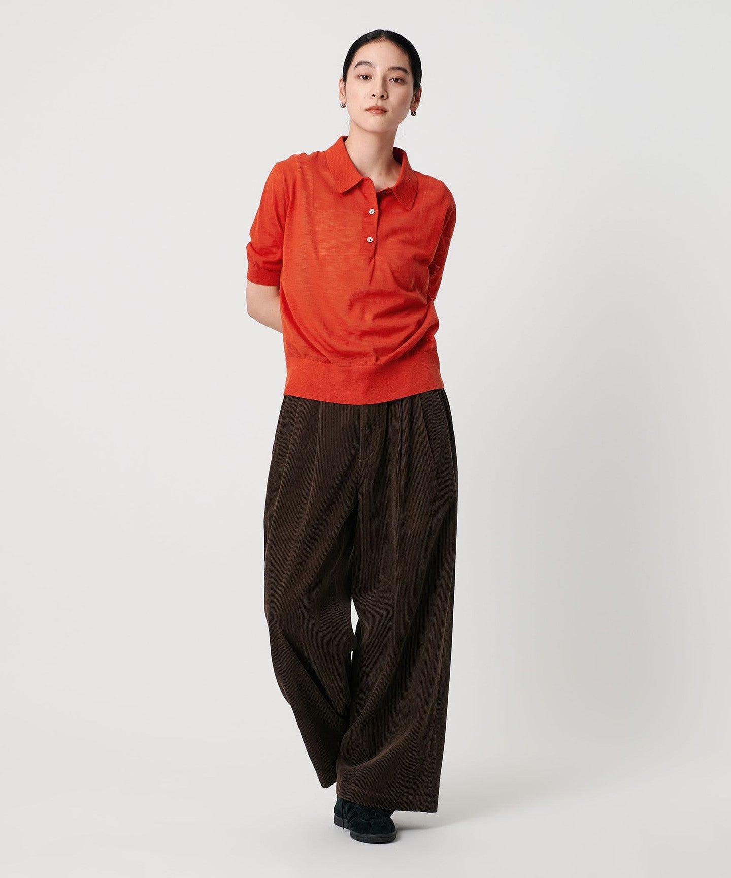 This elegant collared knitwear features slightly longer ribbing that makes it a focal point.